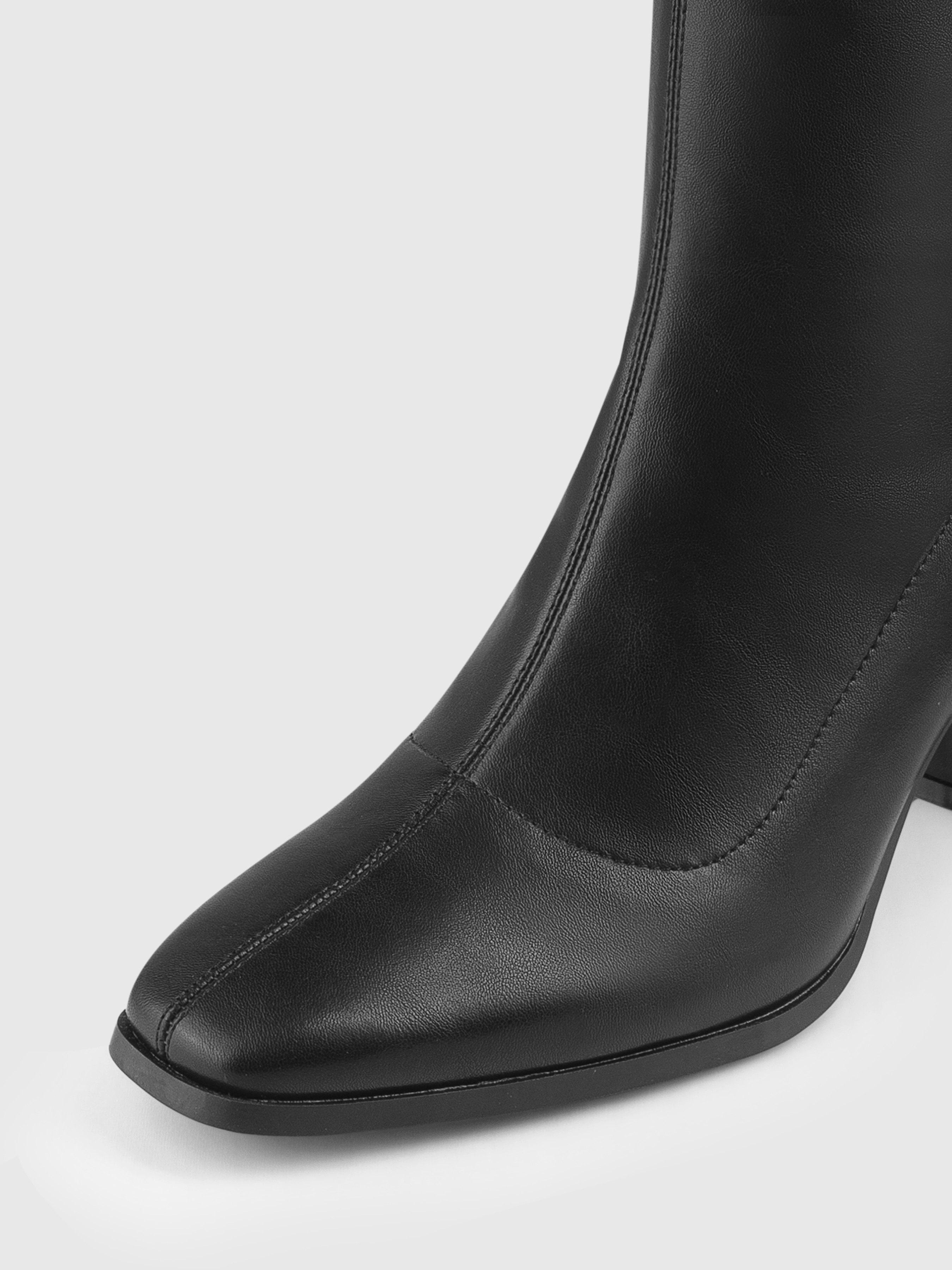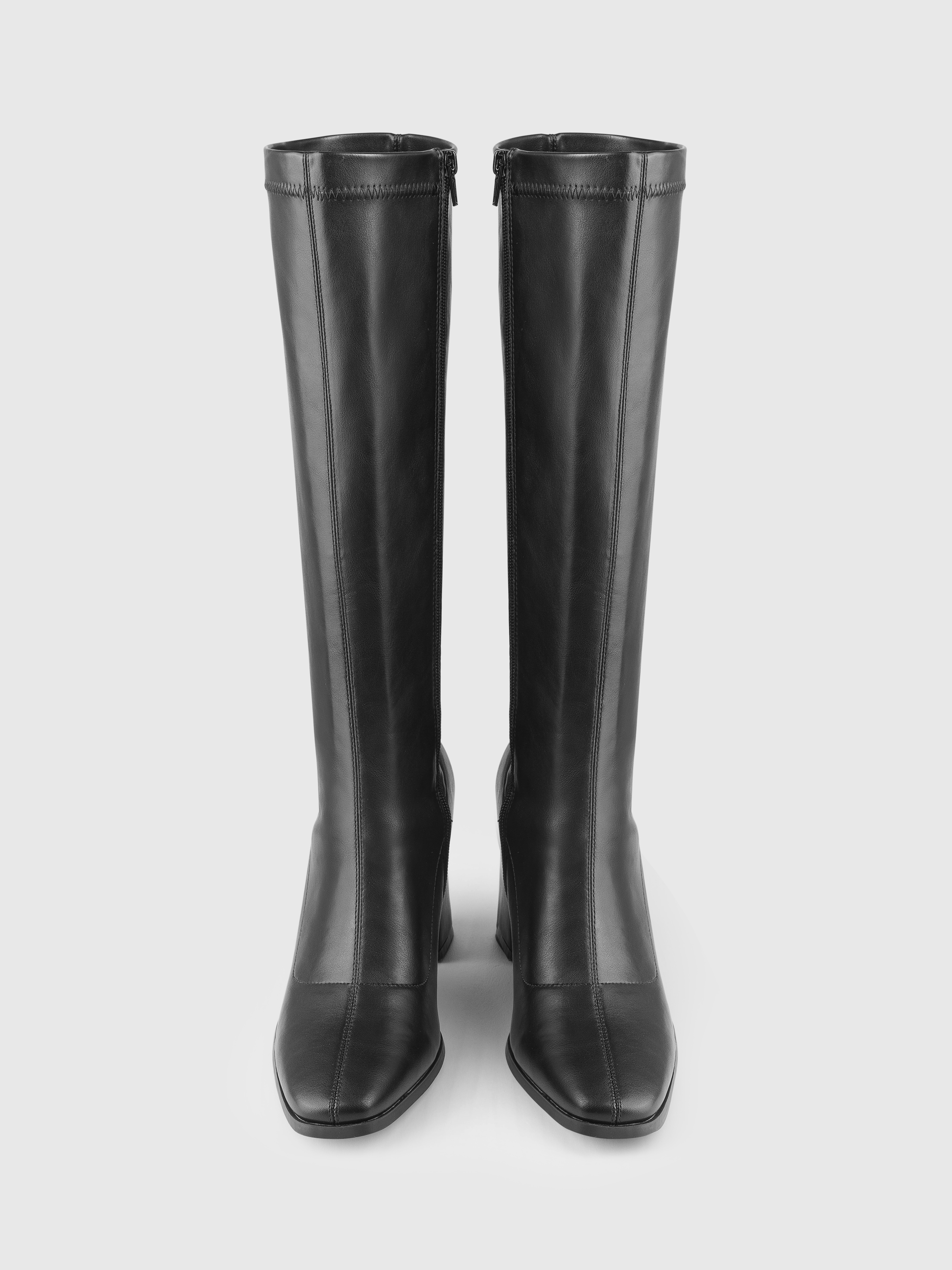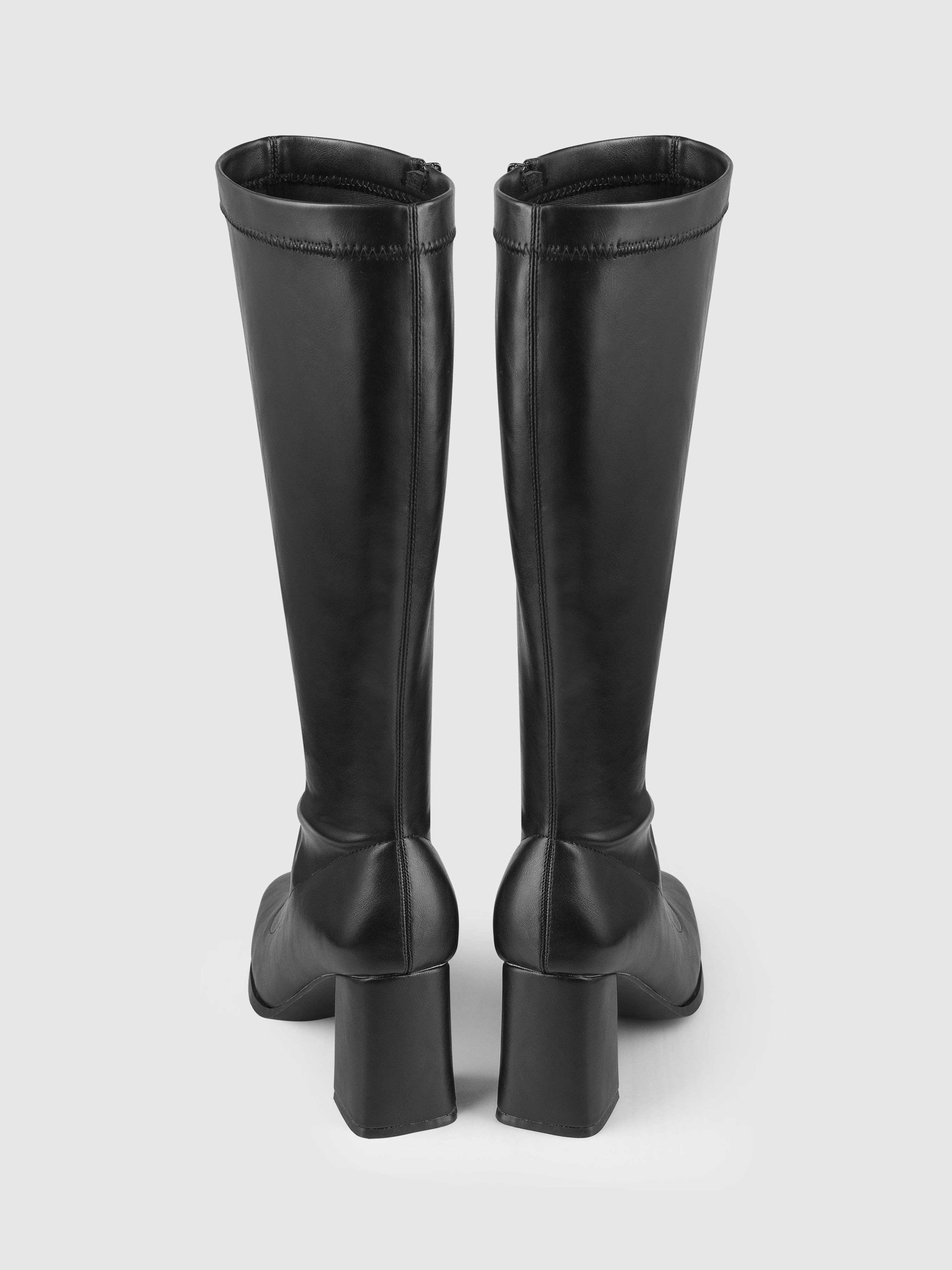 Klassische, massiv geschnittenen Stiefel aus Kunstleder bis zur Kniehöhe mit hohen Absätzen
