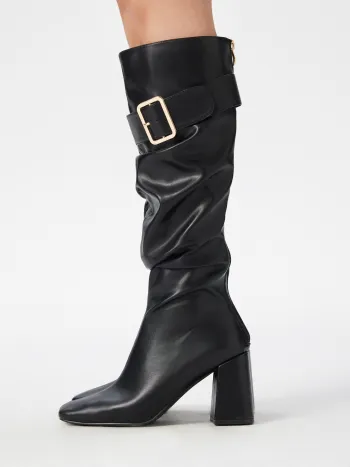 Klassische, massiv geschnittenen Hochhackenscheiben aus Faux-Leder, Knielange Stiefel