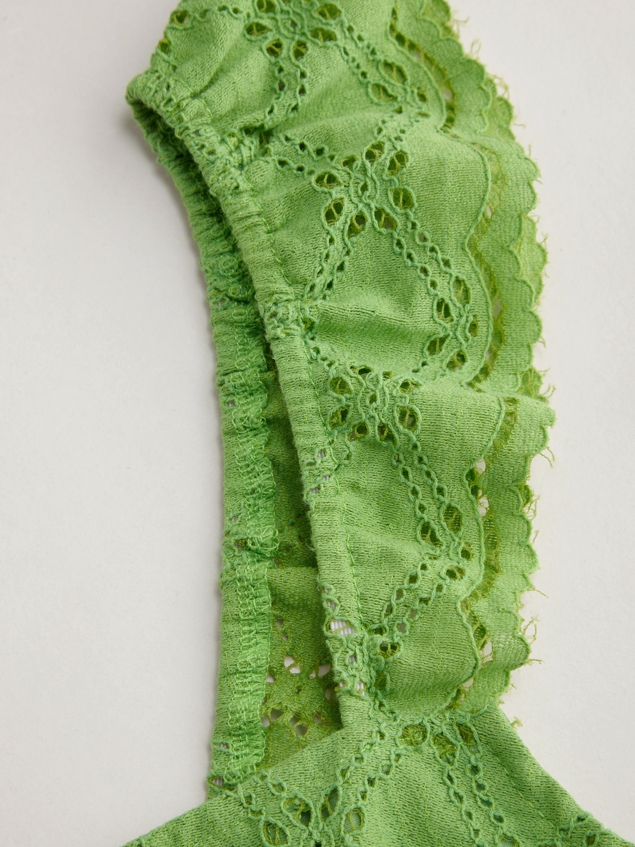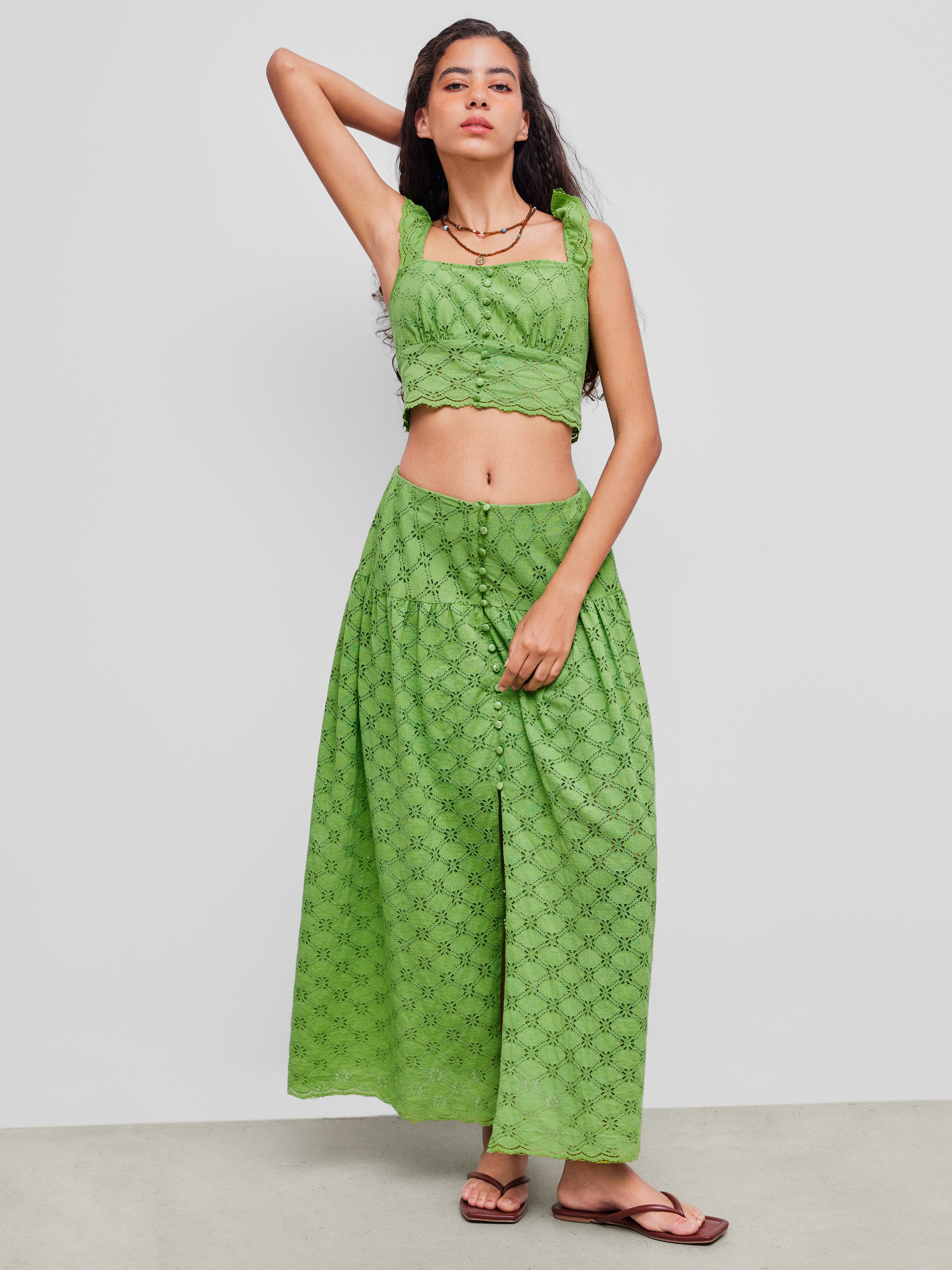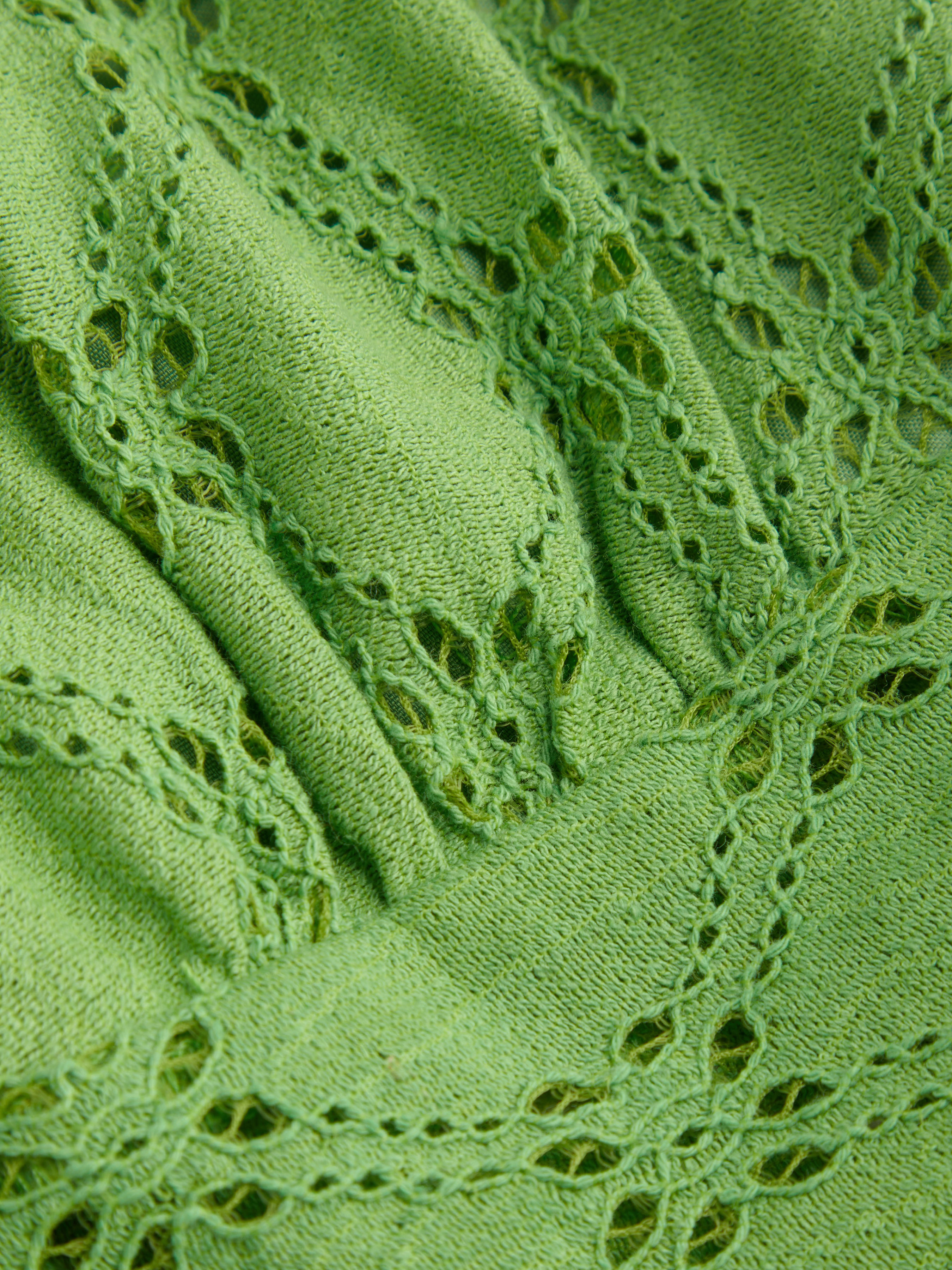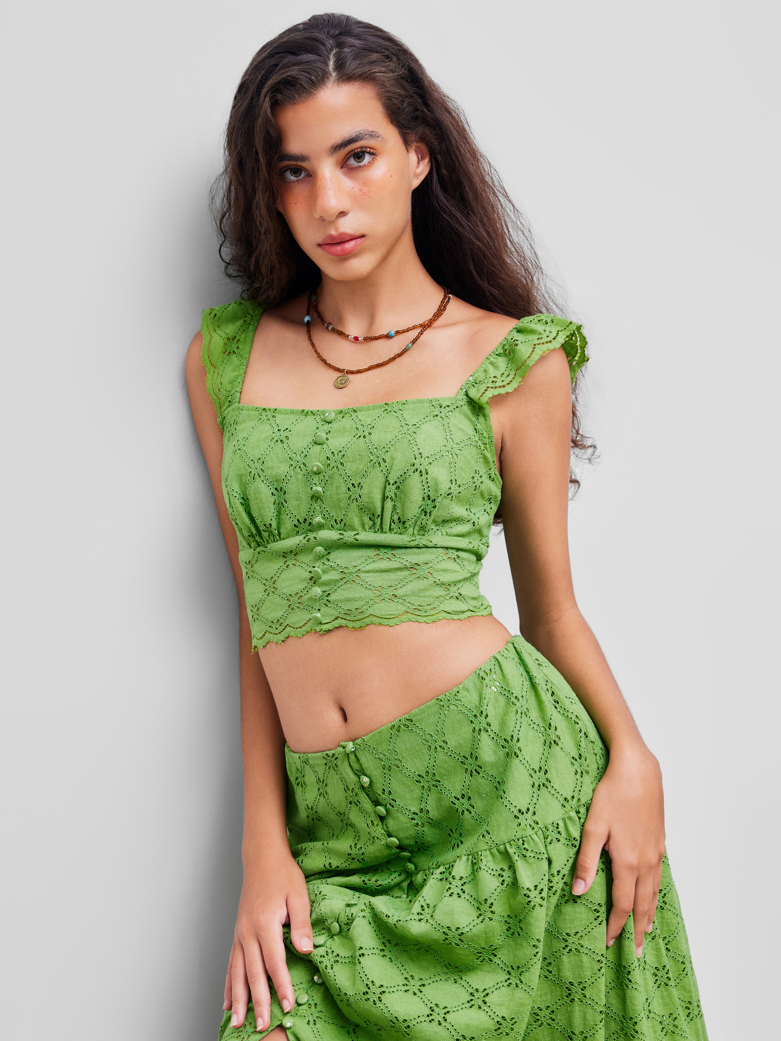 Broderie-Anglaise-Baumwollmischung Quadratischer Ausschnitt Einfarbiges Crop Tank Top