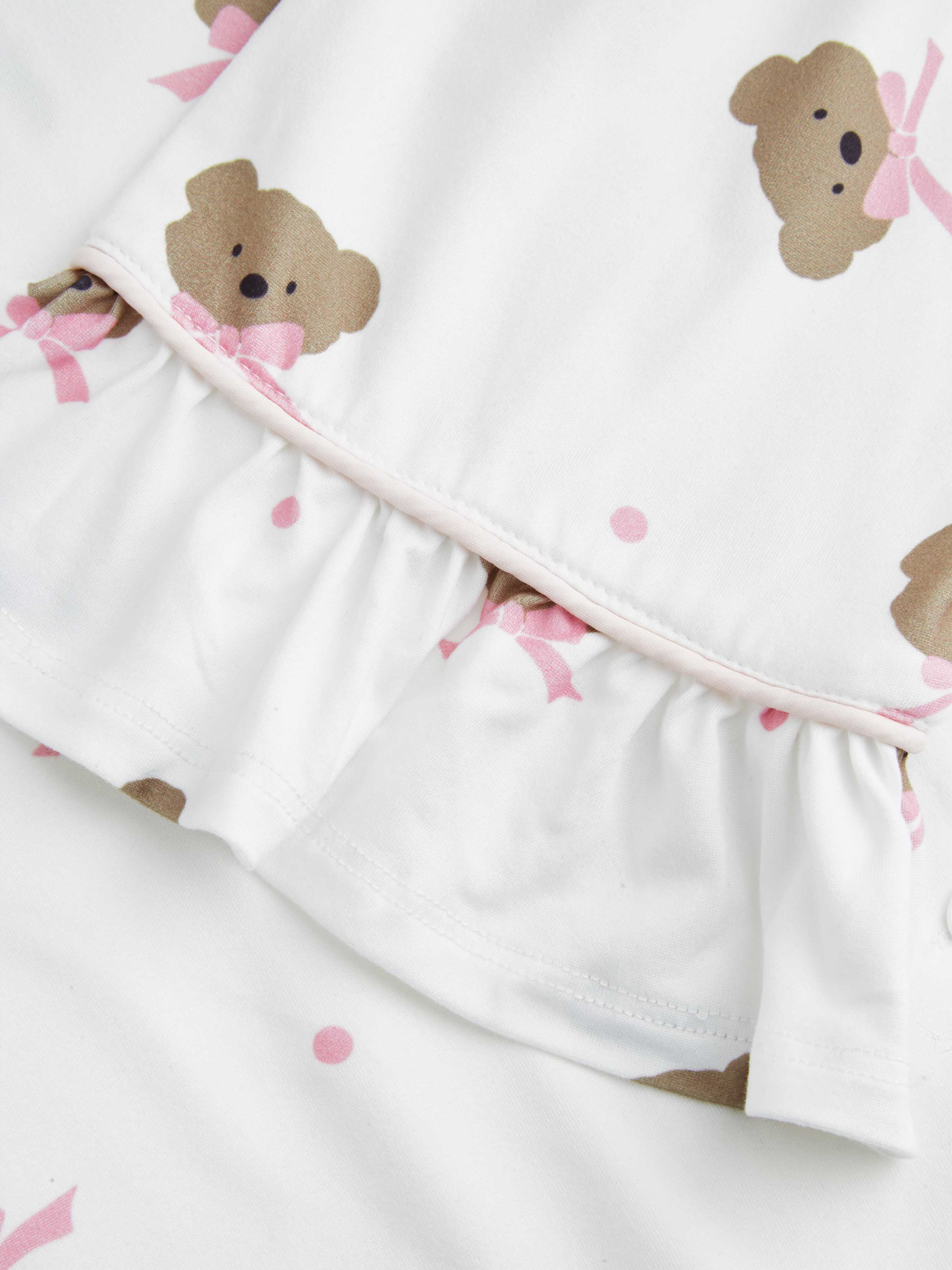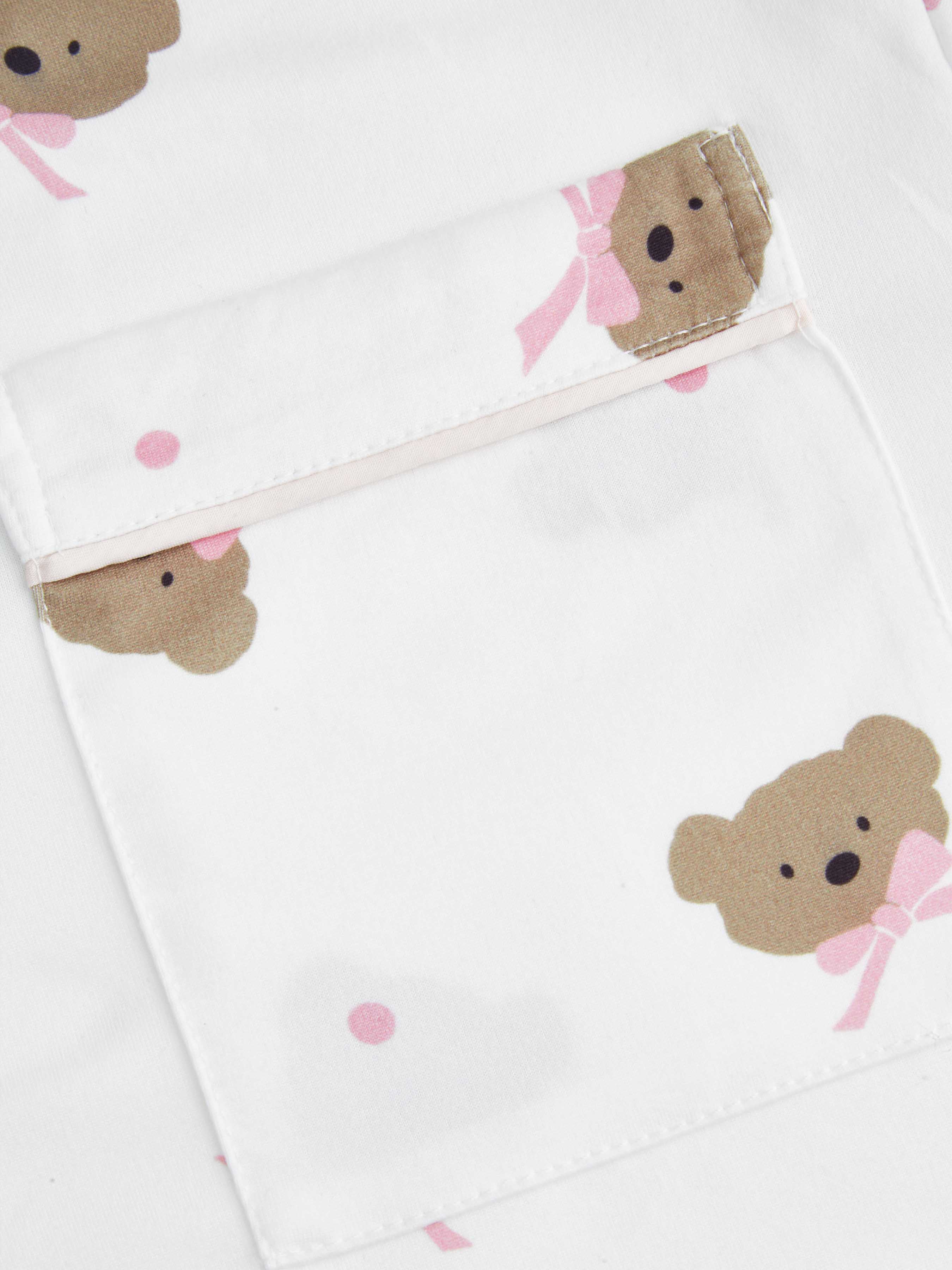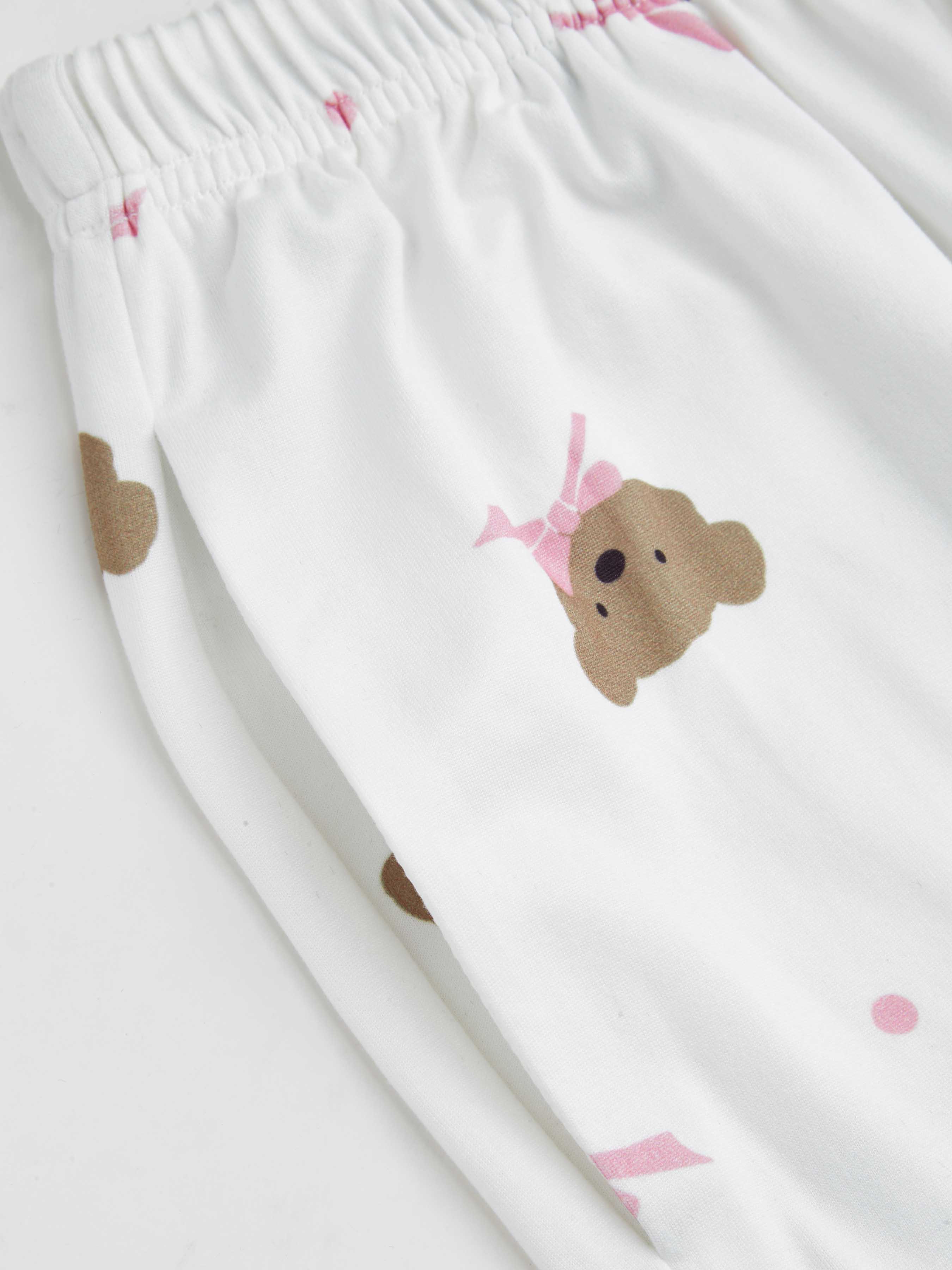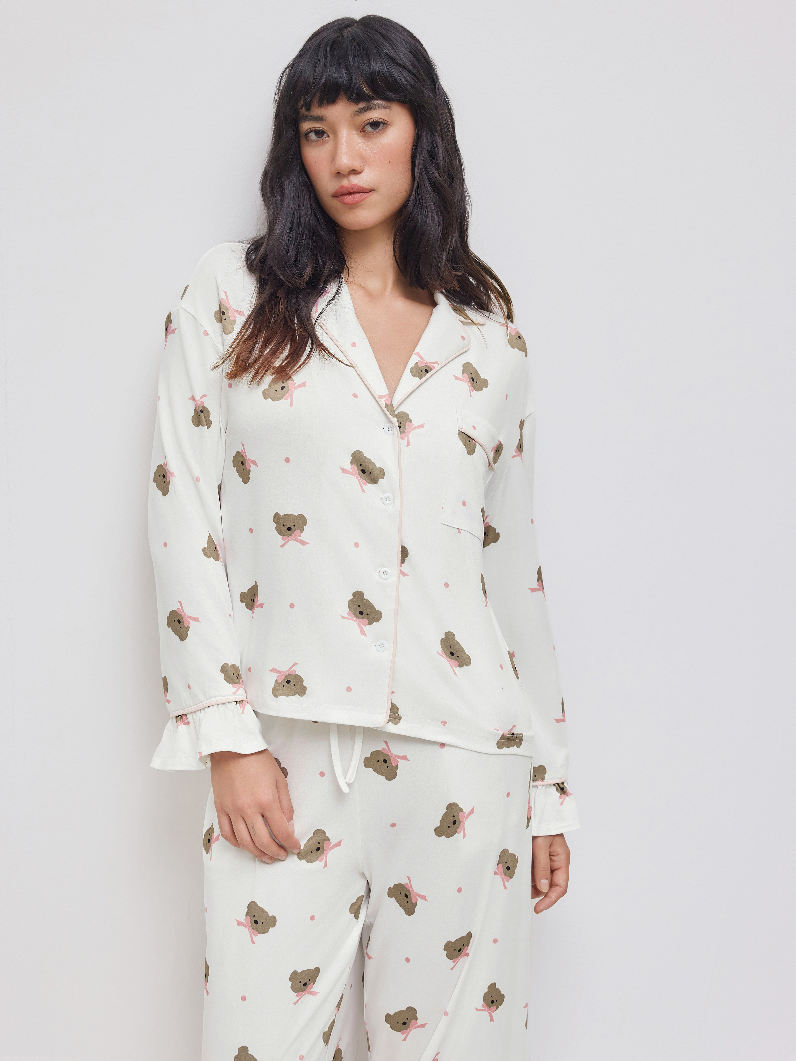 Loungewear-Set mit Kragenbogen-Bären-Grafik-Oberteil und Mittelbundhosen