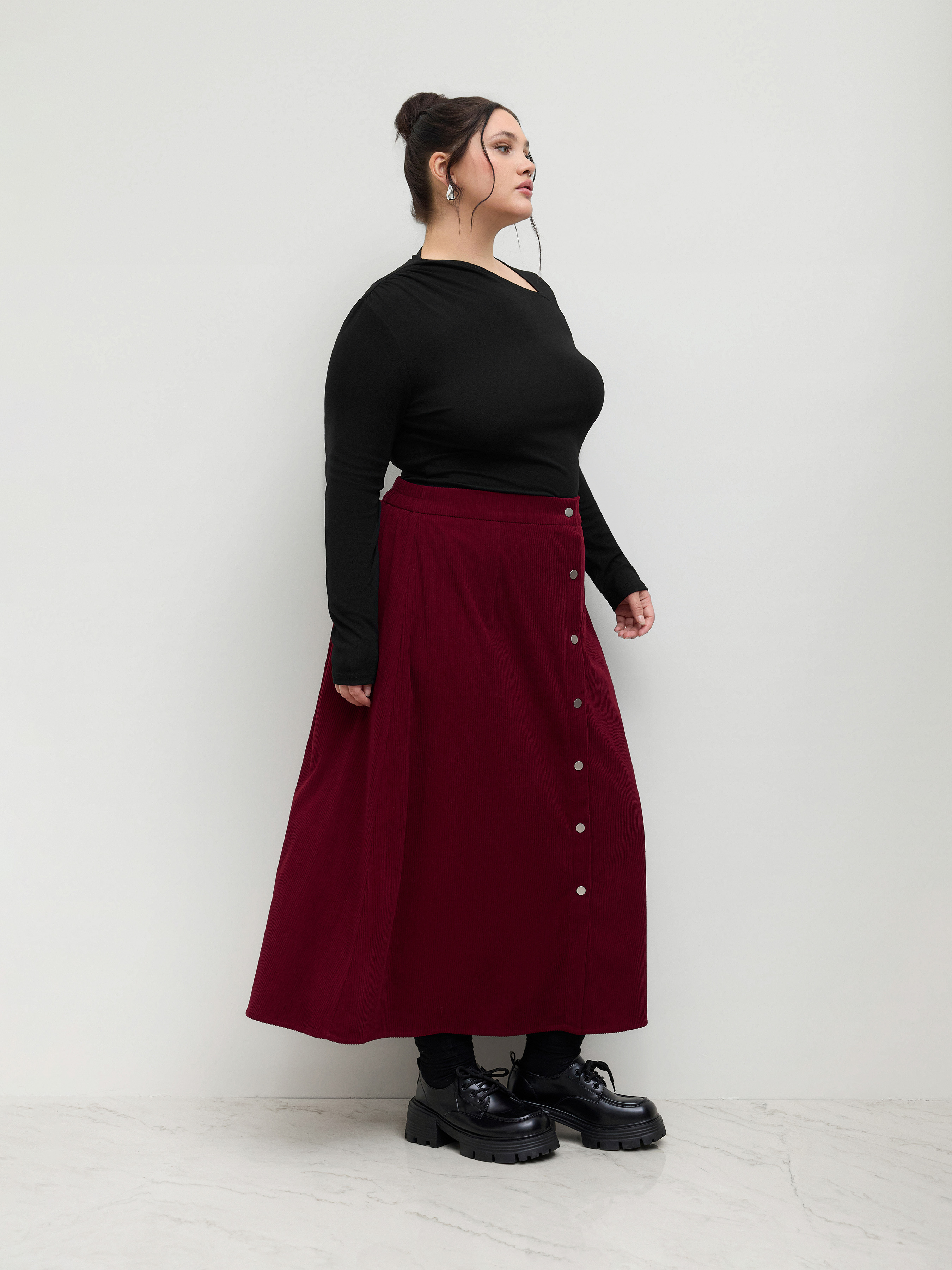 Cord Mid Rise Knopf Maxirock Kurve & Plus