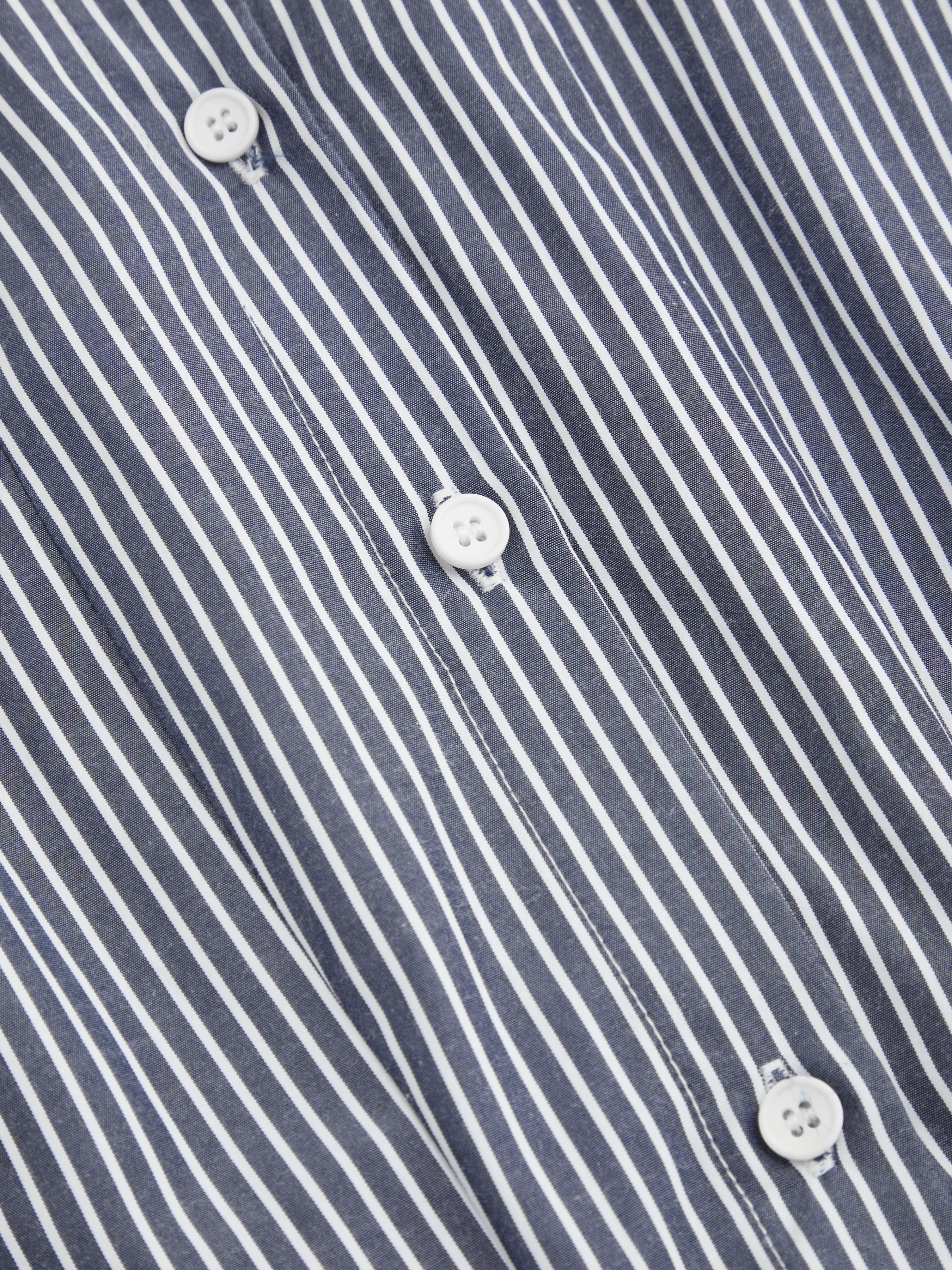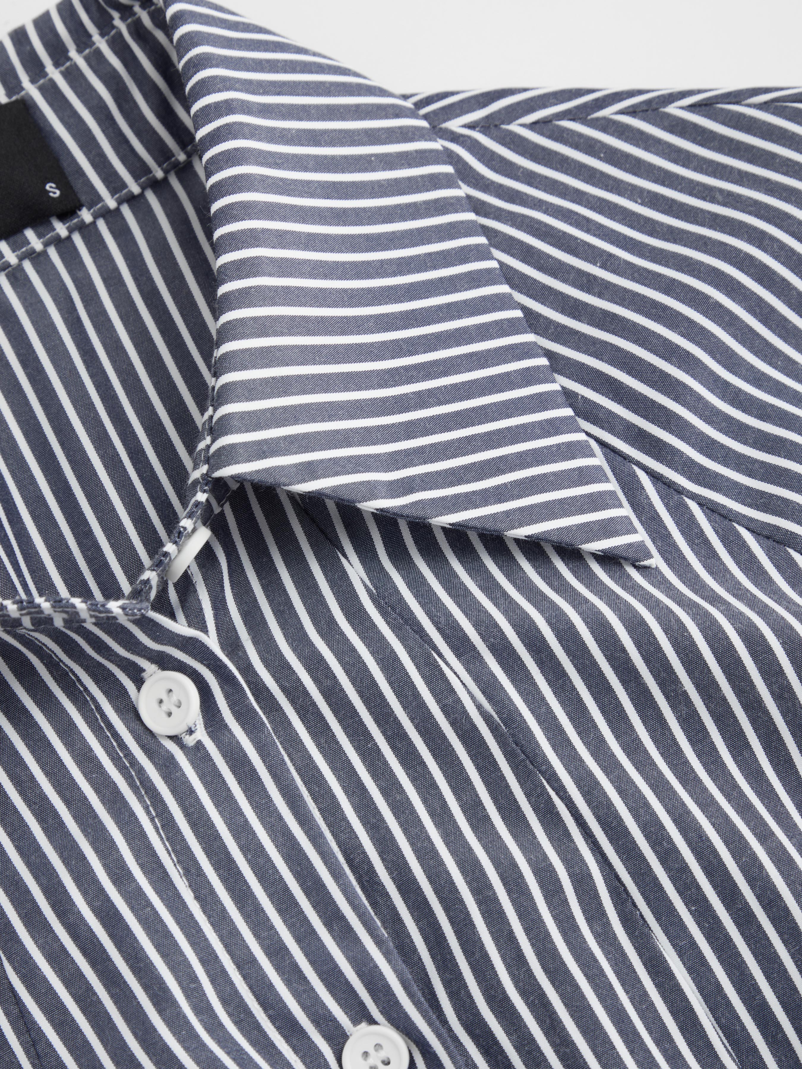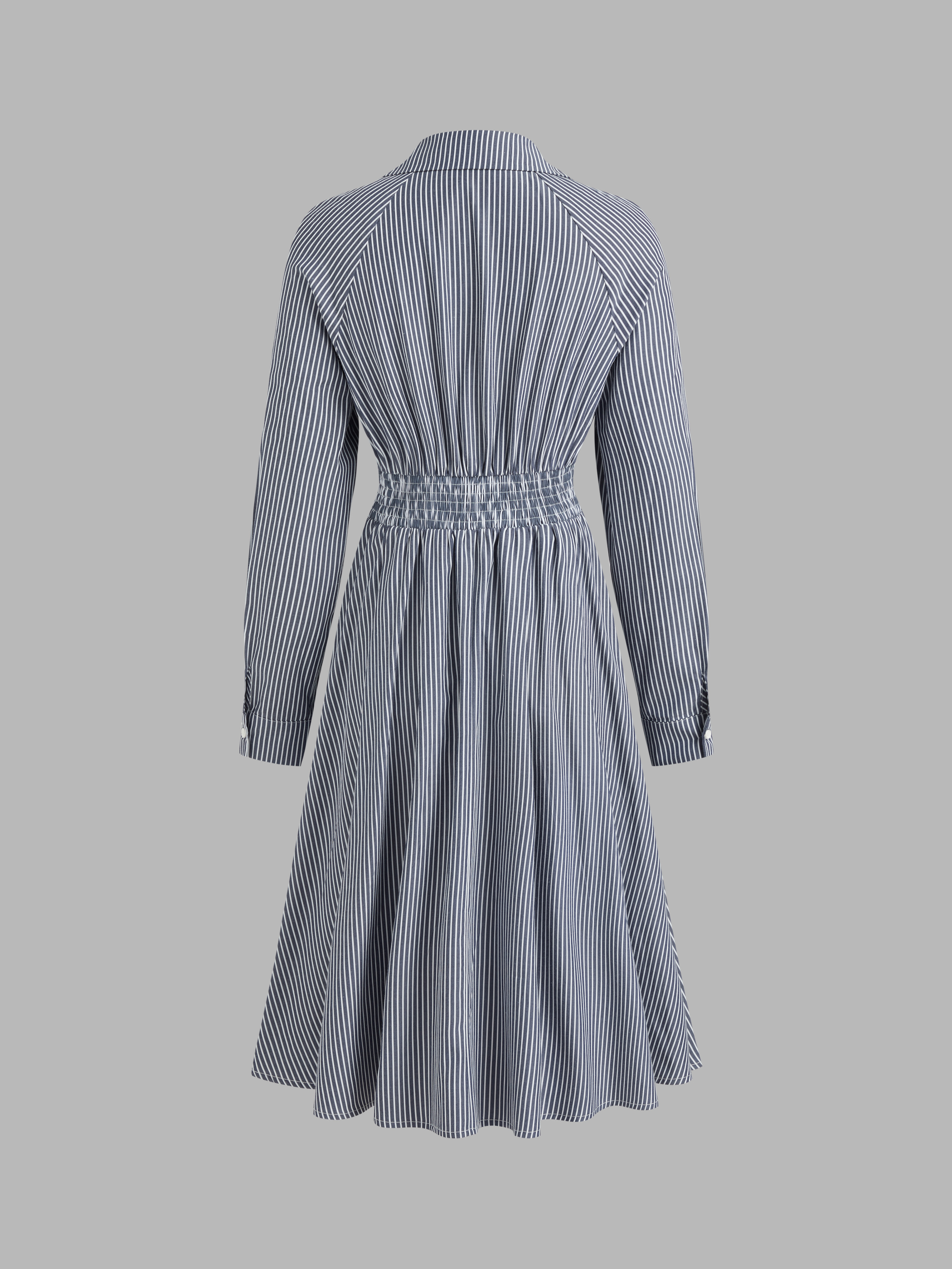 Baumwollmix Kragen Gestreiftes Shirred Raglanärmel Midikleid