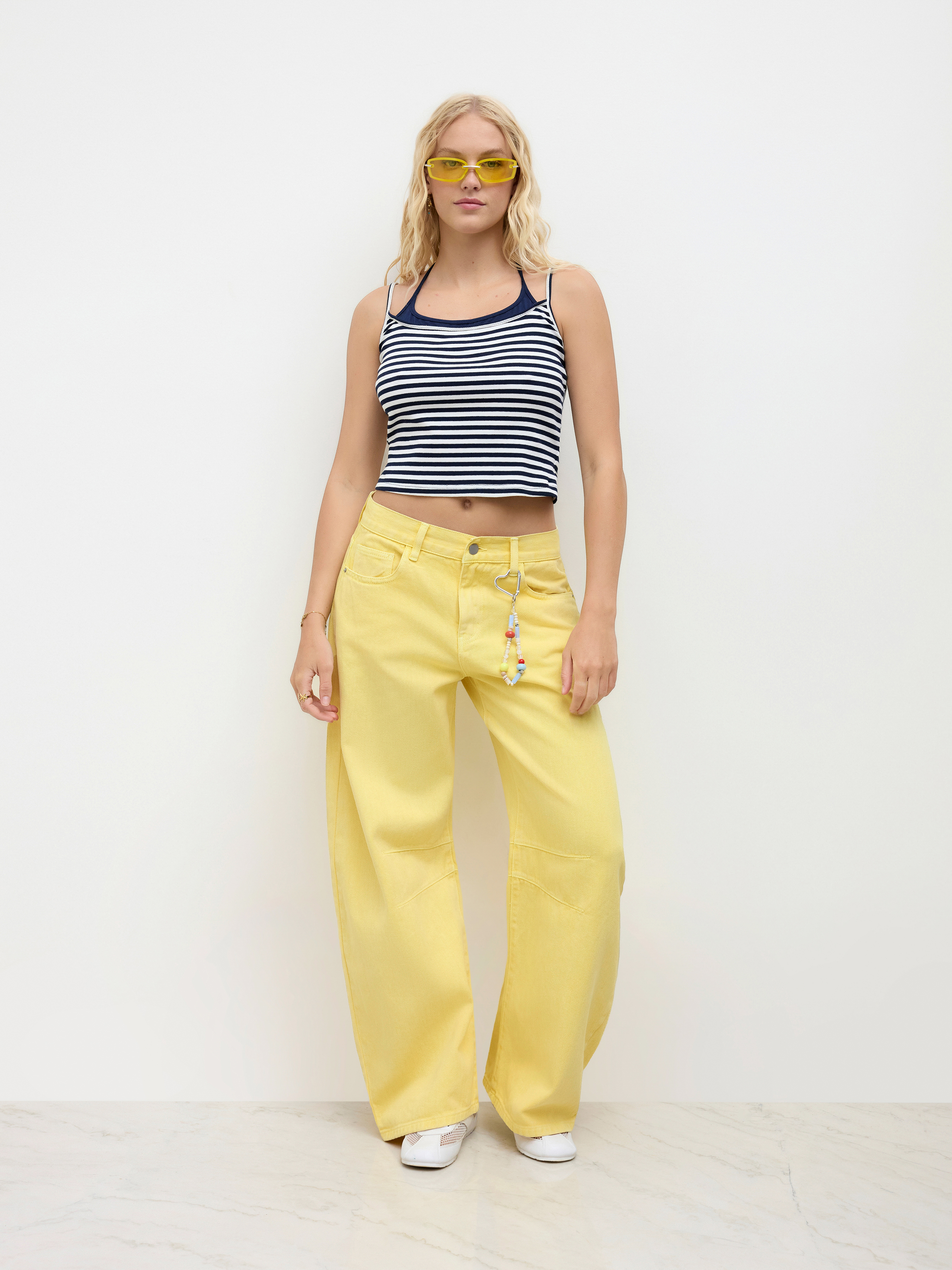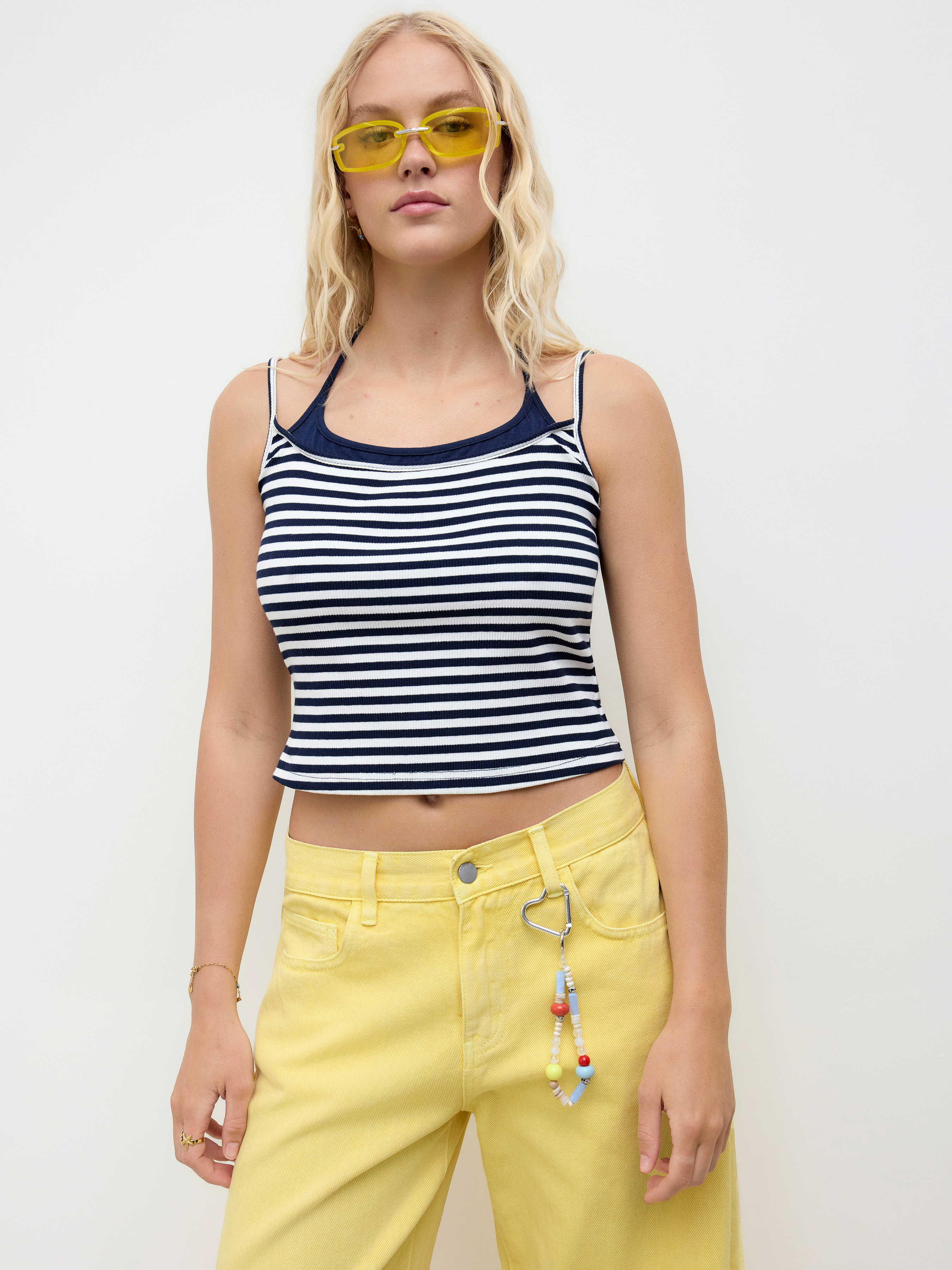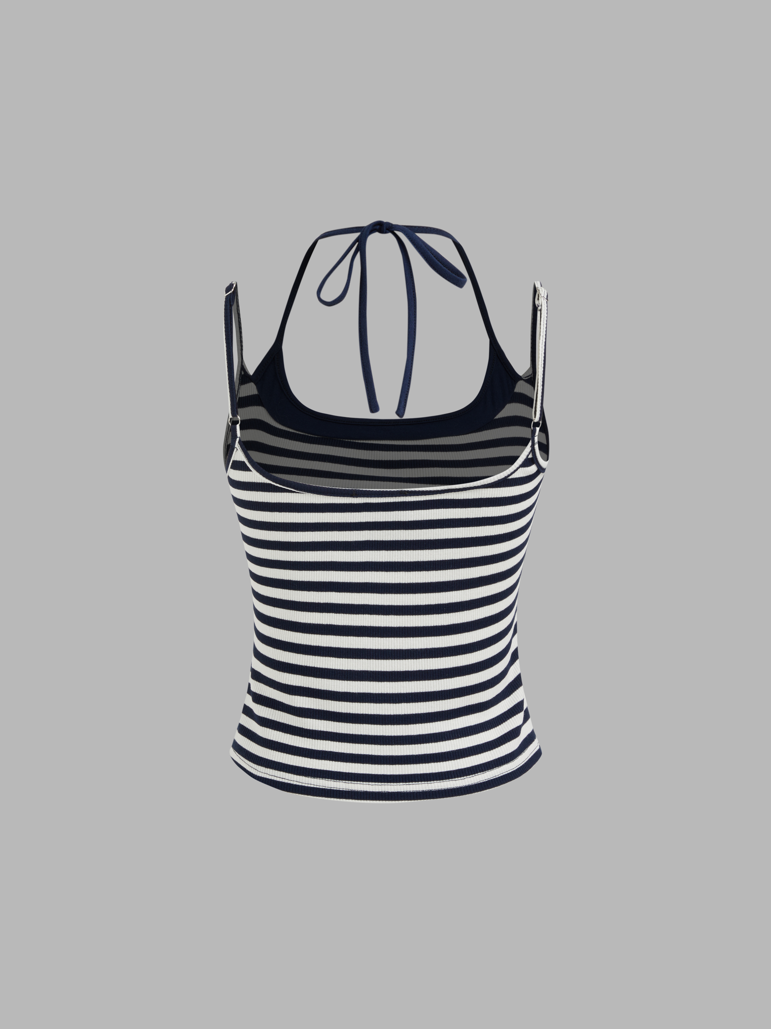 Baumwollmischung Zweifarbiges Halterhals-Streifen-Cami-Top