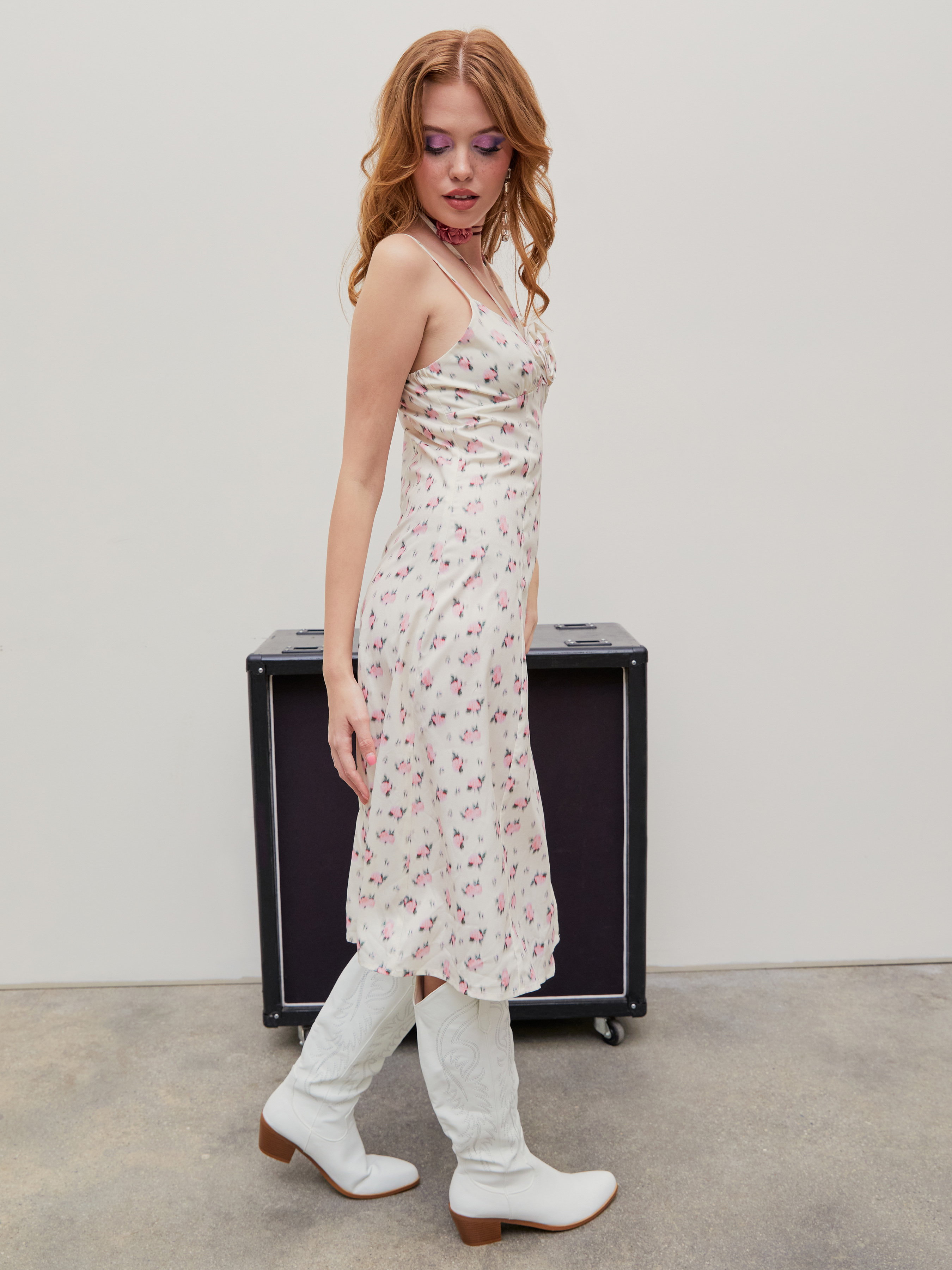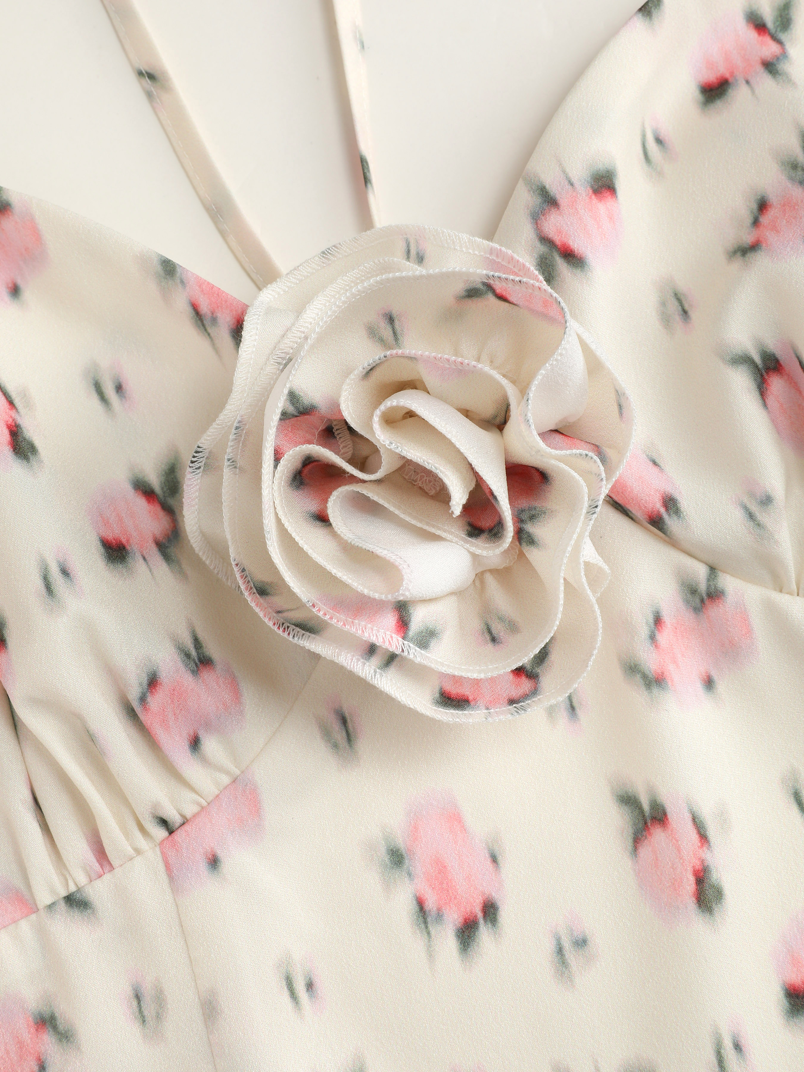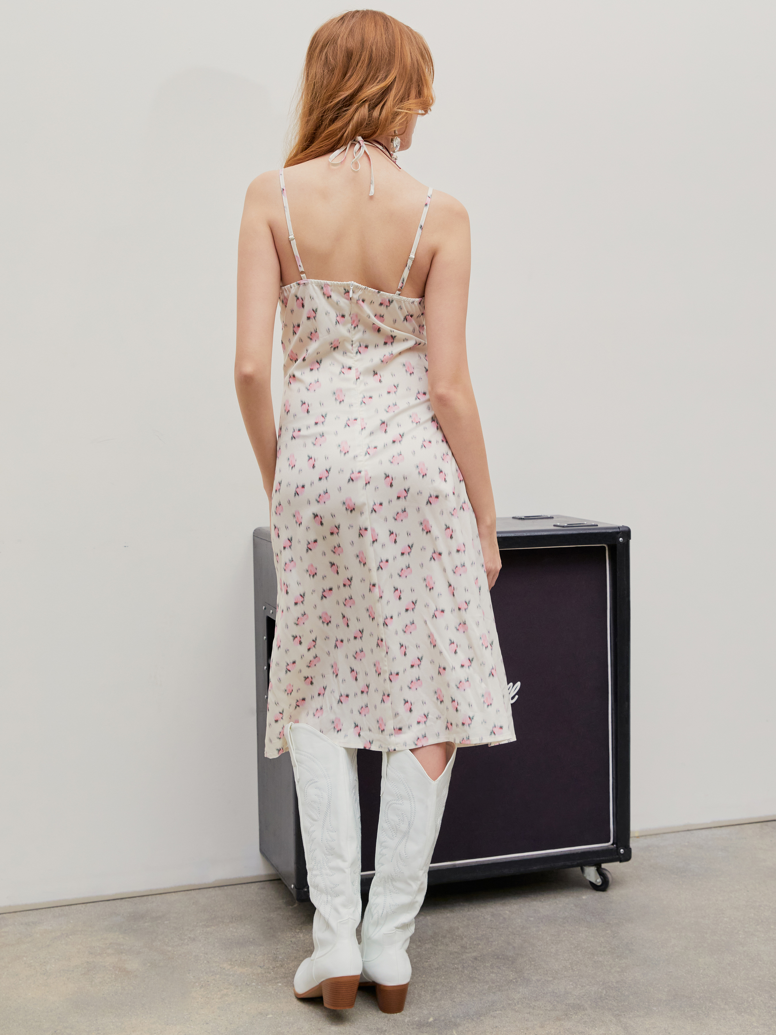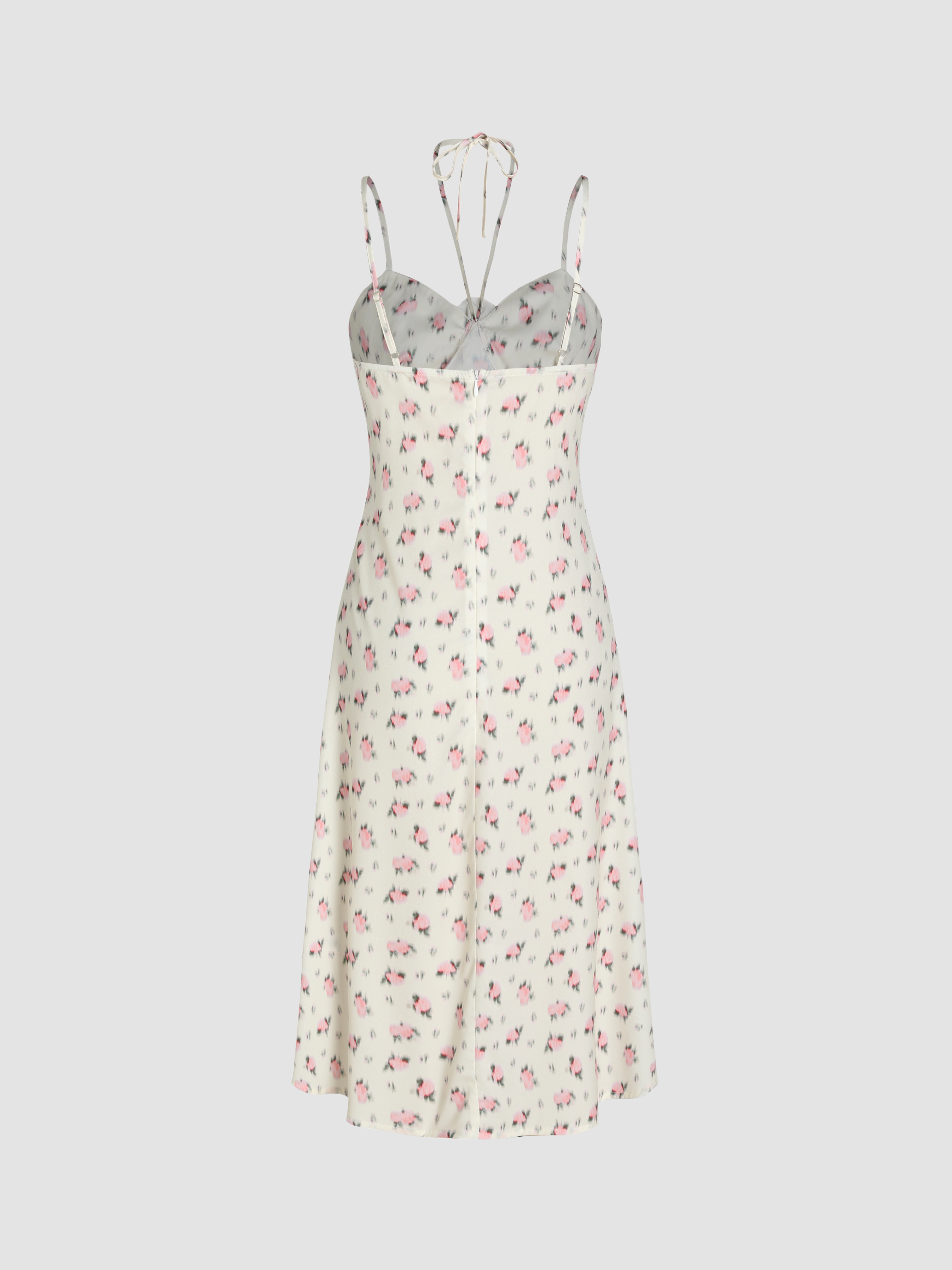 Geblümtes Neckholder-Midikleid mit Schlitz