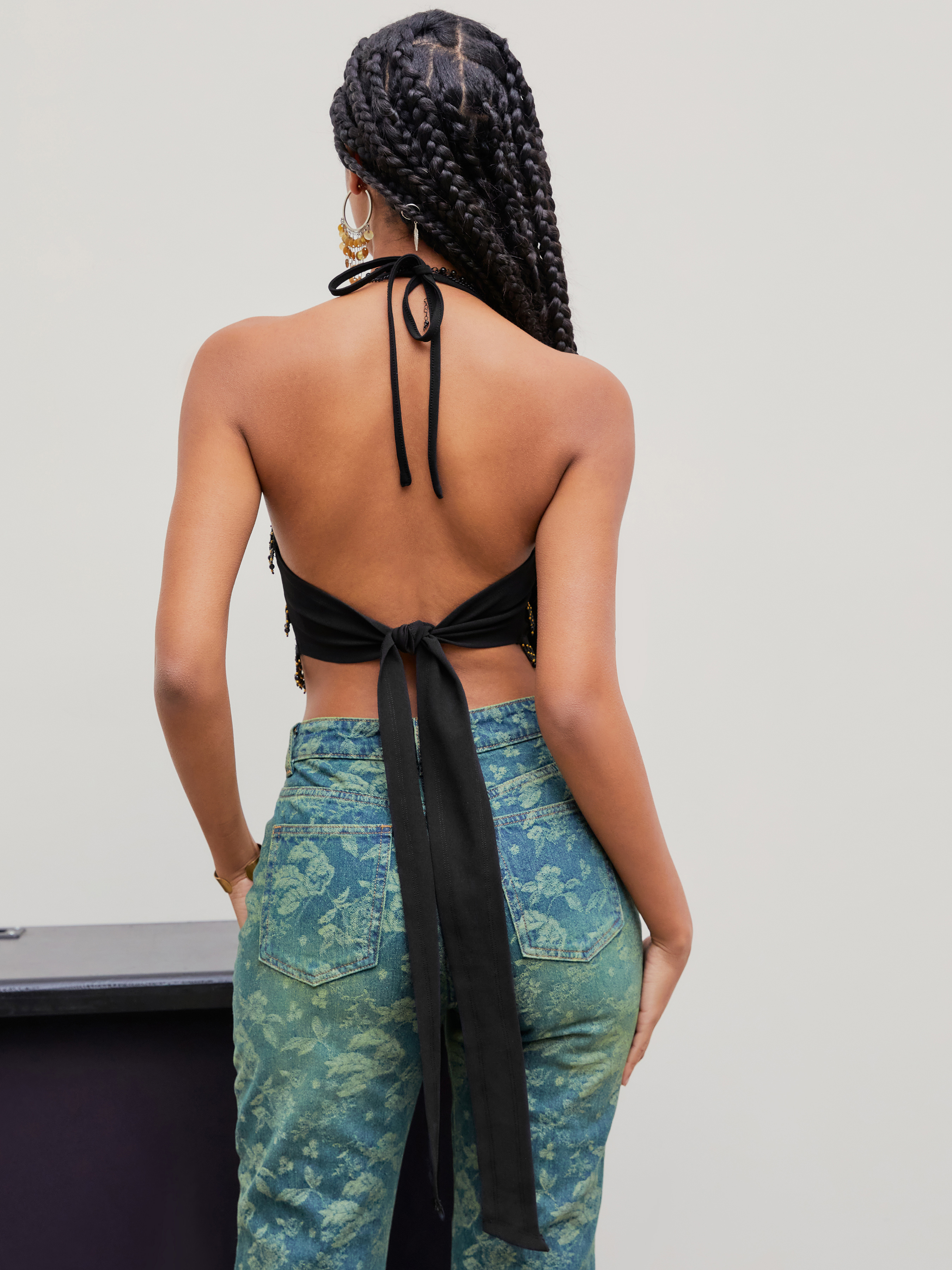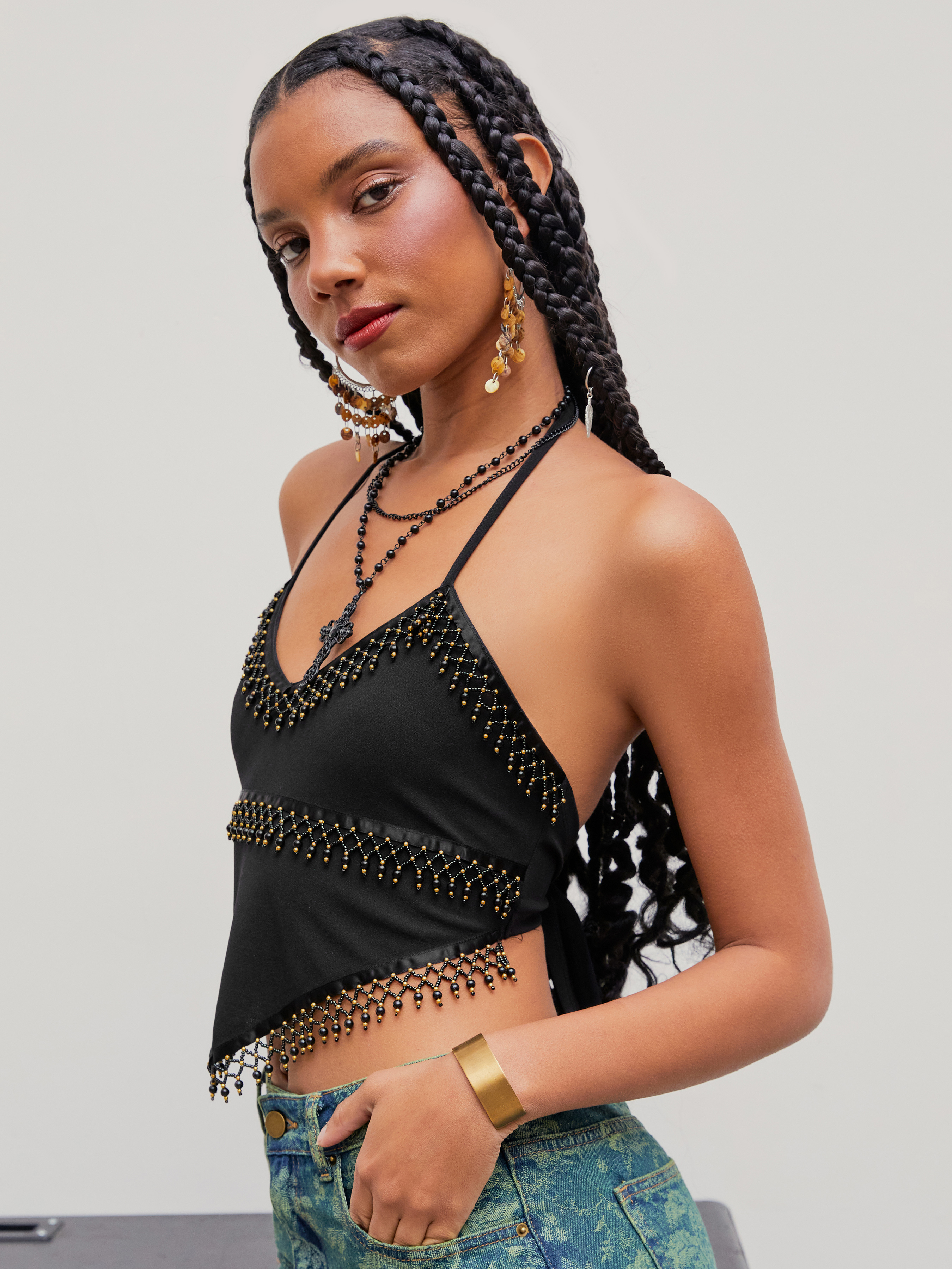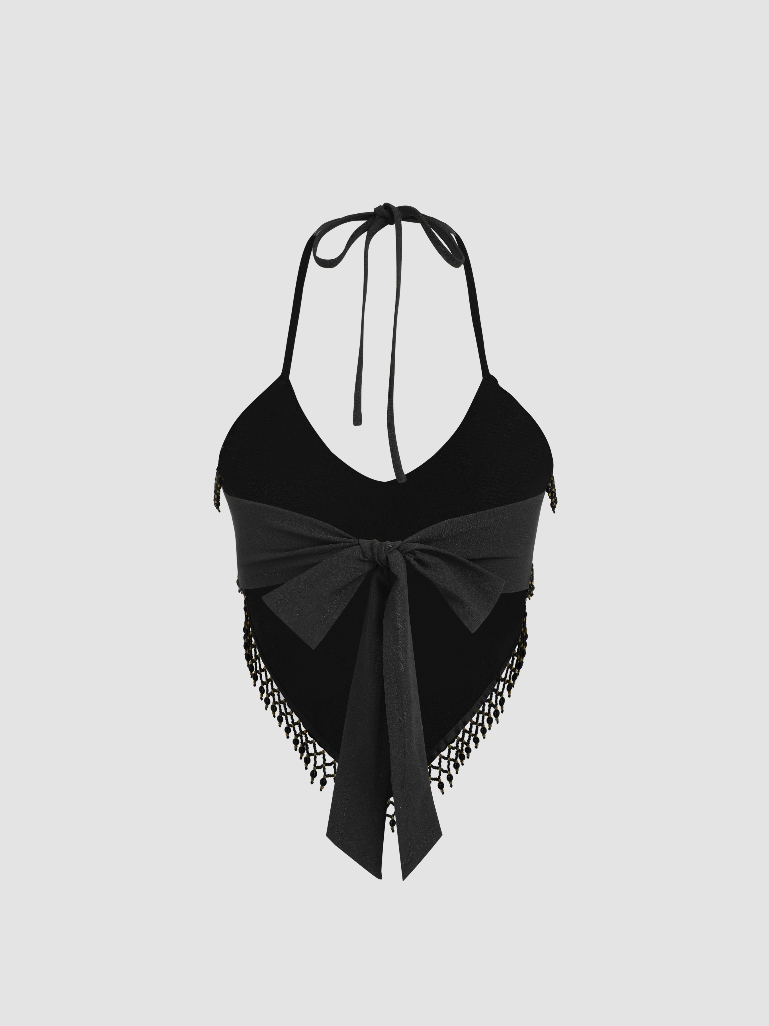 Fransenbesatz Halter Geknotetes Crop Cami Oberteil