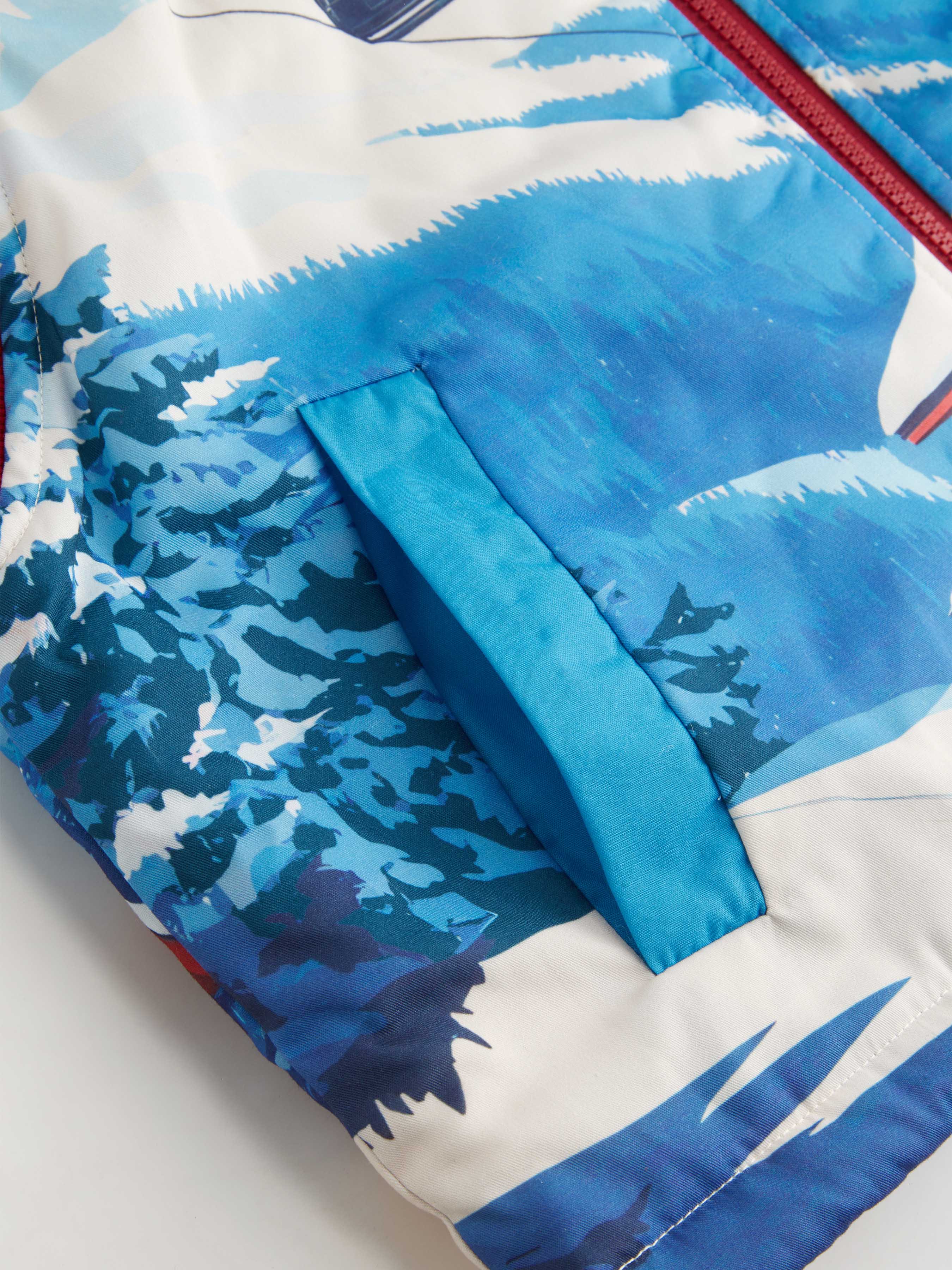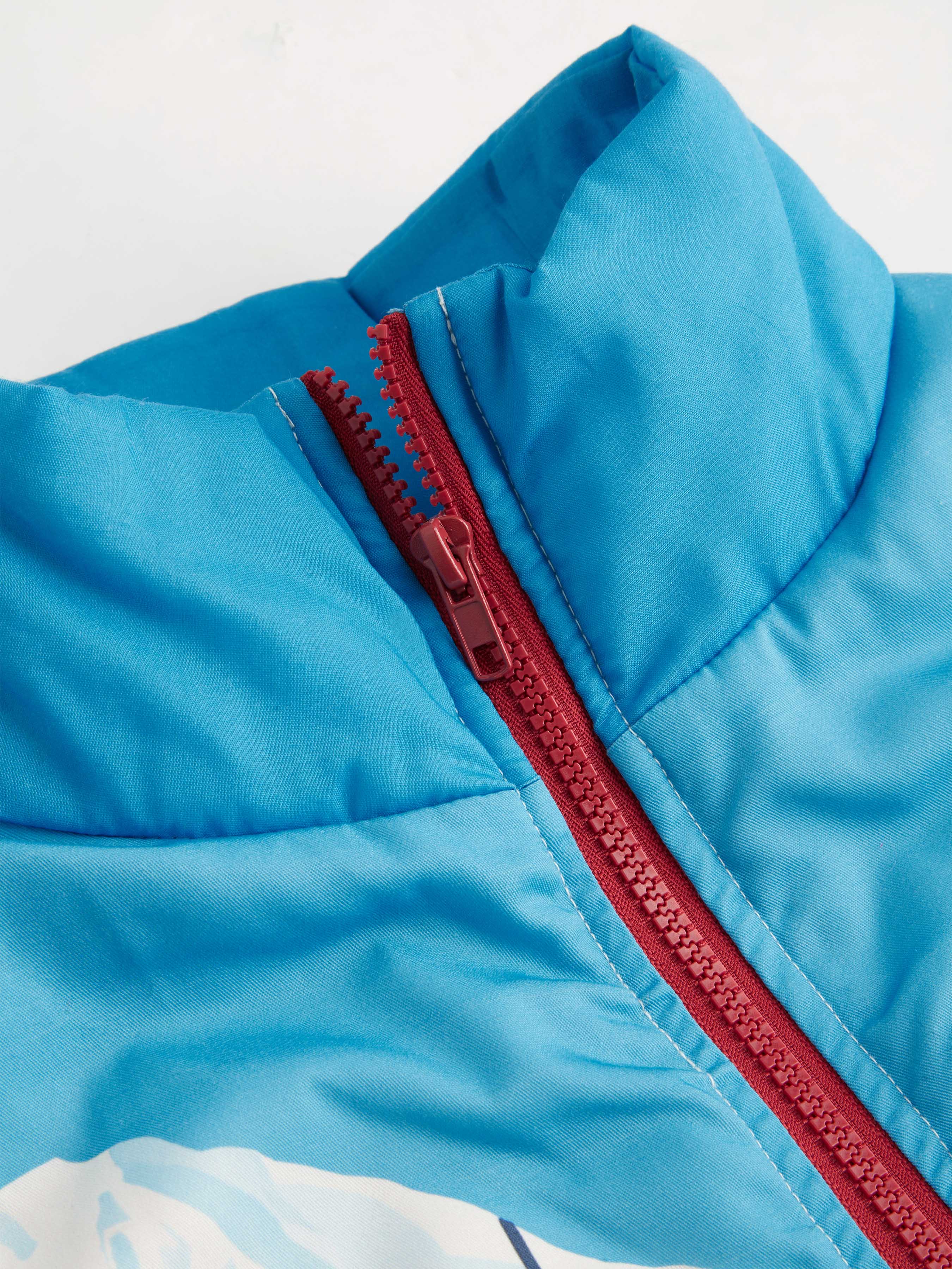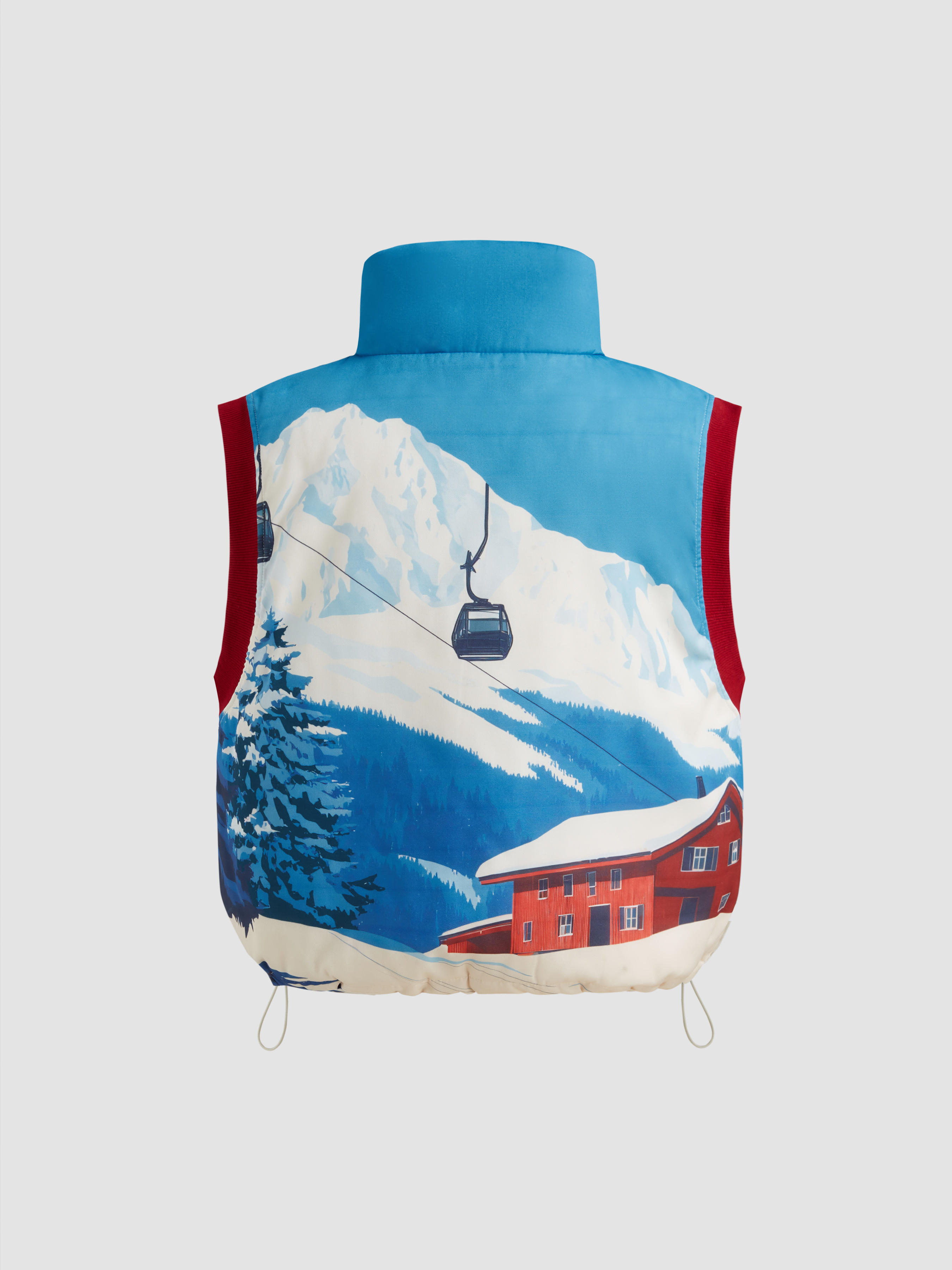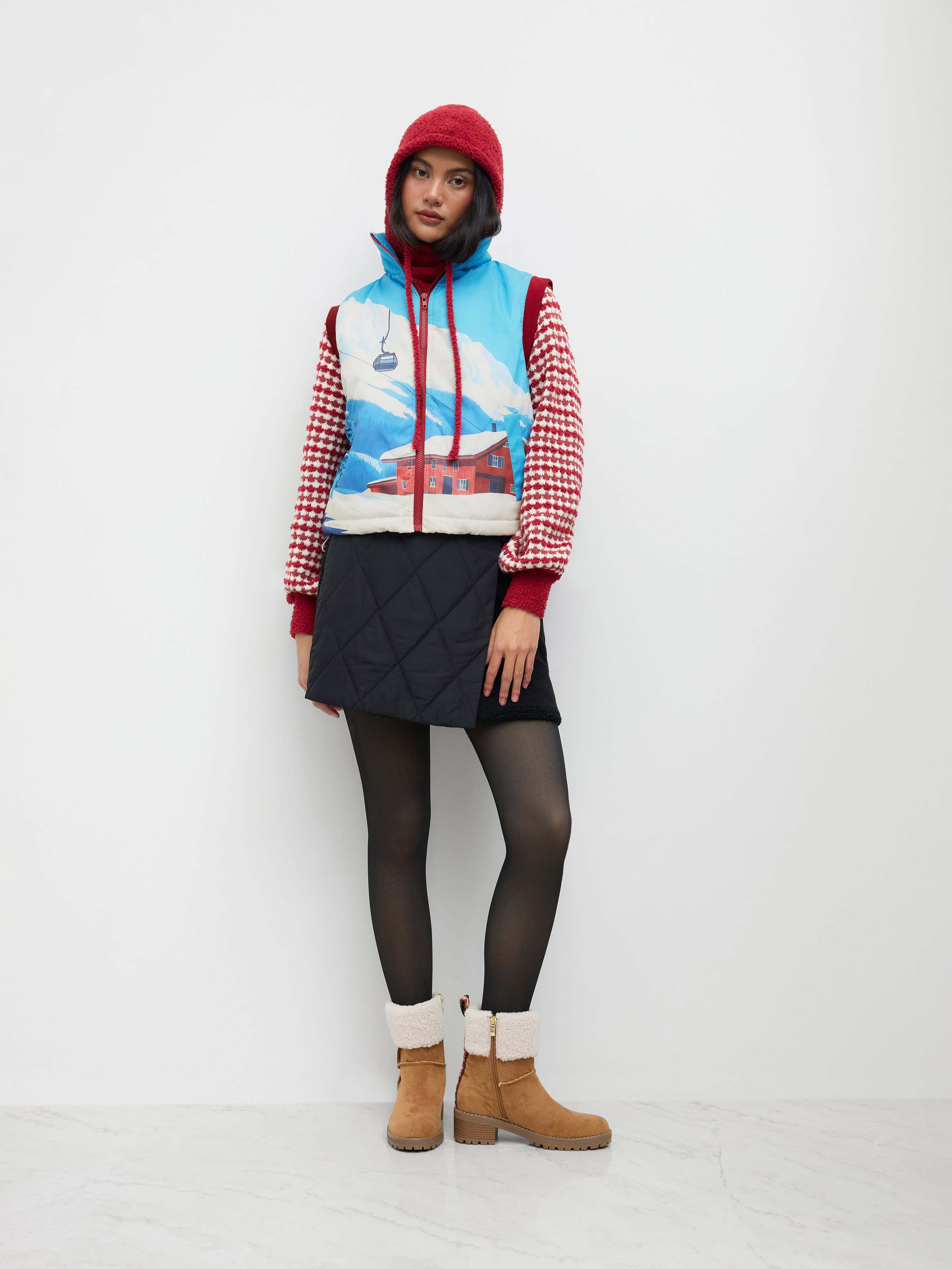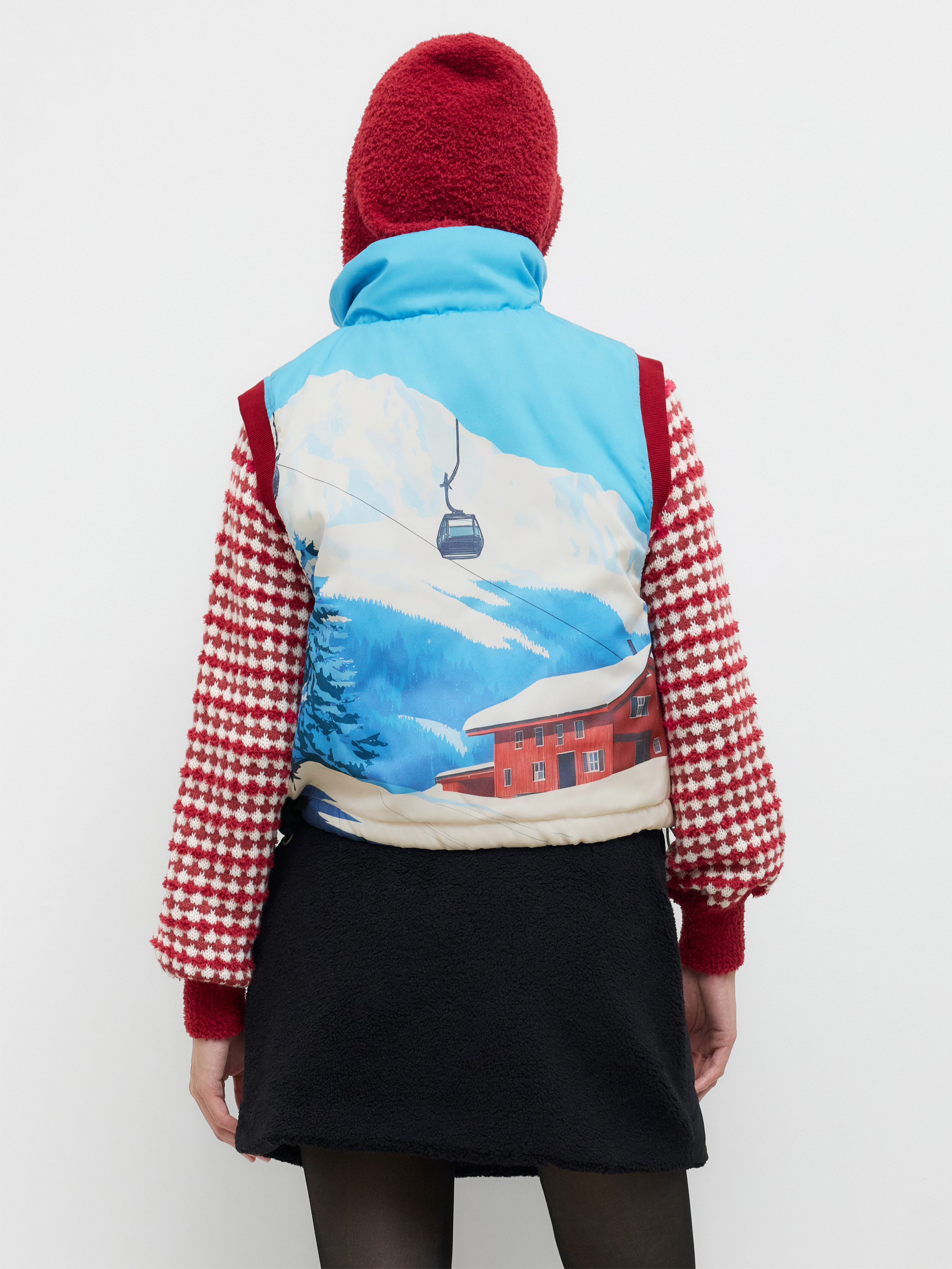 Übergrößer Pufferweste mit Trichterhals, Ski-Motiv und Zugverschluss