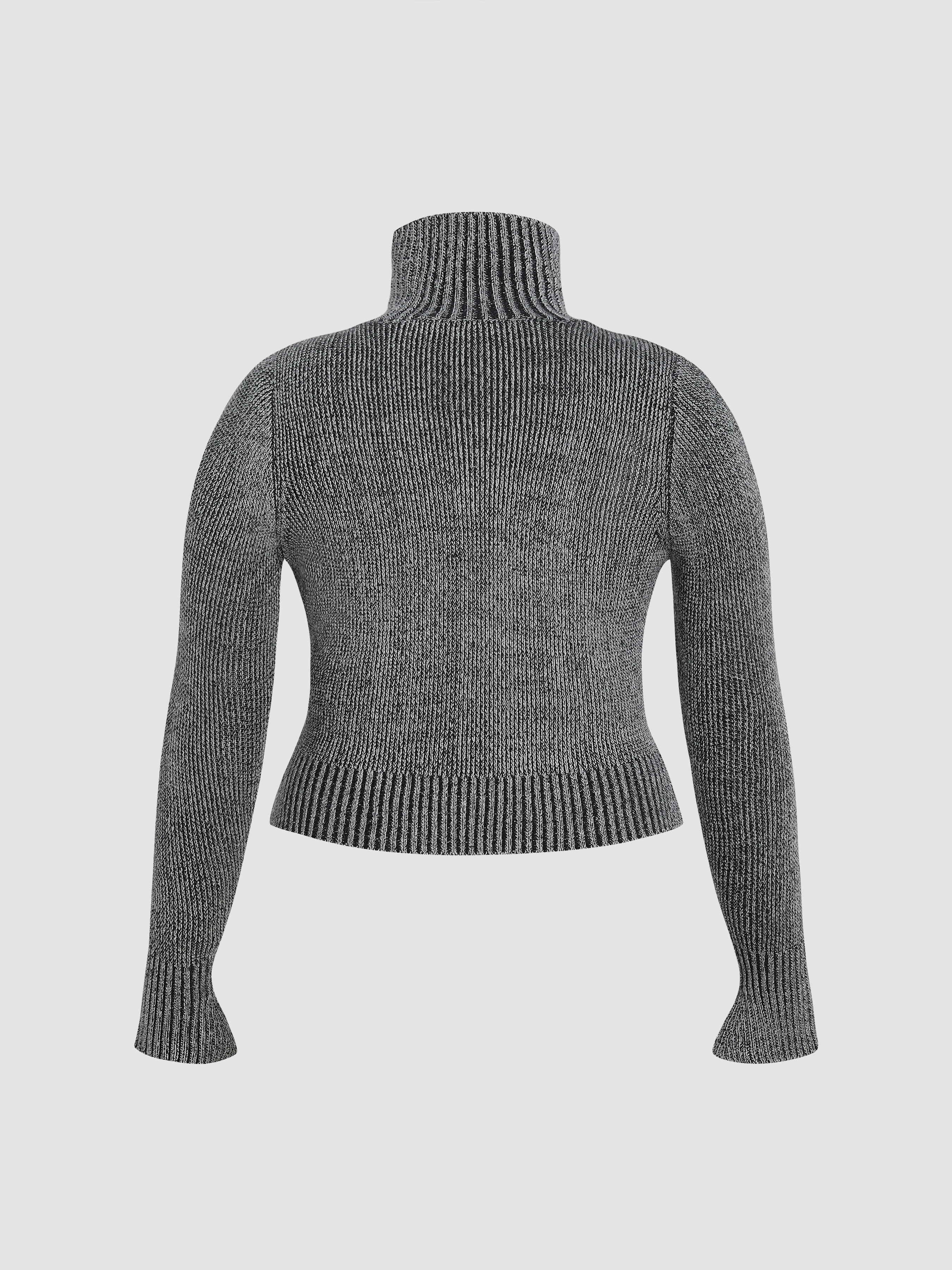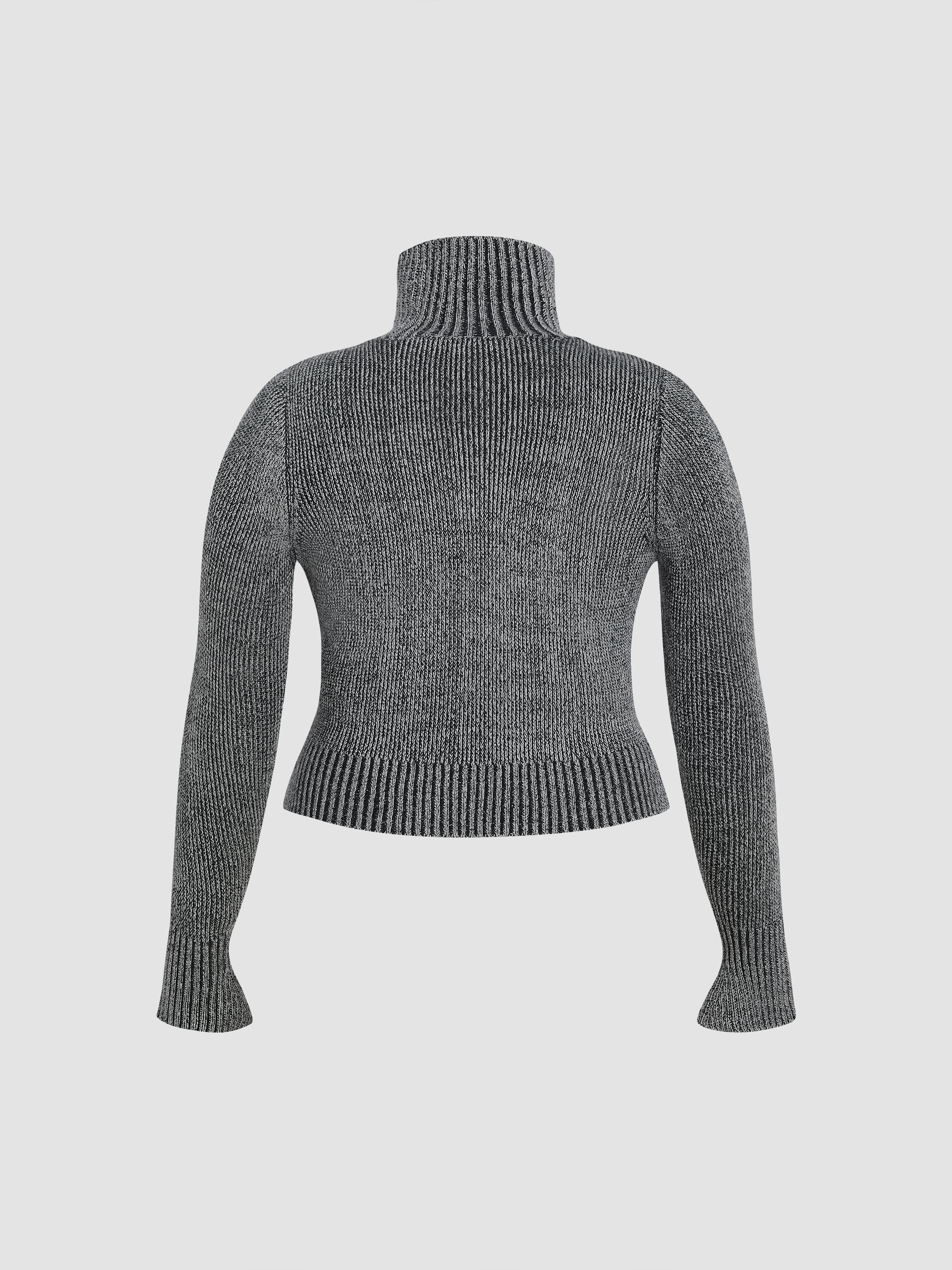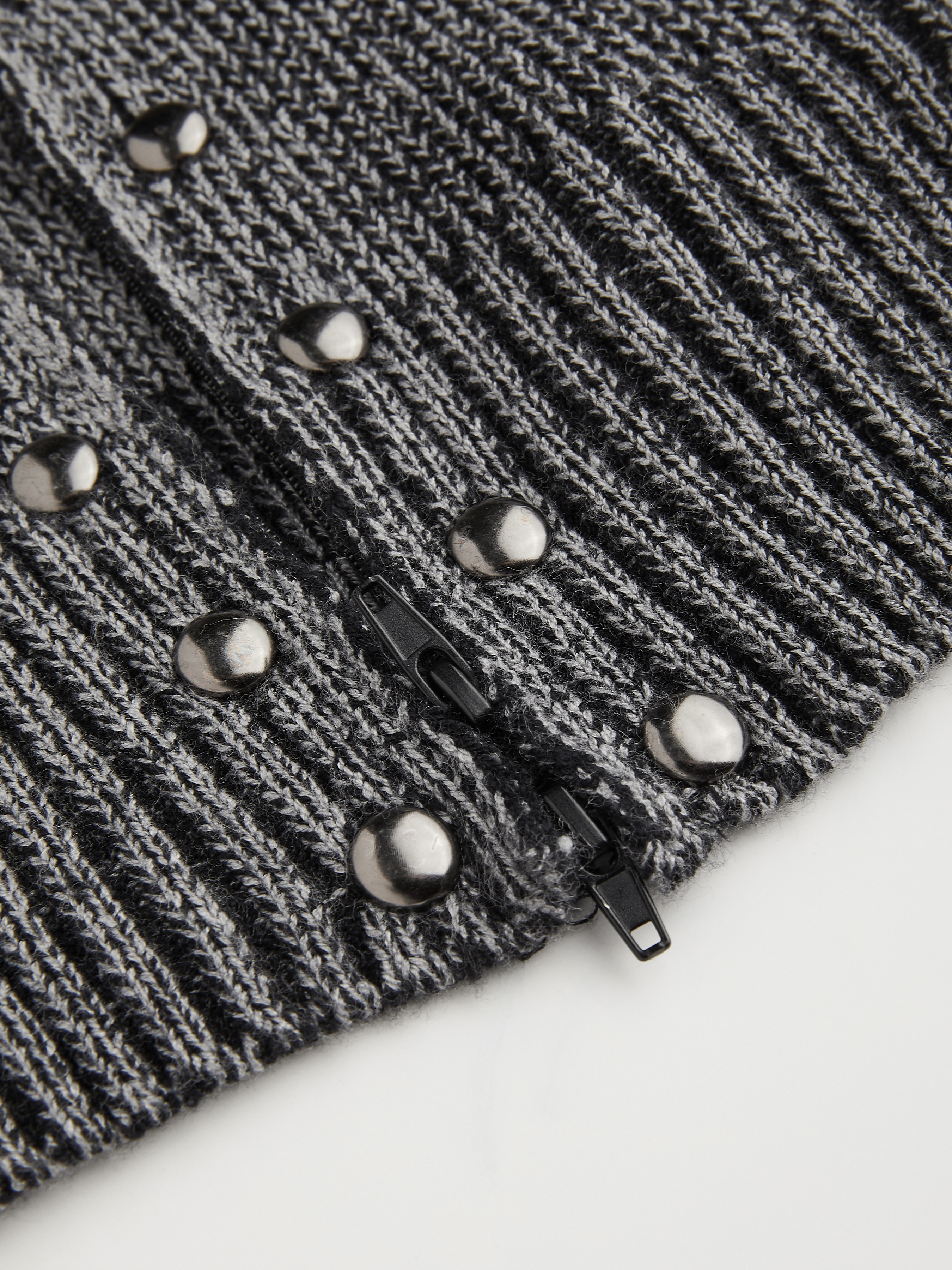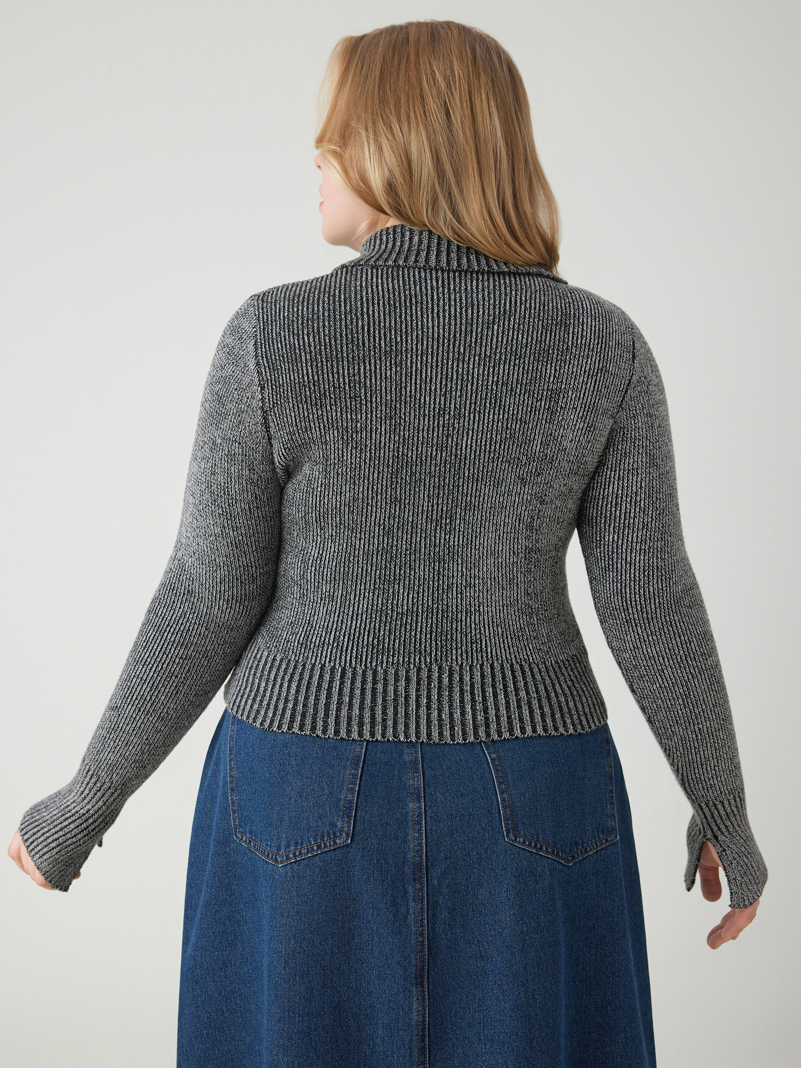 Hochhalsiger Niet-Reißverschluss Crop Strickjacke Kurve & Plus