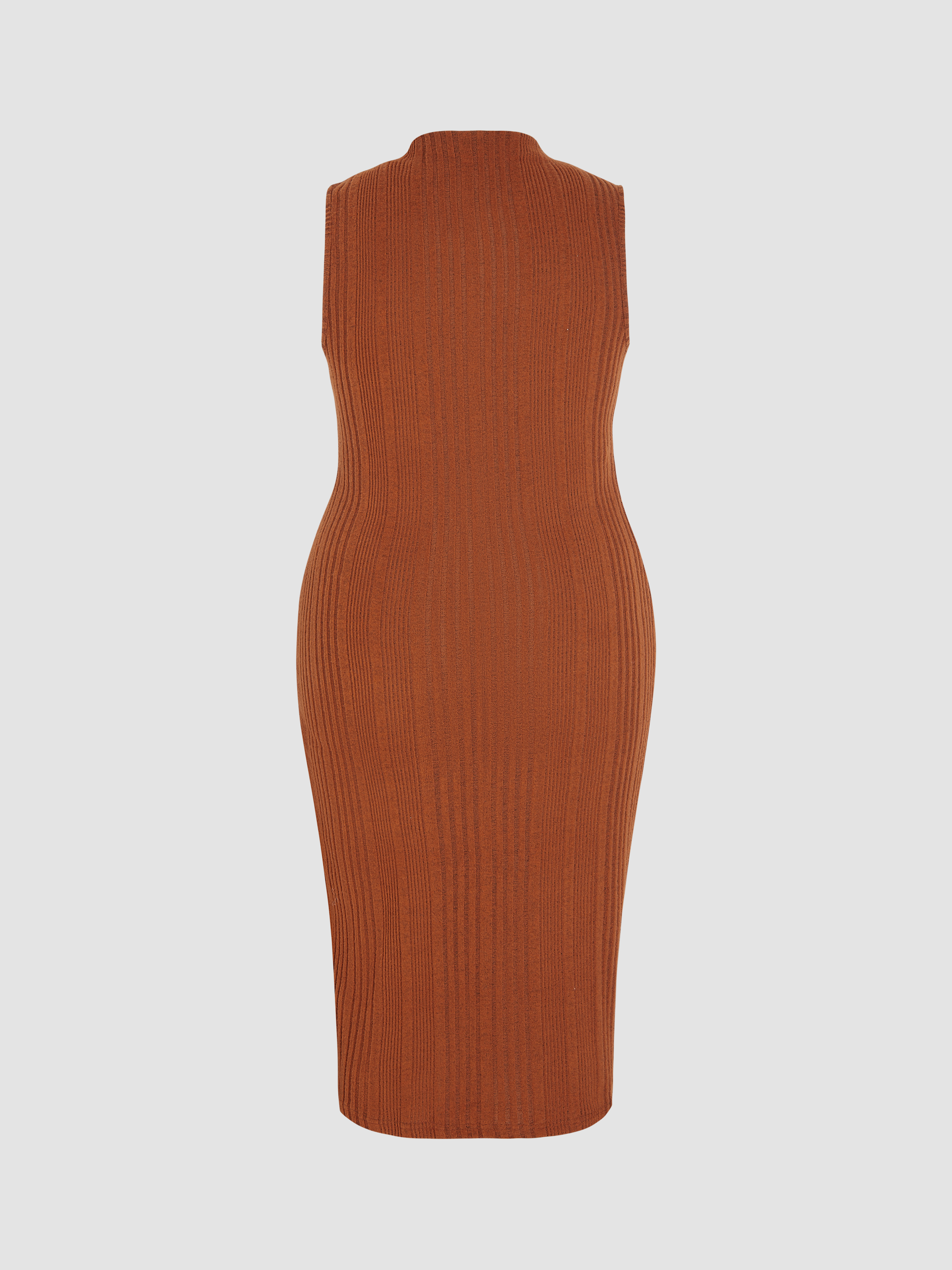 Hochhalsiges einfarbiges gerafftes Midikleid Kurve & Plus