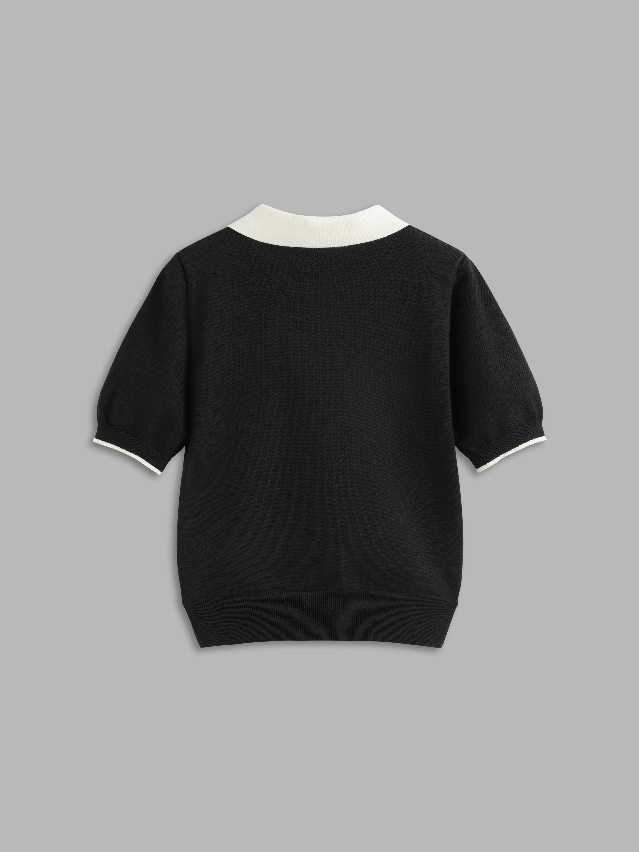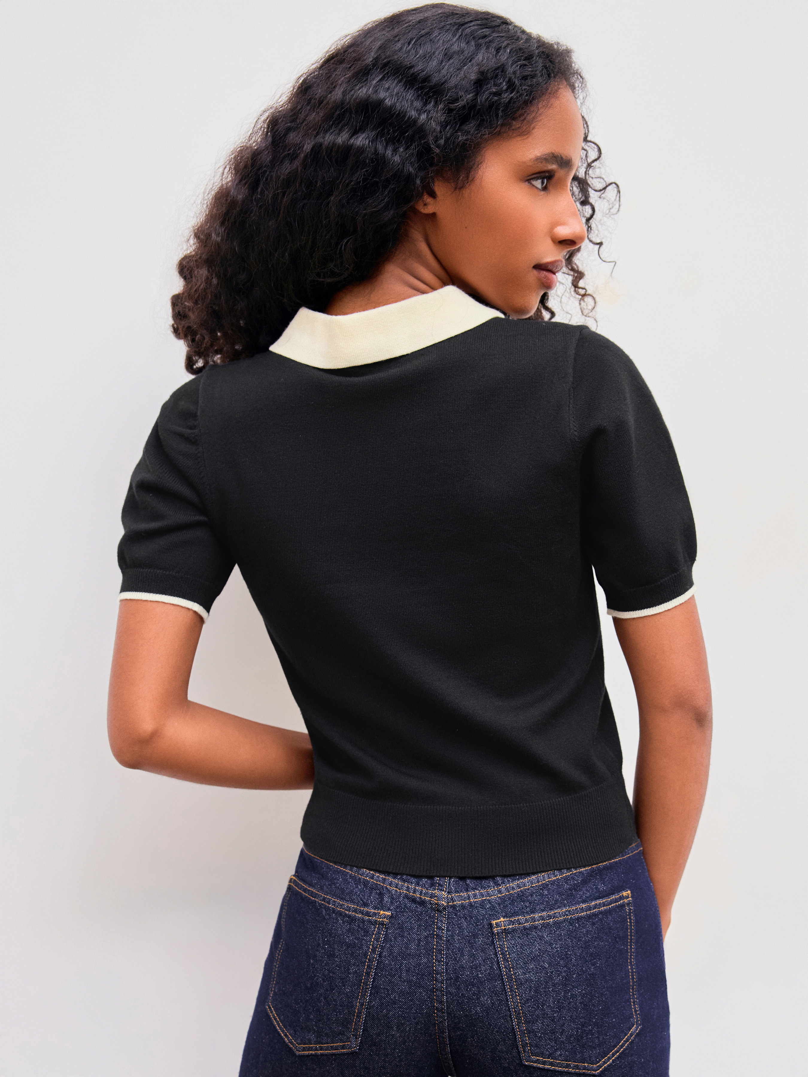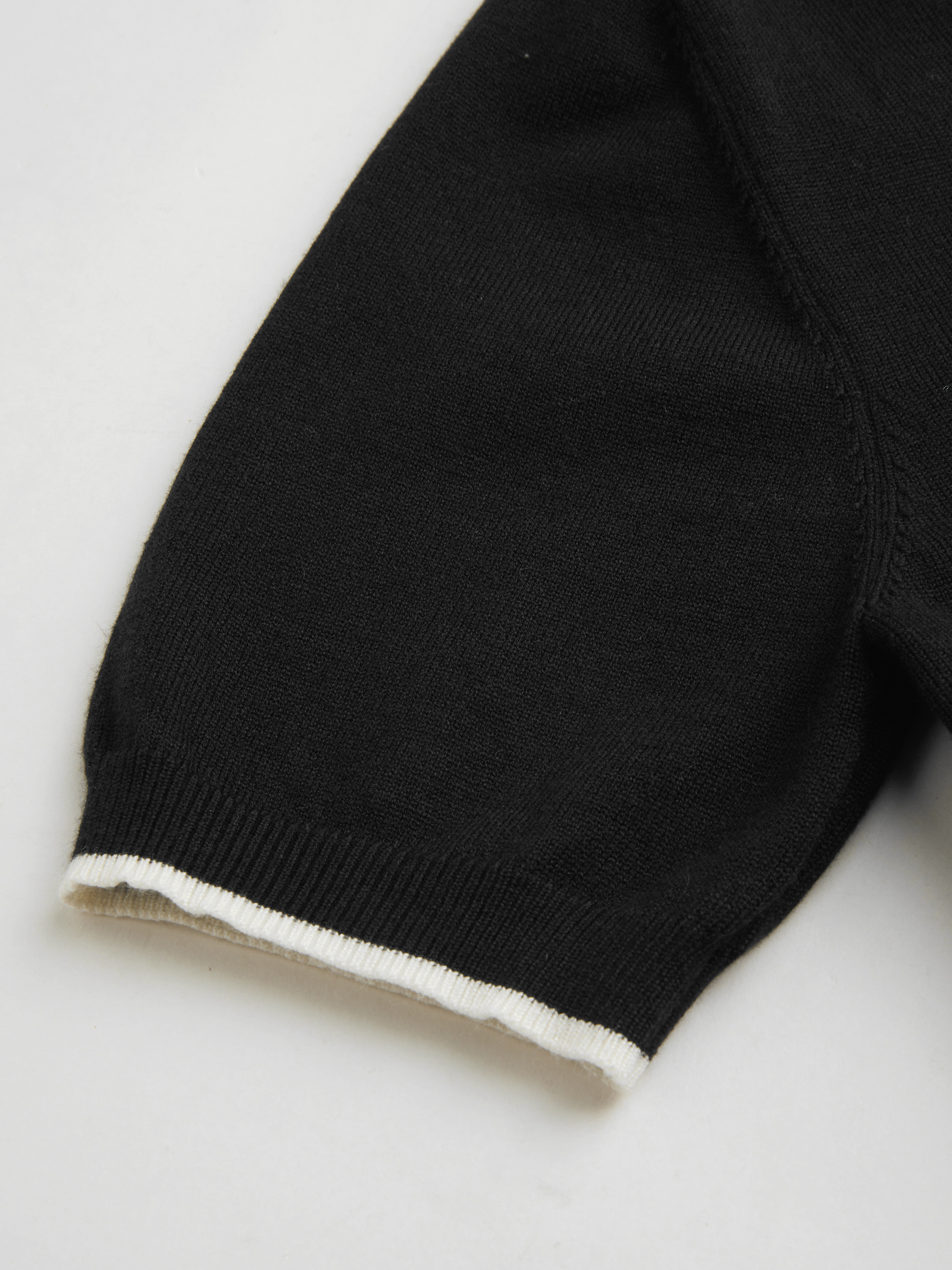 Strick-Polo mit Kontrastborten Kurzärmliges Oberteil