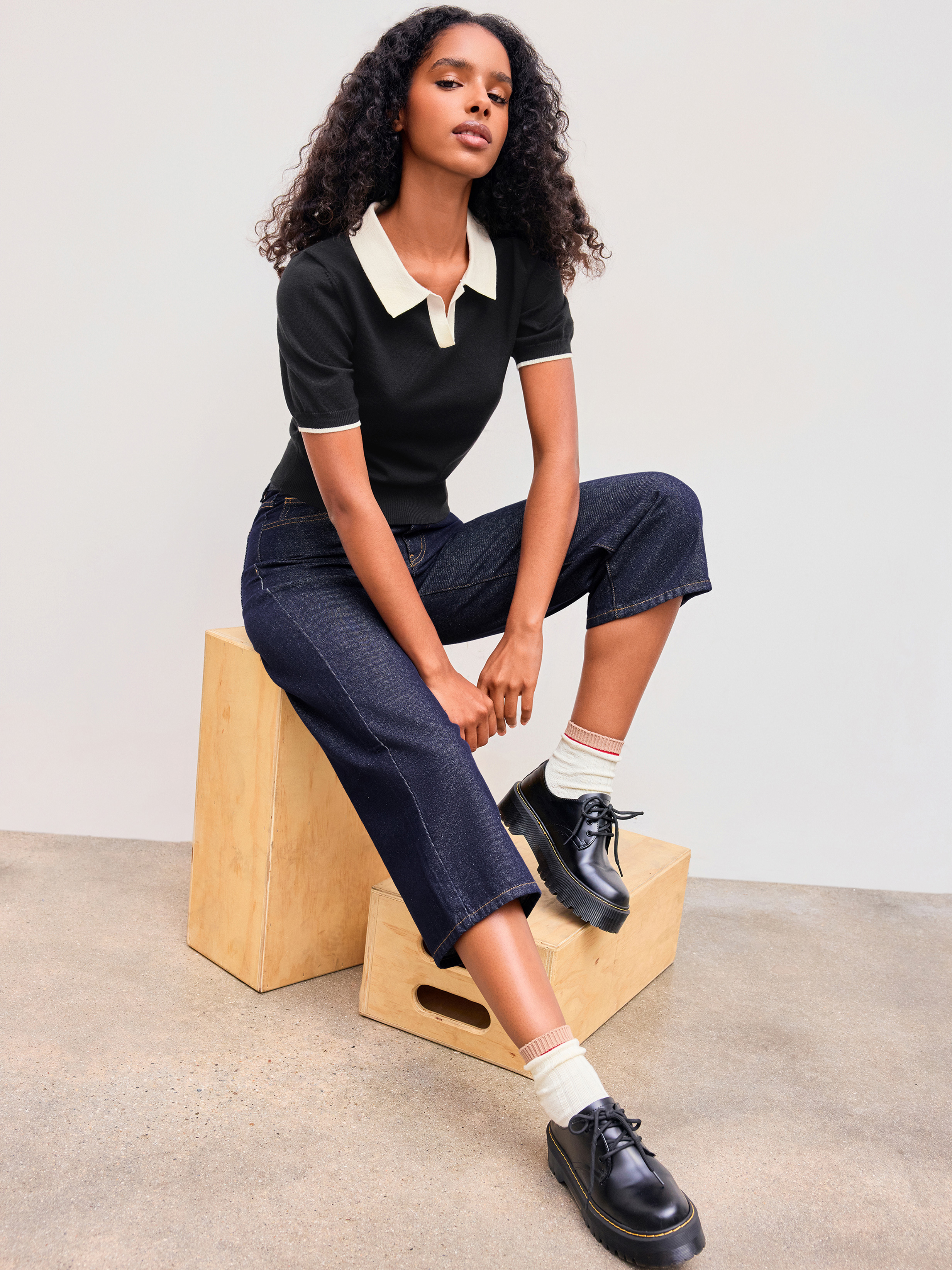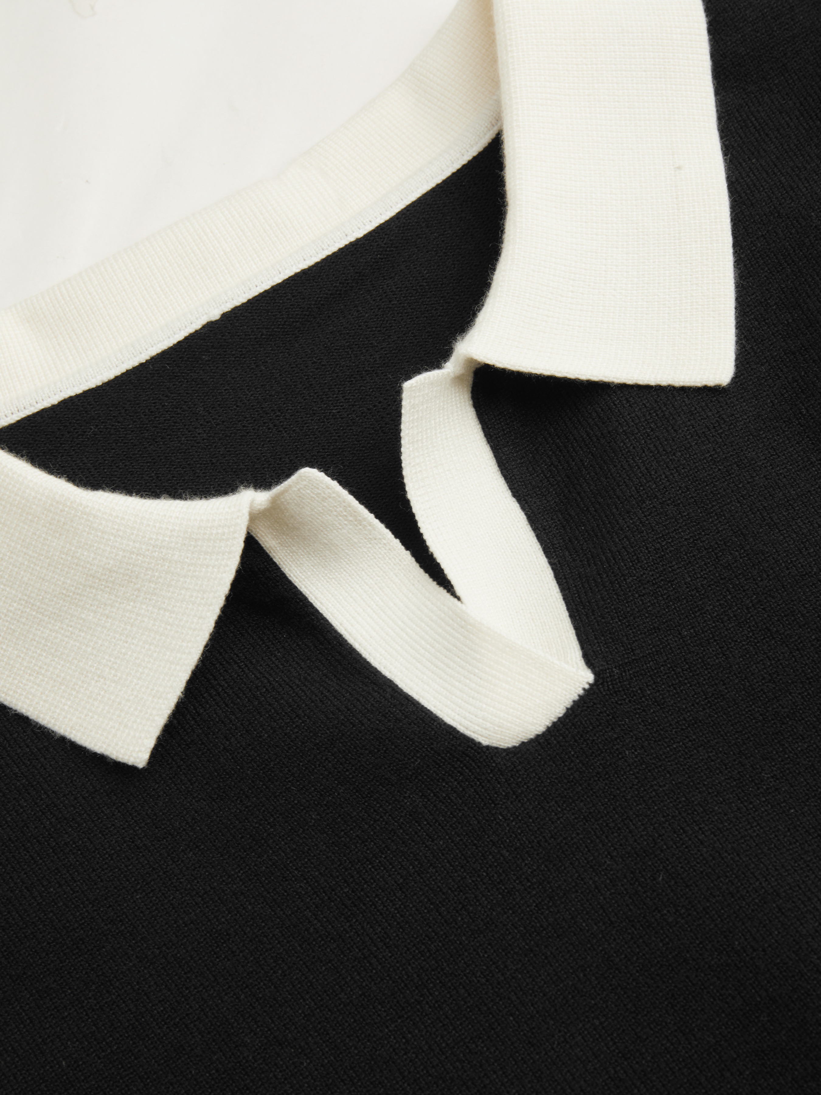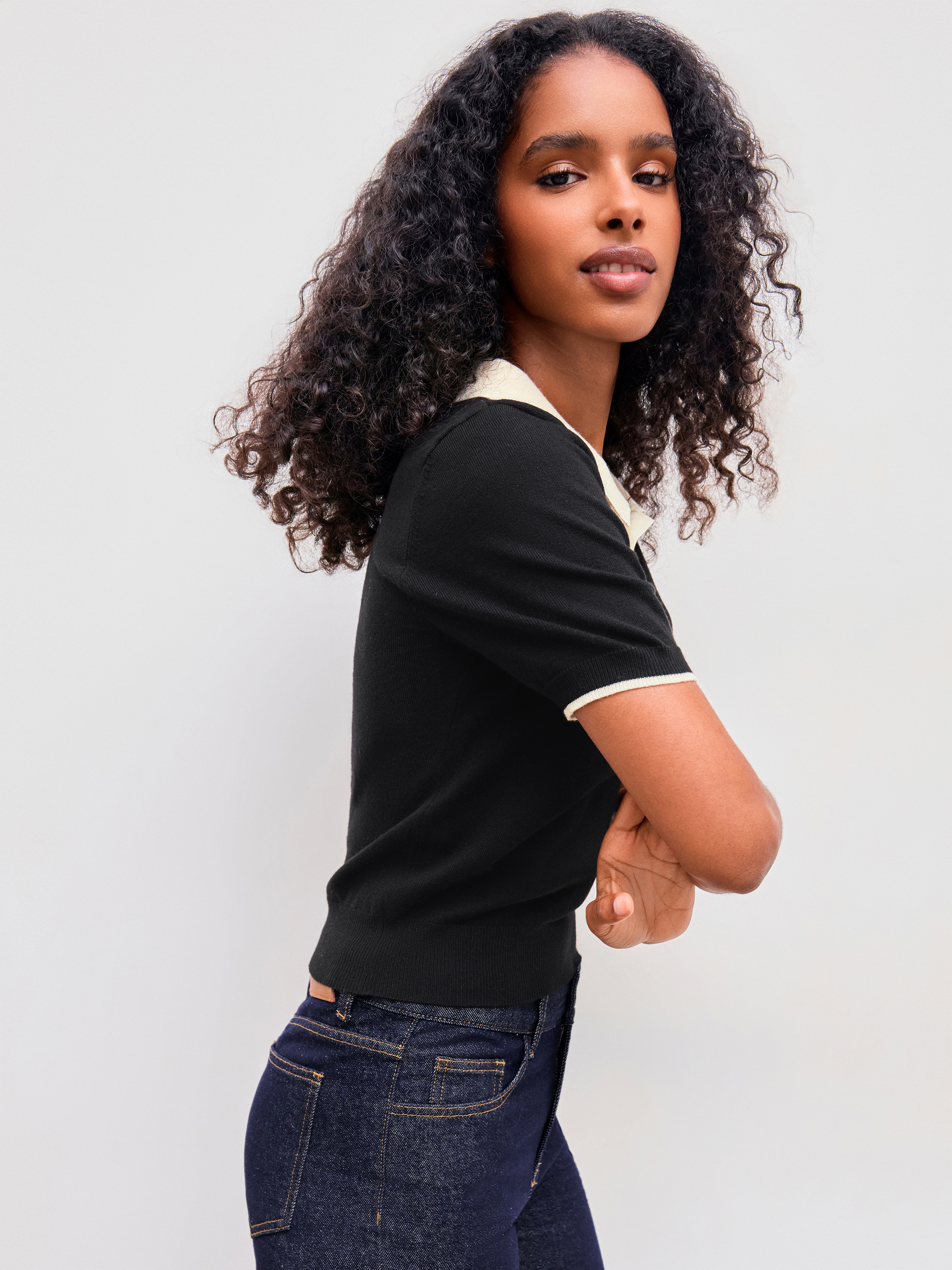 Strick-Polo mit Kontrastborten Kurzärmliges Oberteil