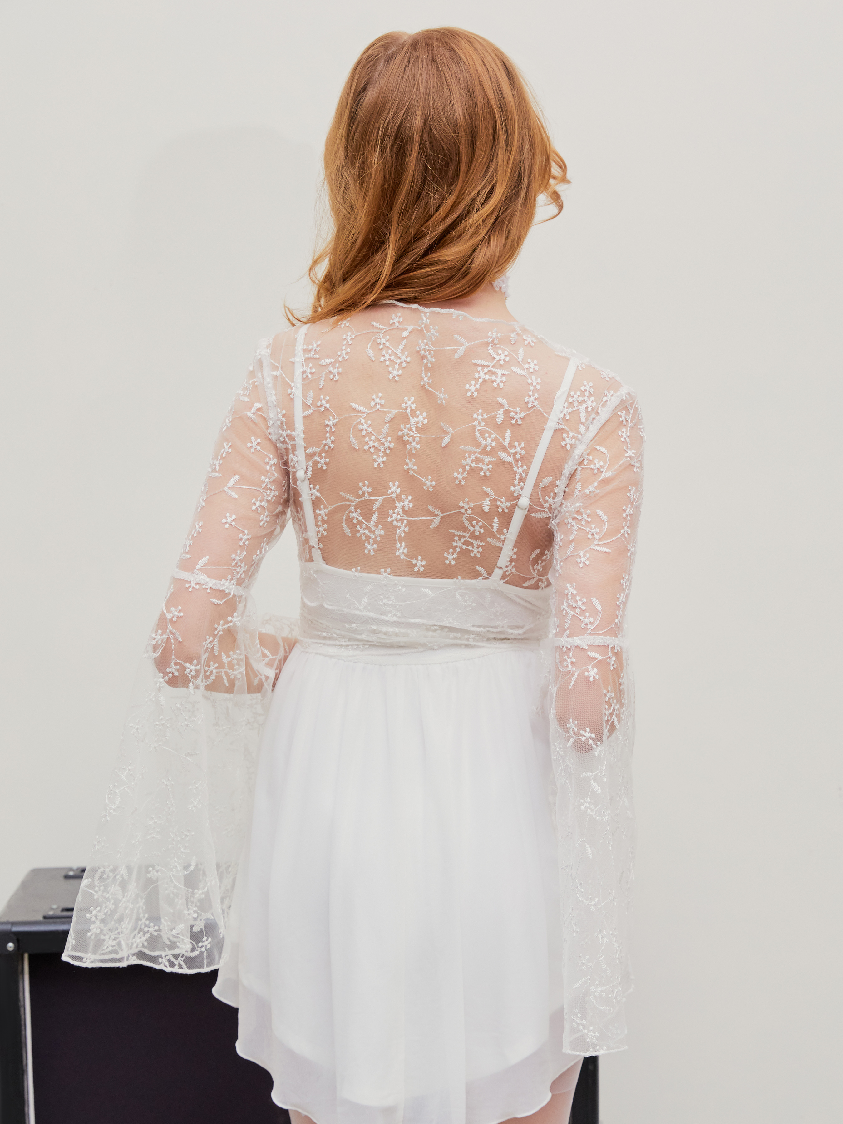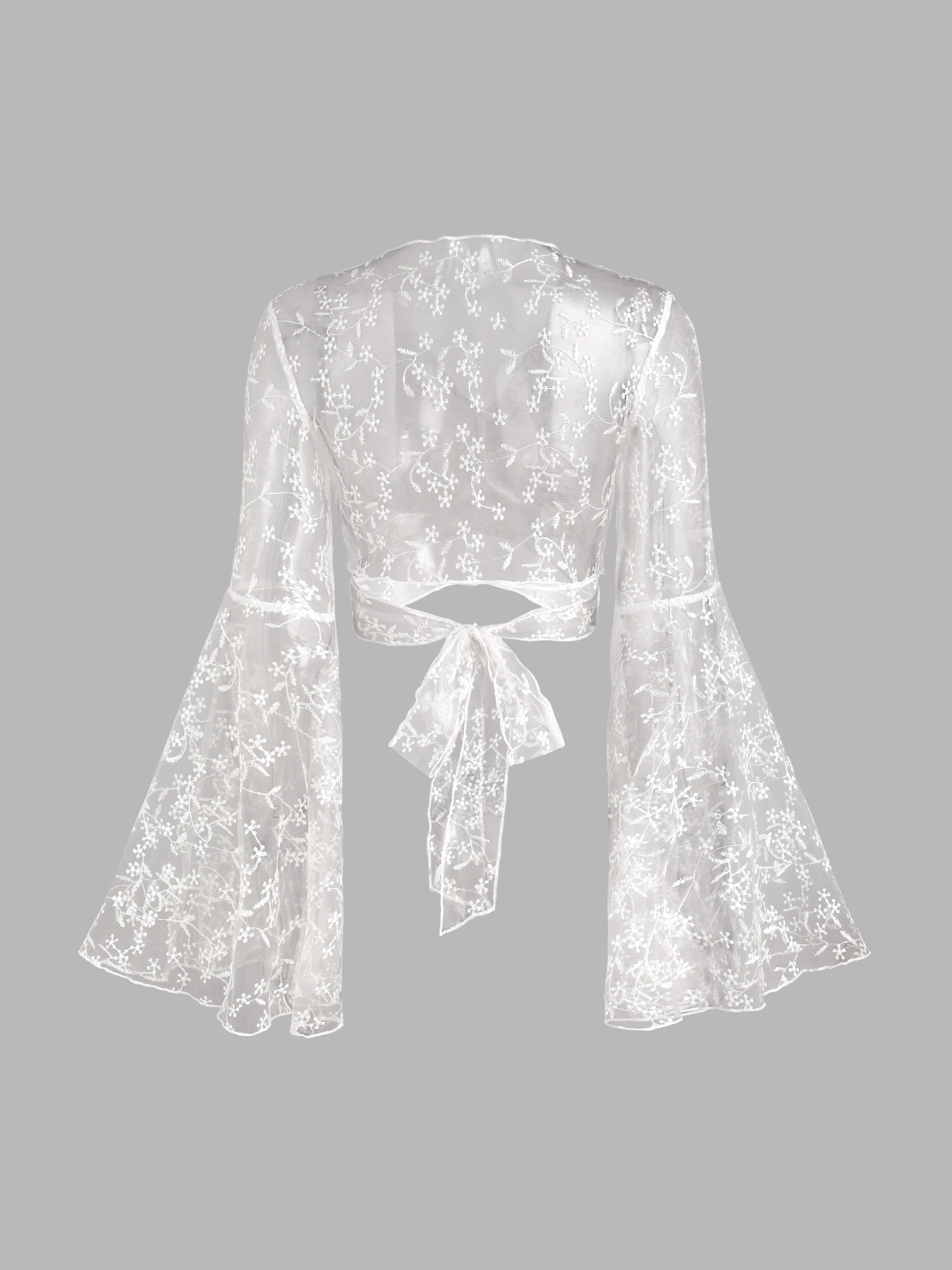 Spitze Transparente Langarm Crop Bluse