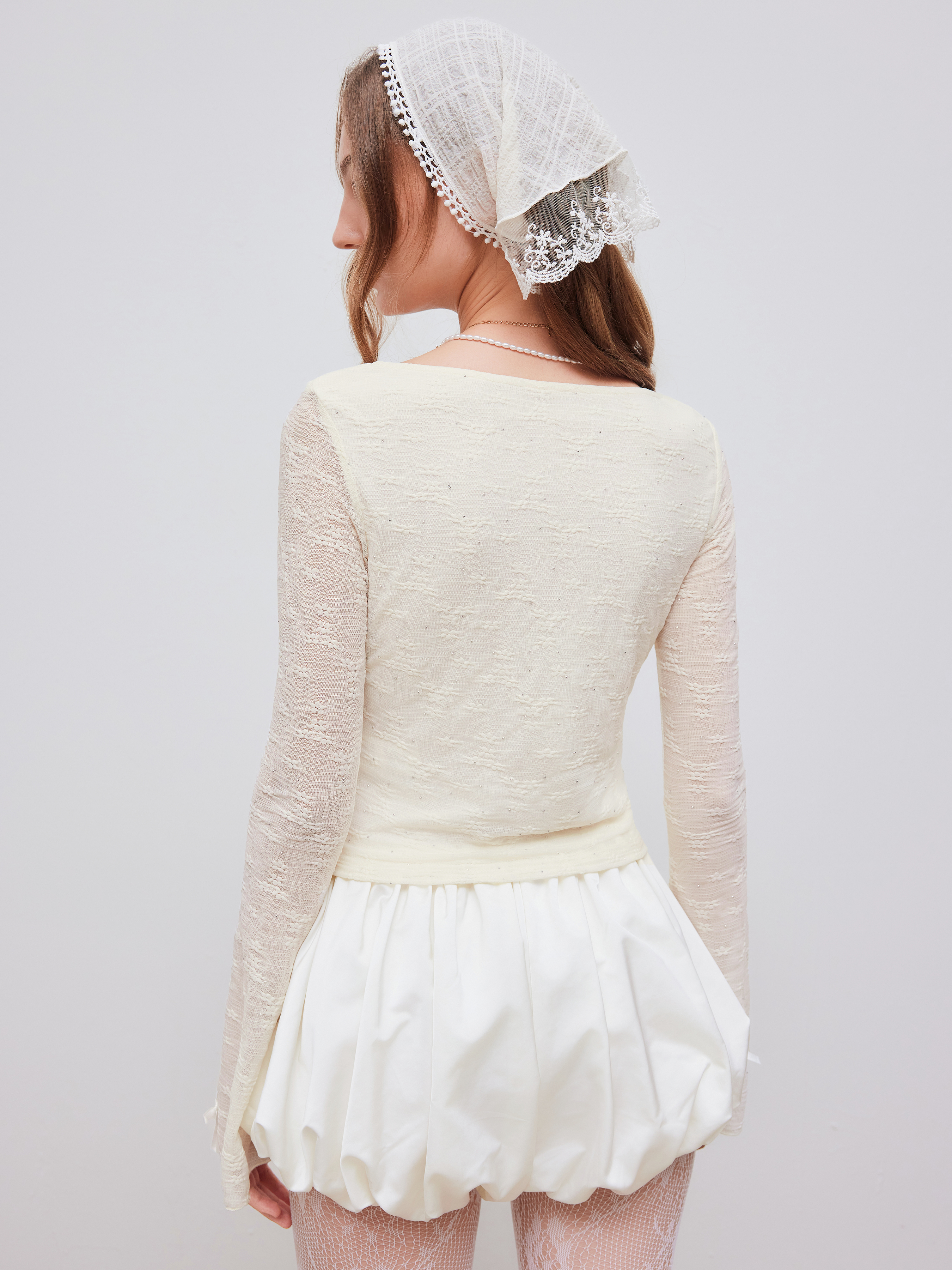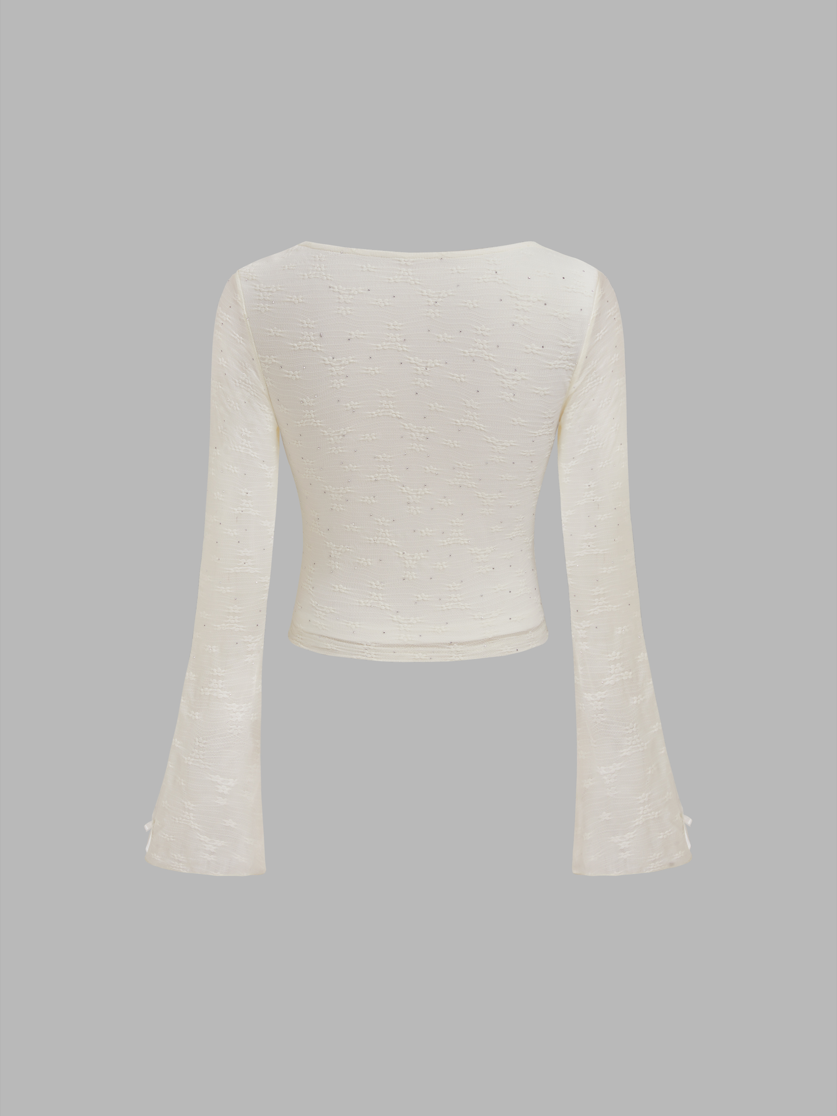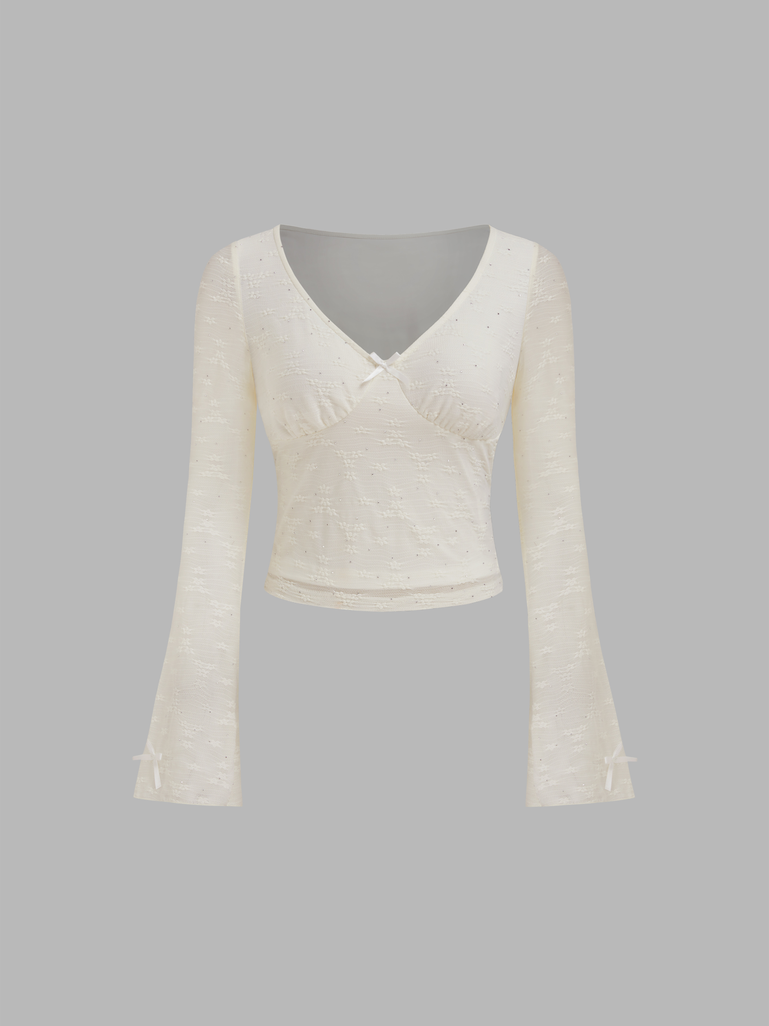 Spitzen V-Ausschnitt Blumen Langarm Oberteil