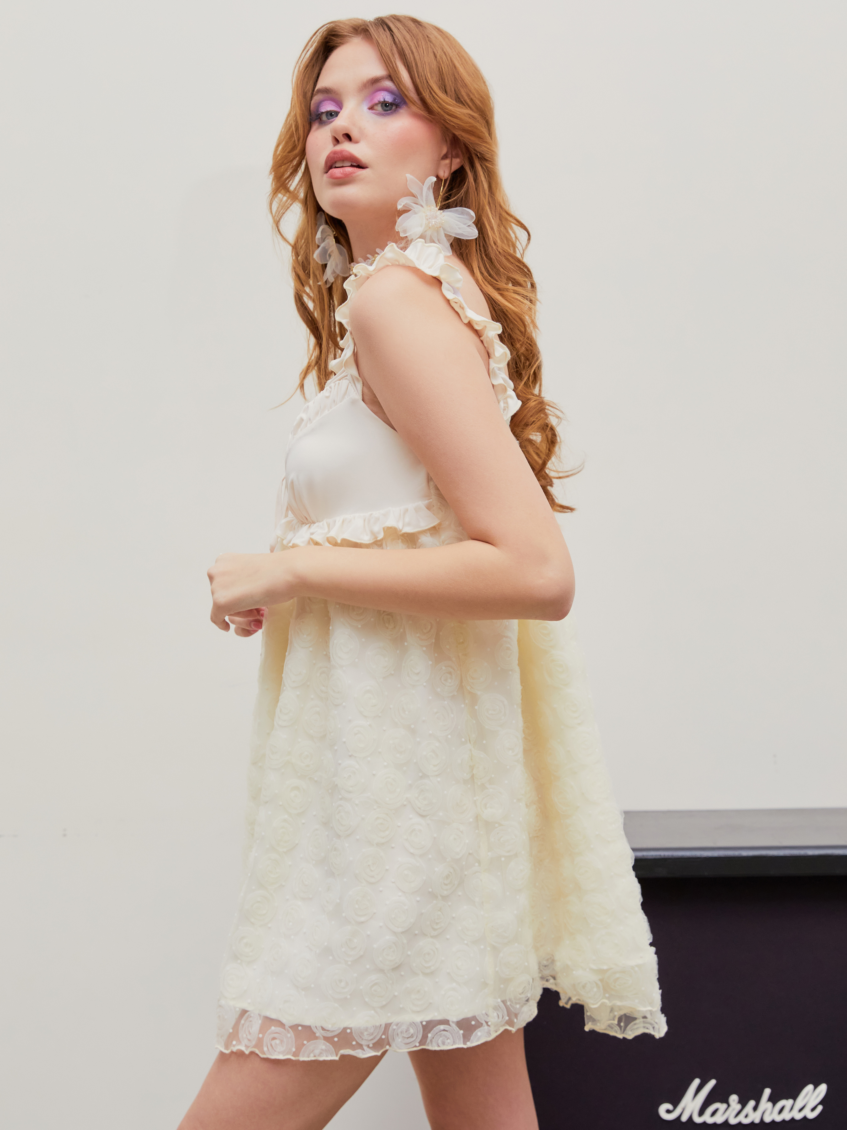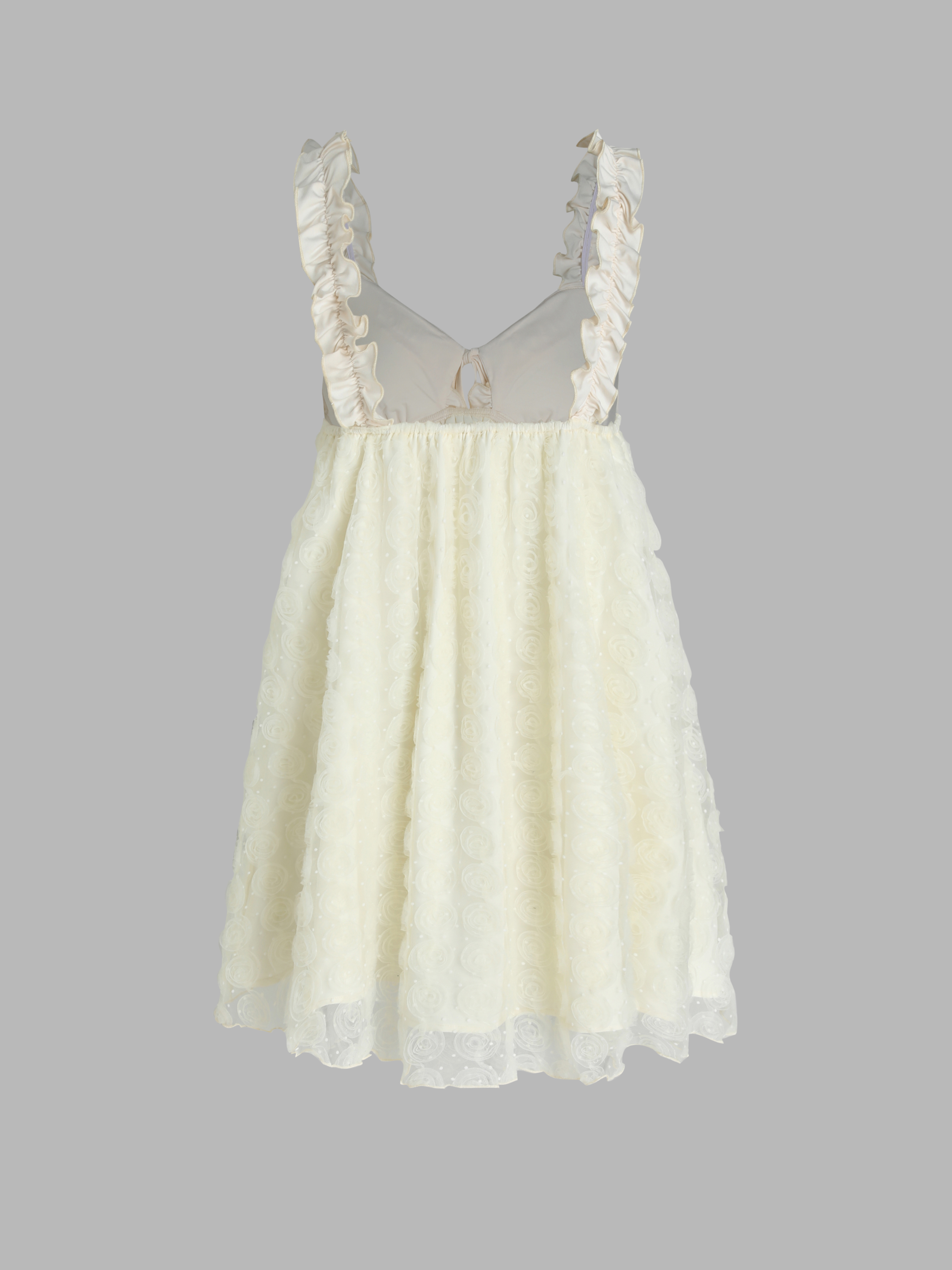 Geknotetes Rüschen-Minikleid aus Netzstoff mit Blumenmuster