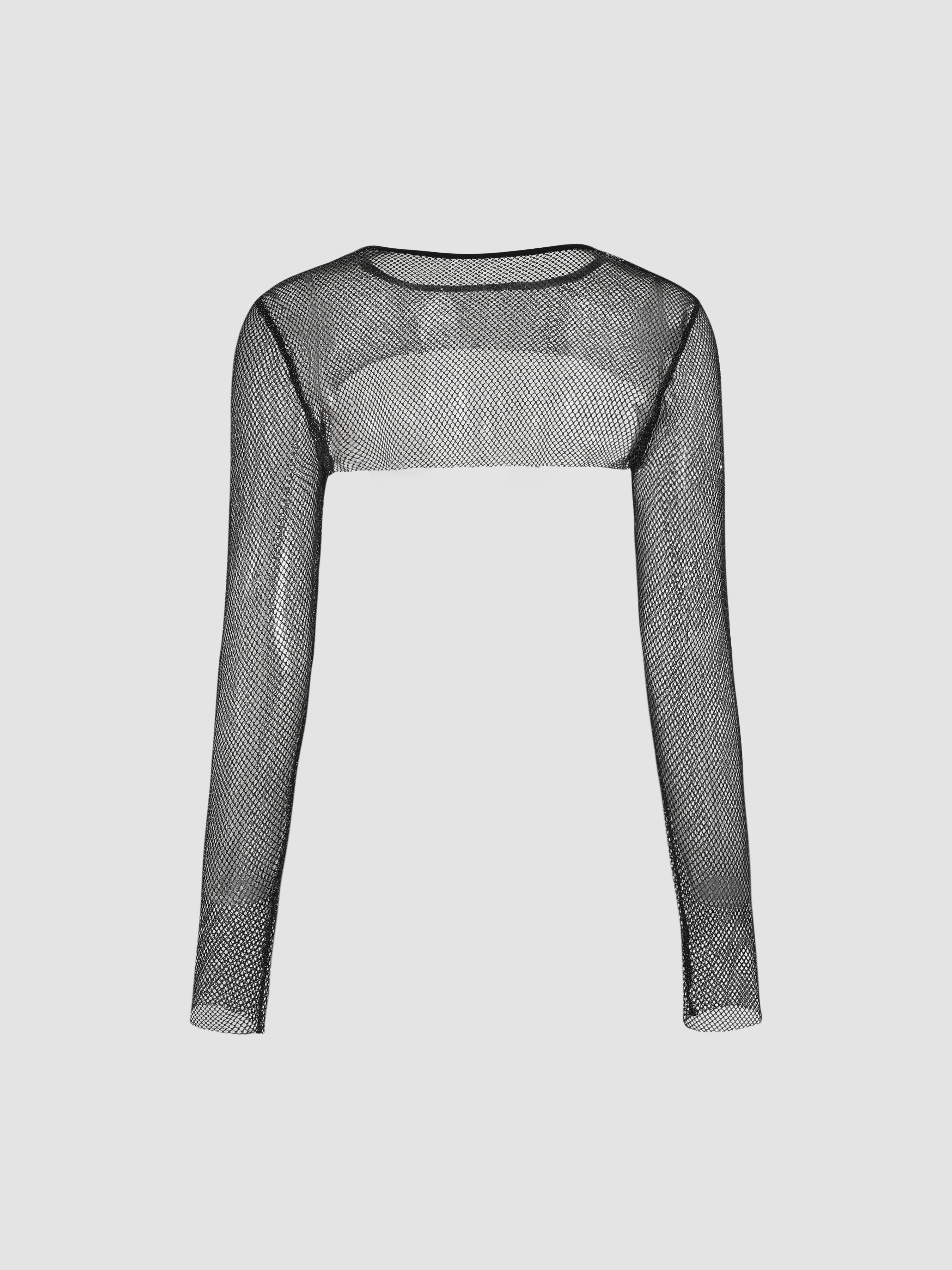 Crop-Top mit langen Ärmeln und aushöhlendem Mesh