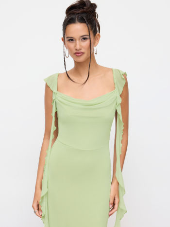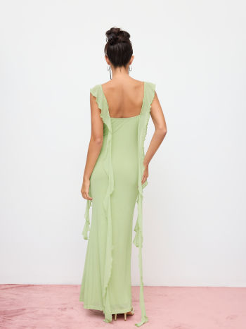 Maxikleid mit Maschenstoff und Spitzenbund