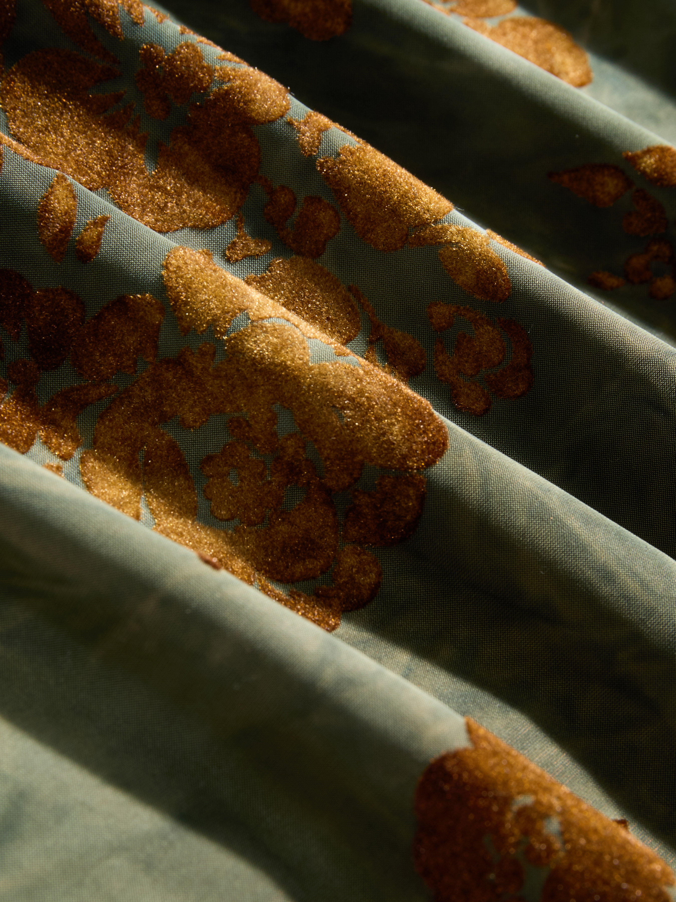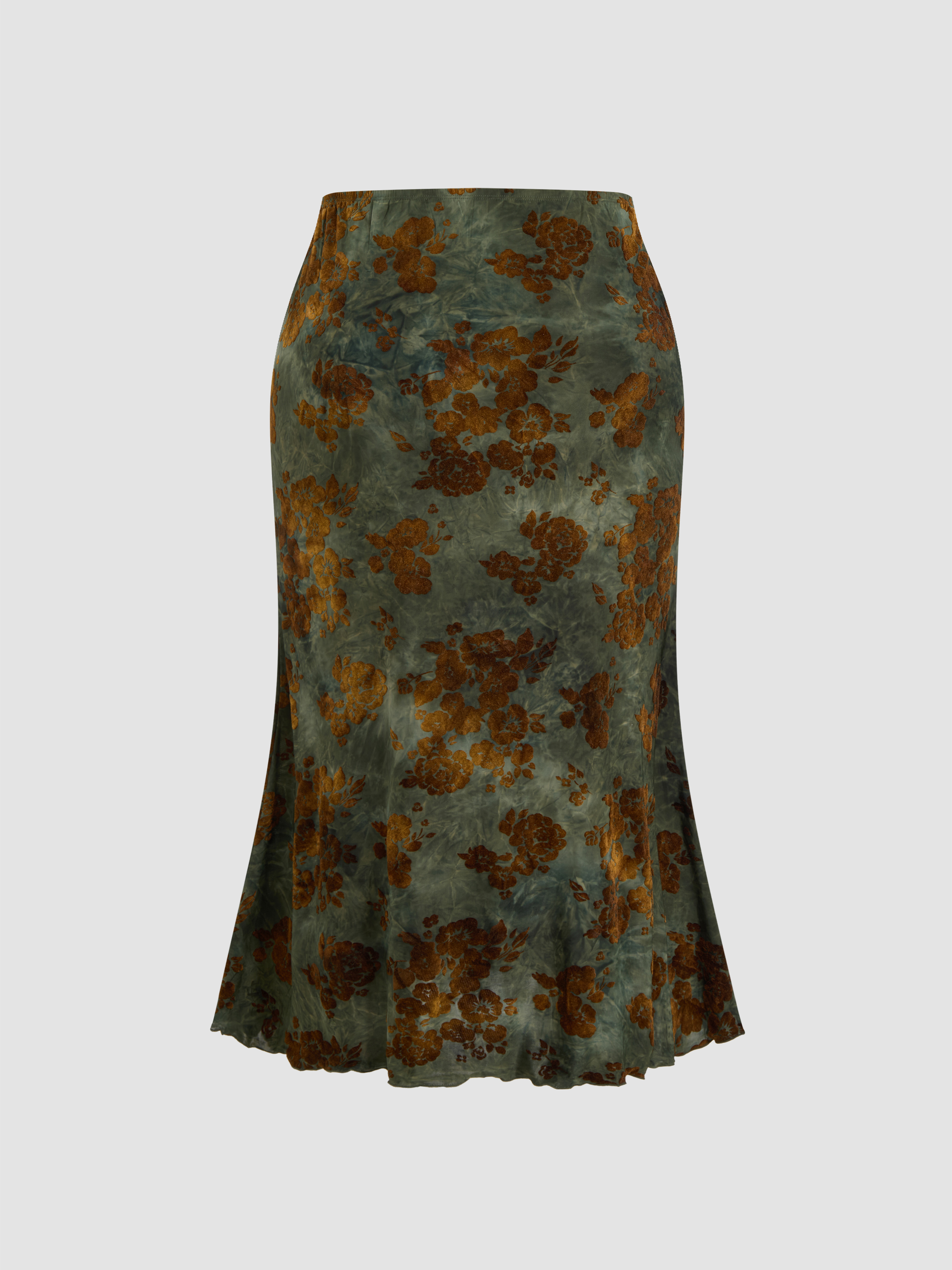 Mittelhohe, floral bedruckte und geriffelte Maxi-Skirt Kurve & Plus