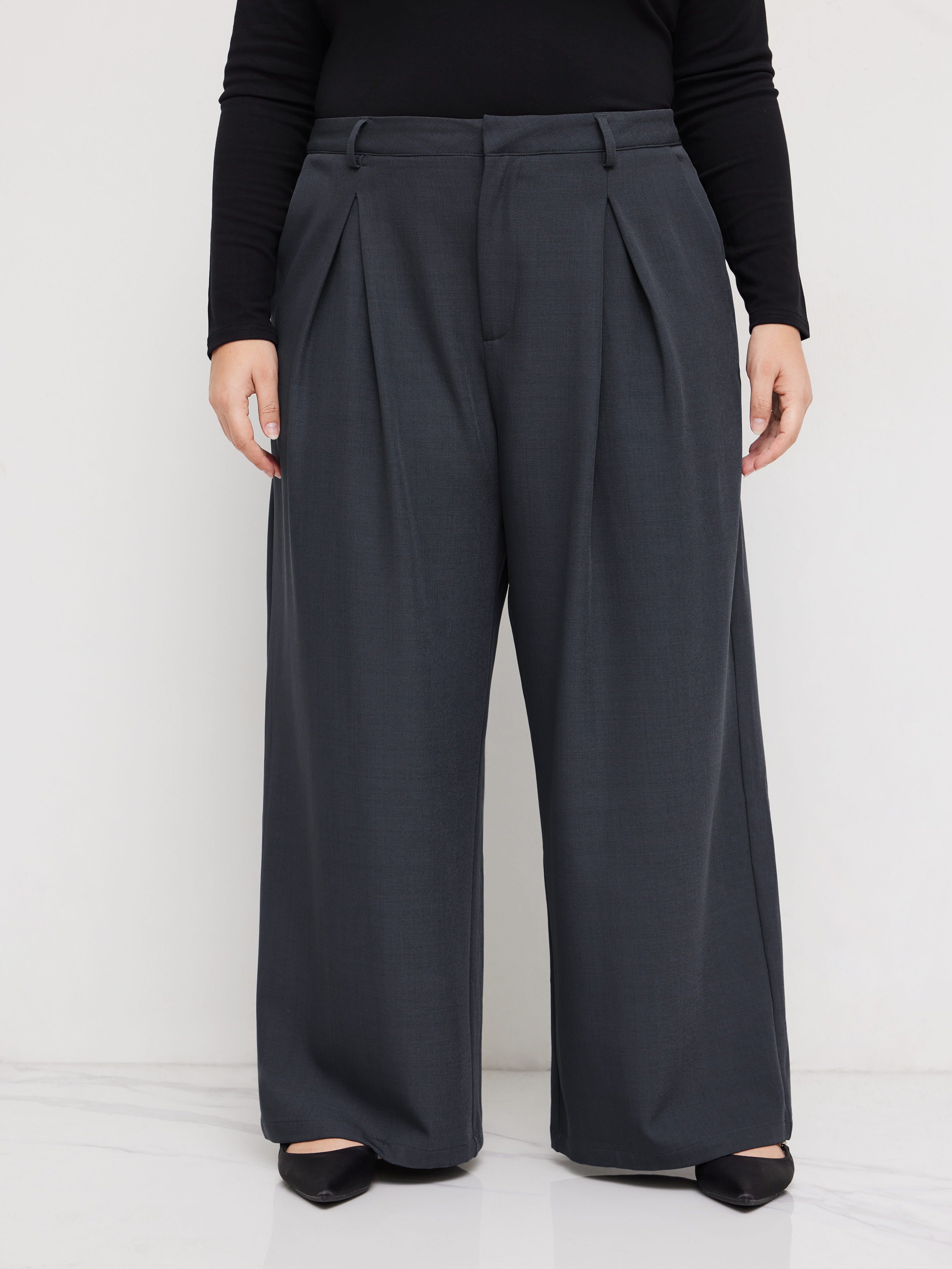 Mittlerer Bund, Taschen, Breitbeinige Hosen Kurve & Plus