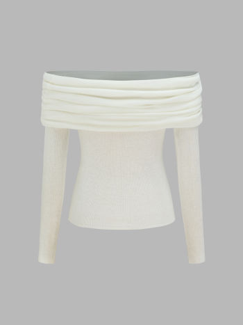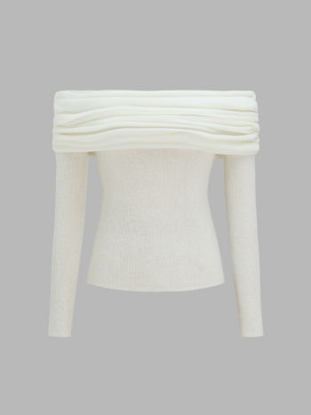 Wollmischung Off-shoulder Strumpfig Langärmliger Stricktop