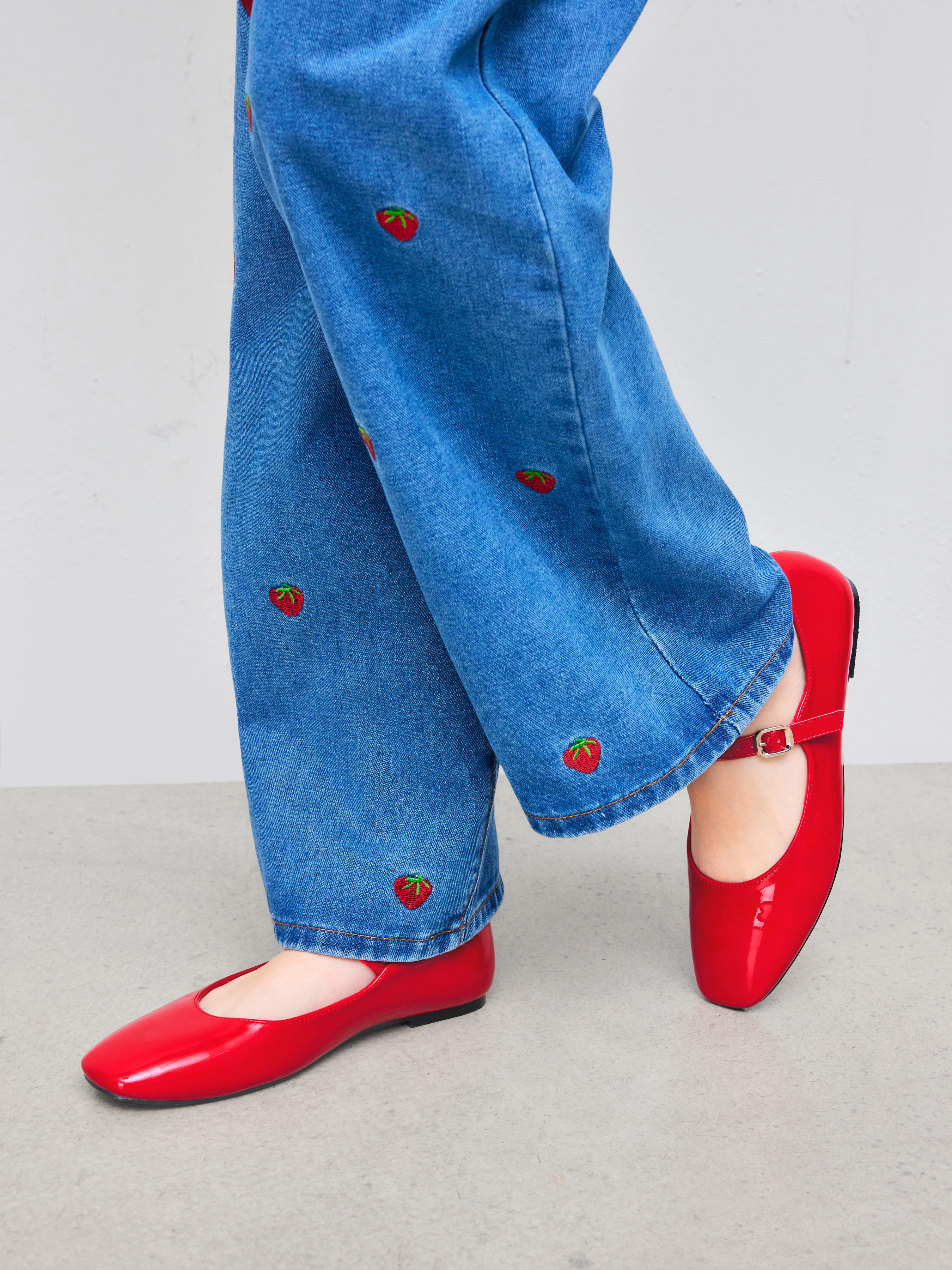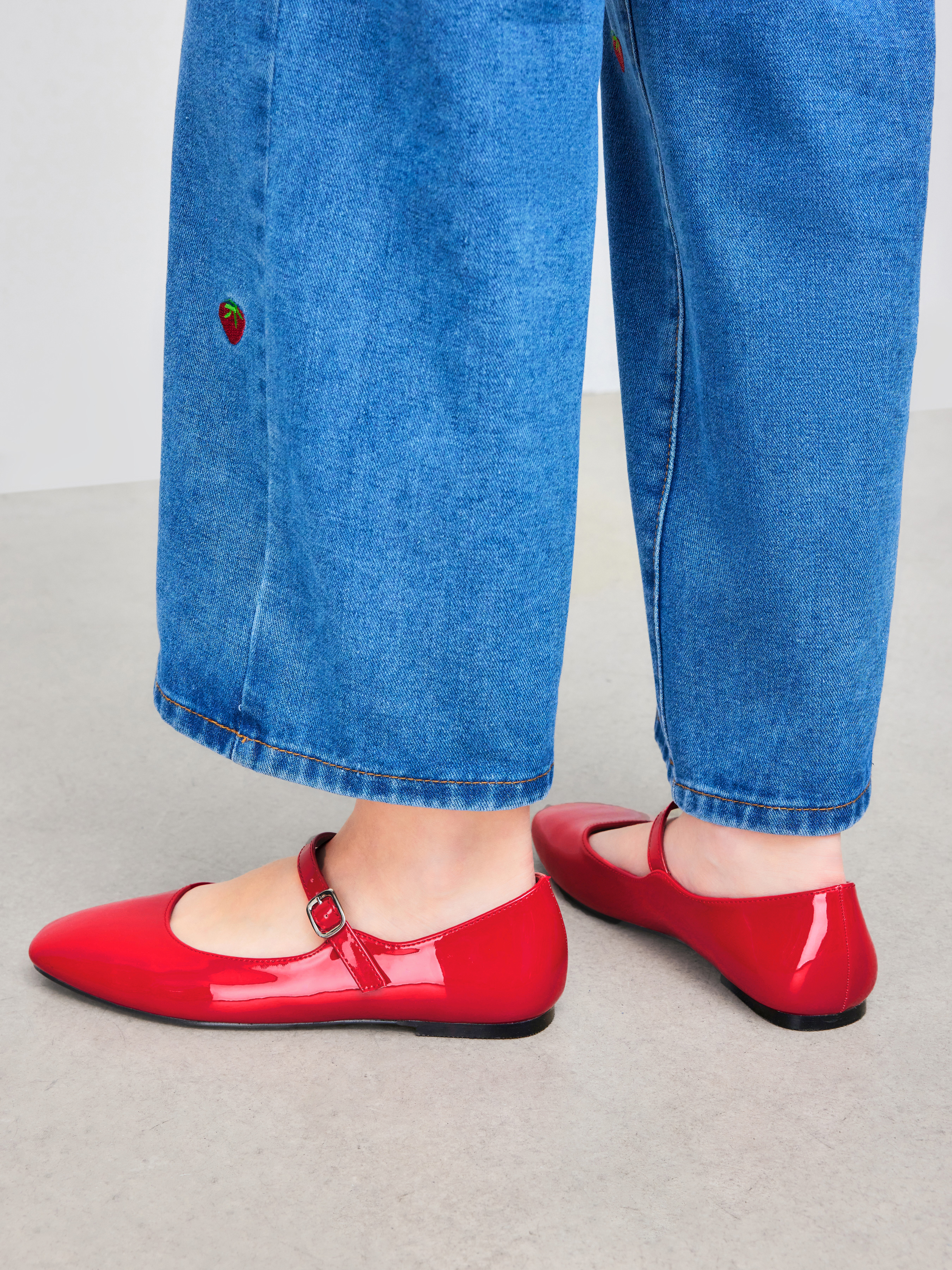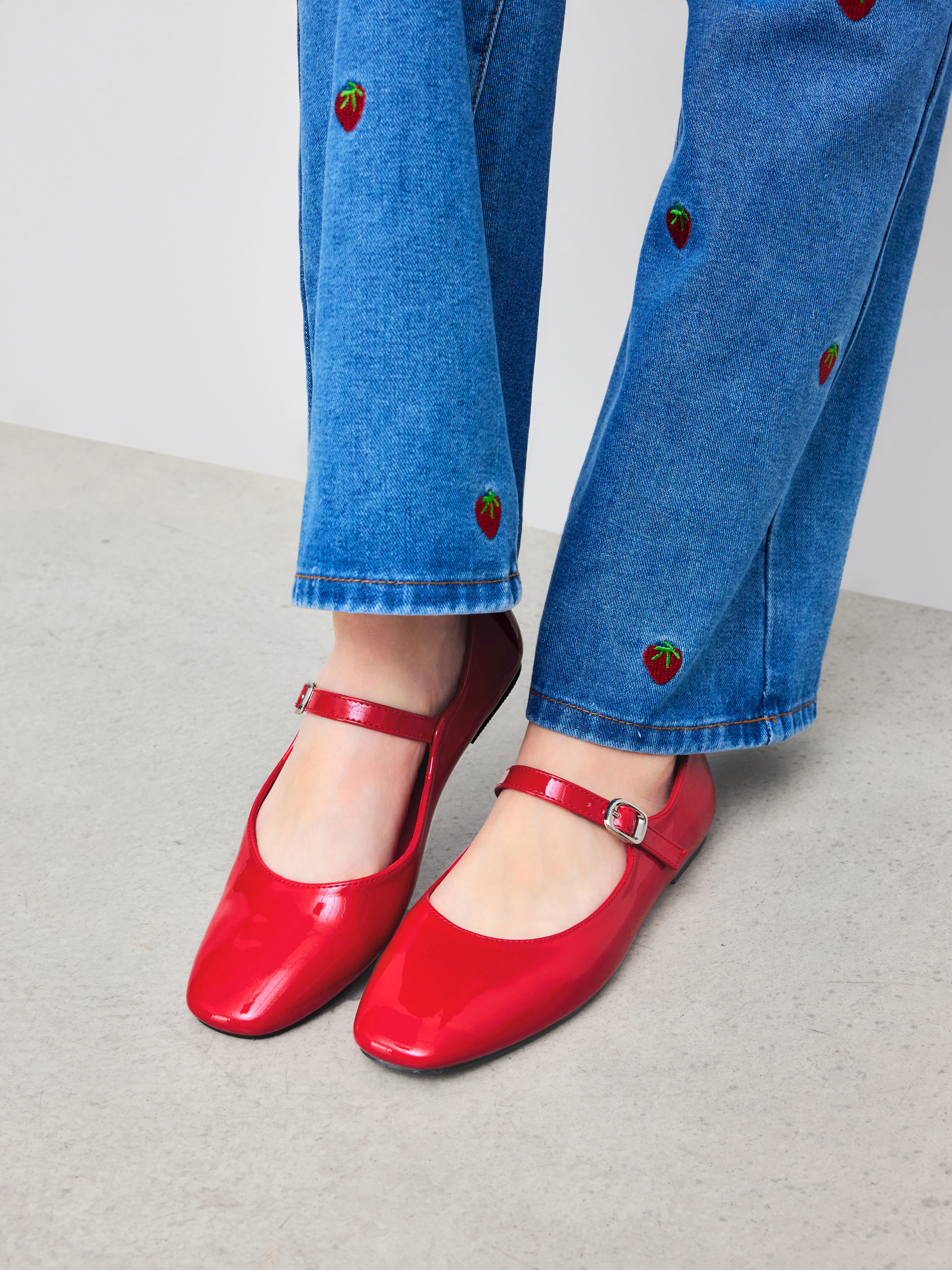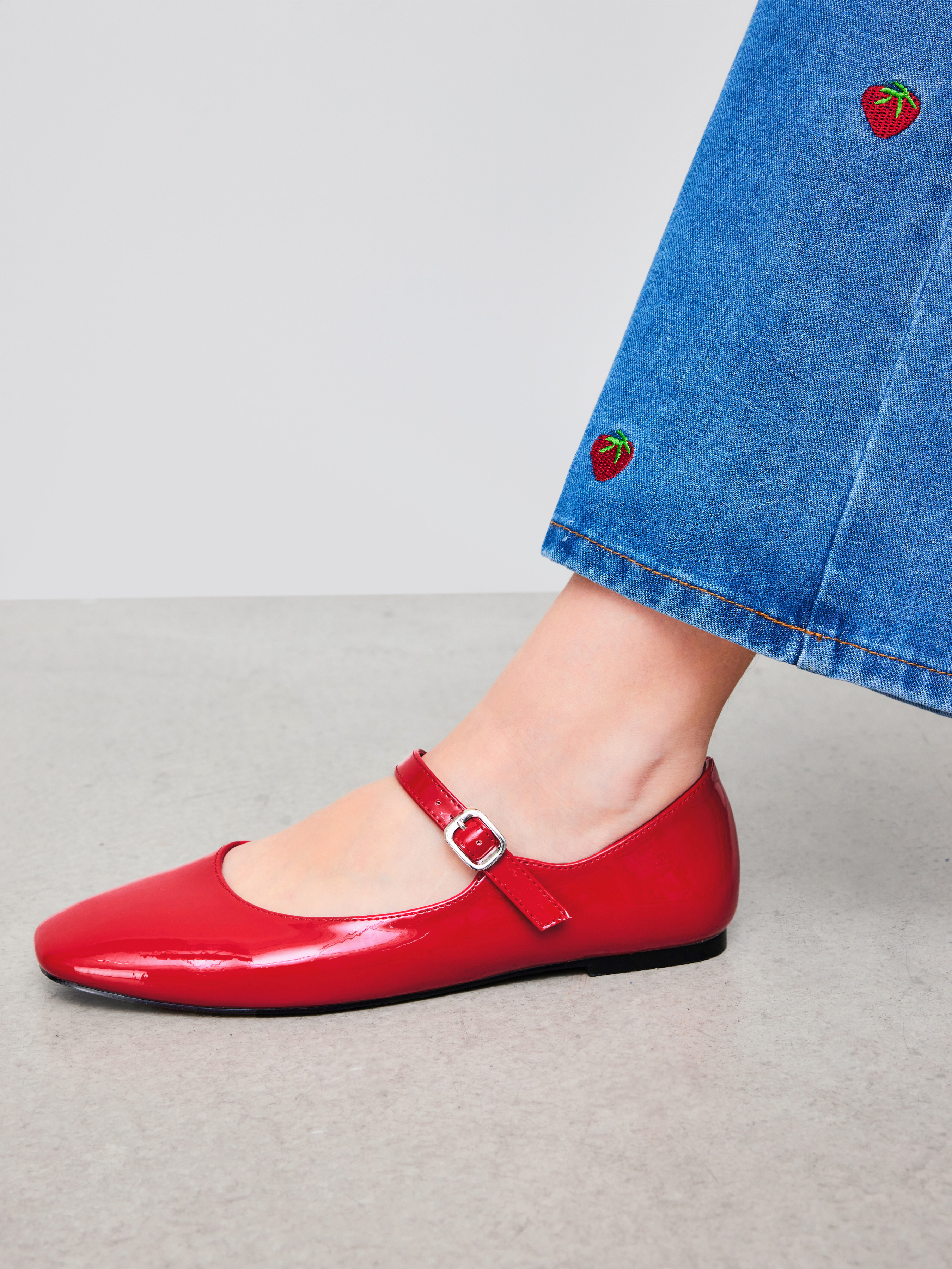 Faux-Patentleder Mary-Jane-Flatschuhe