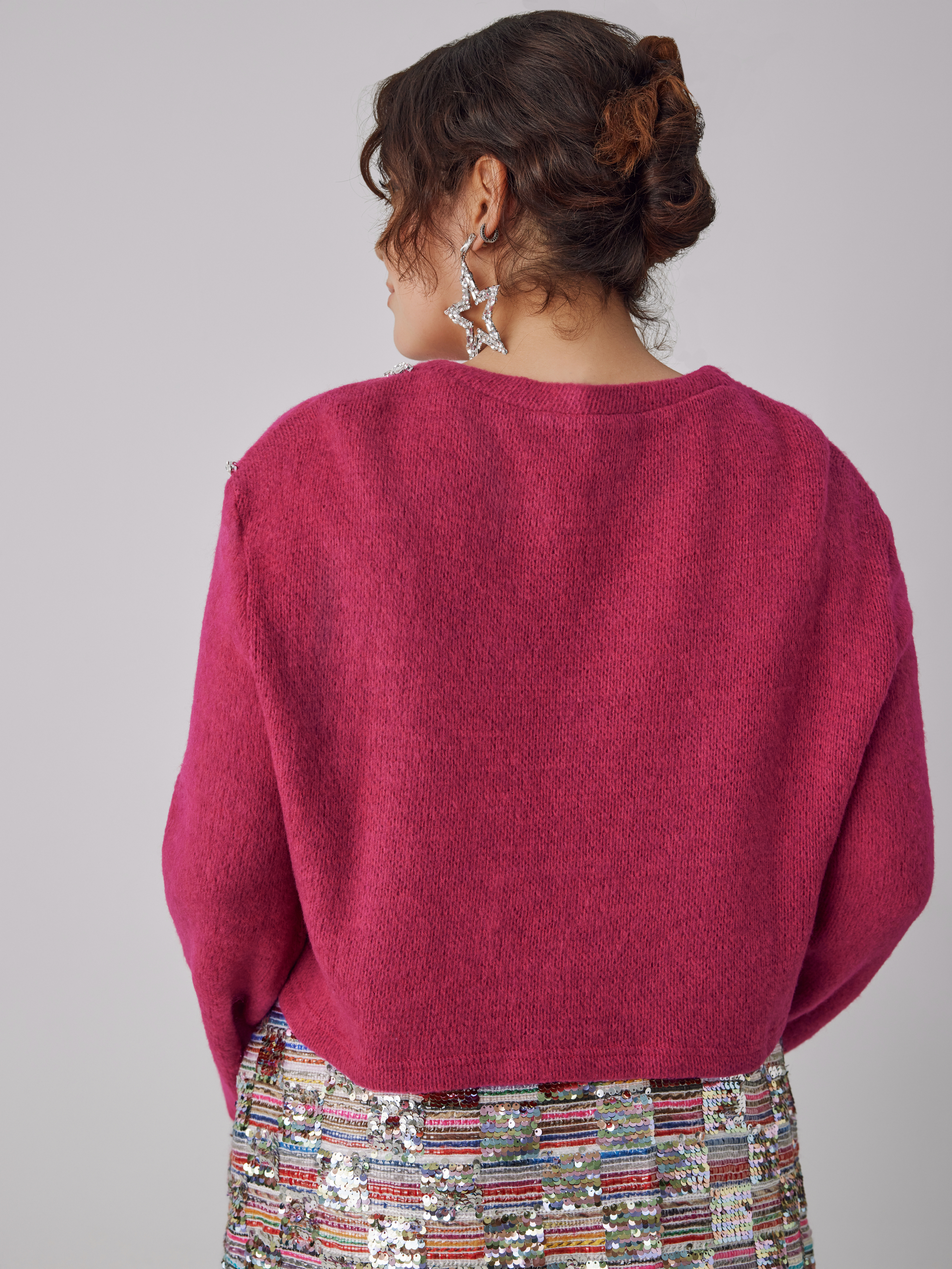Rundhals Strass Kontrastierende Bindung Crop Top Kurve & Plus