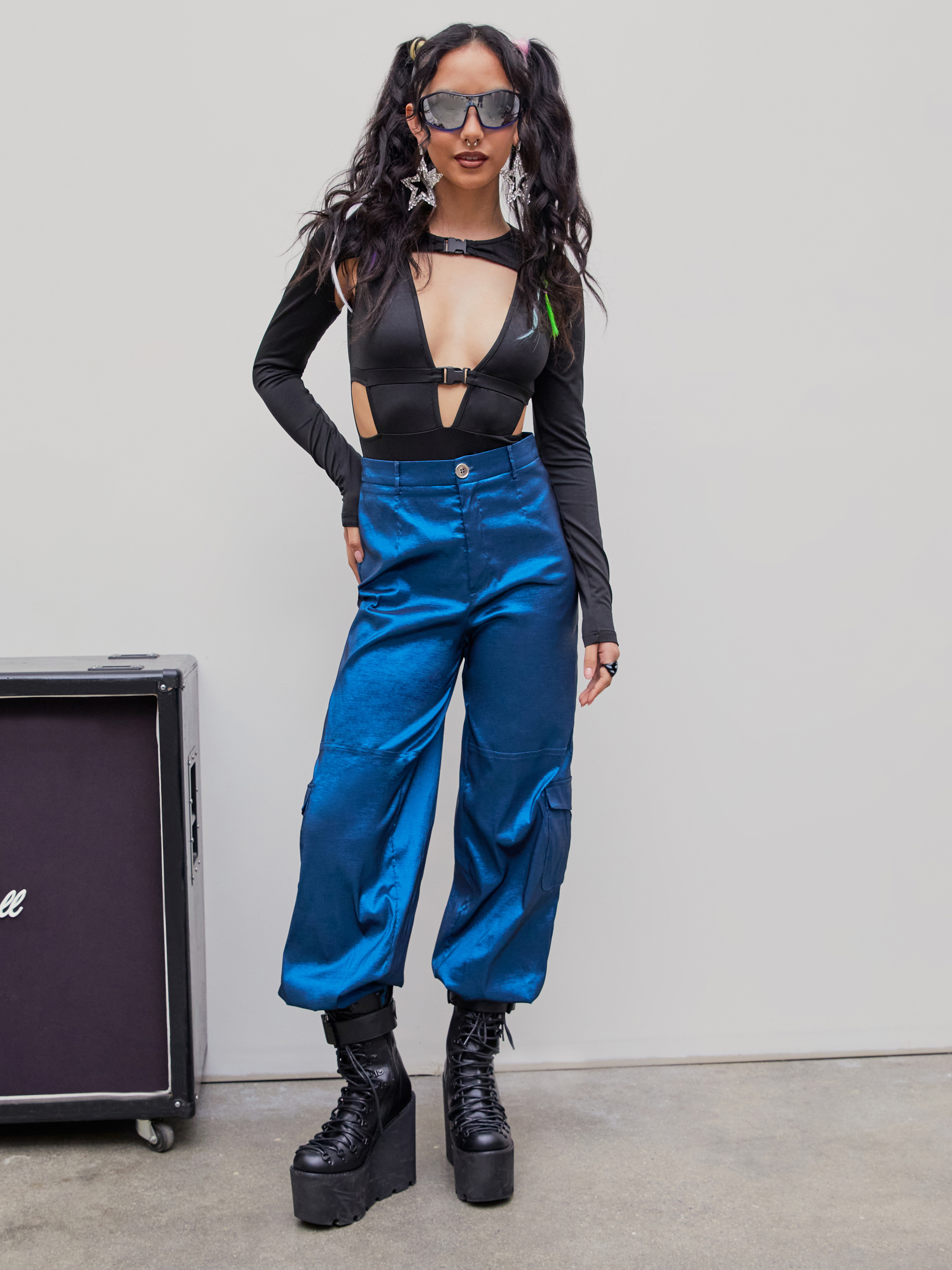 Einfarbiger langärmliger Bodysuit mit Cut Out