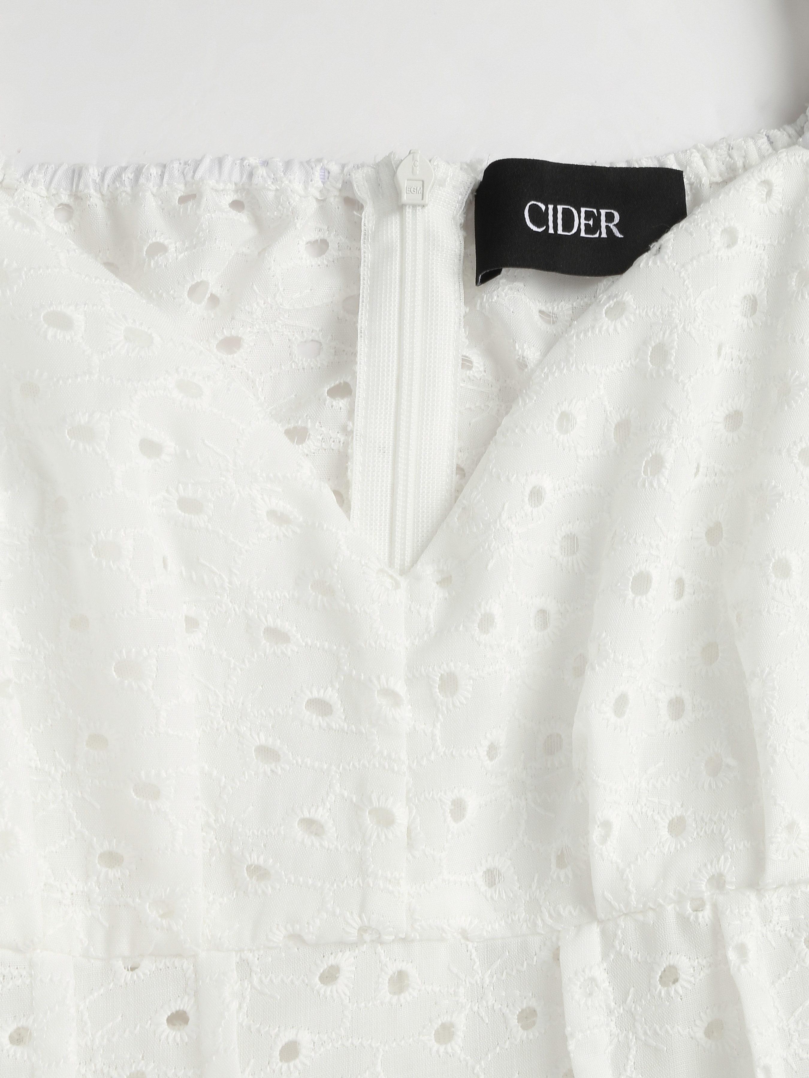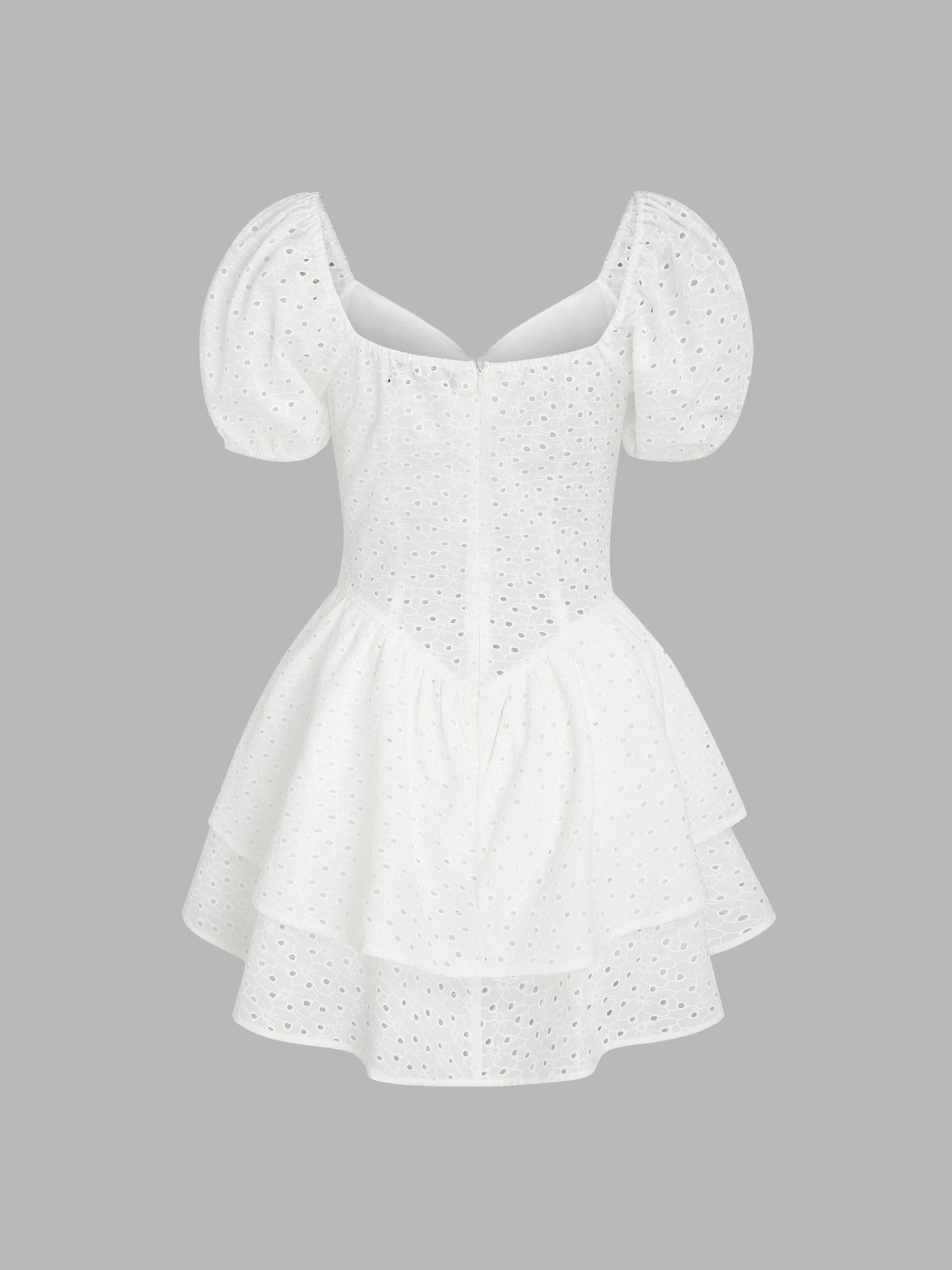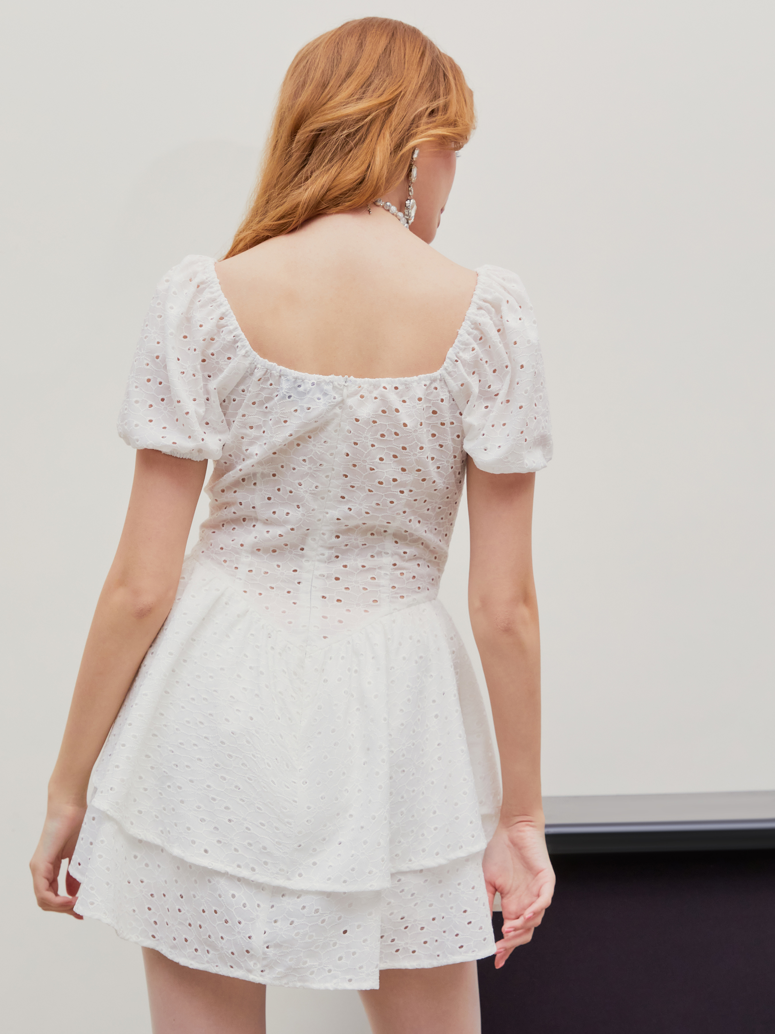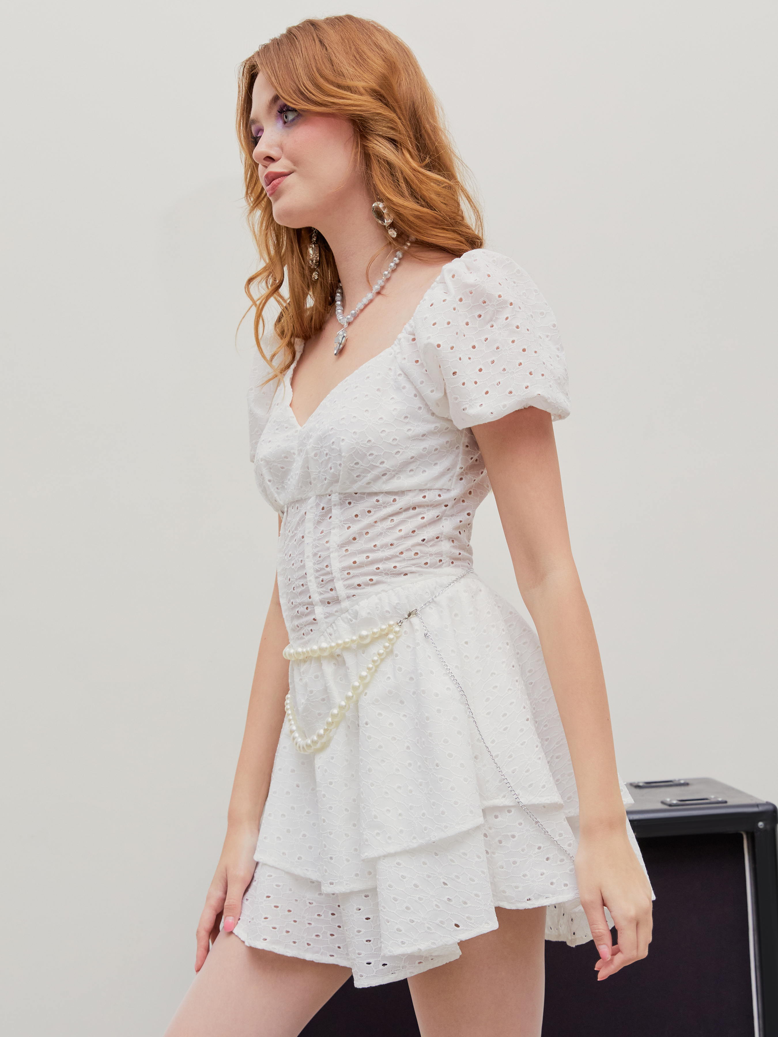 Einfarbiges Minikleid mit Rüschen und Puffärmeln