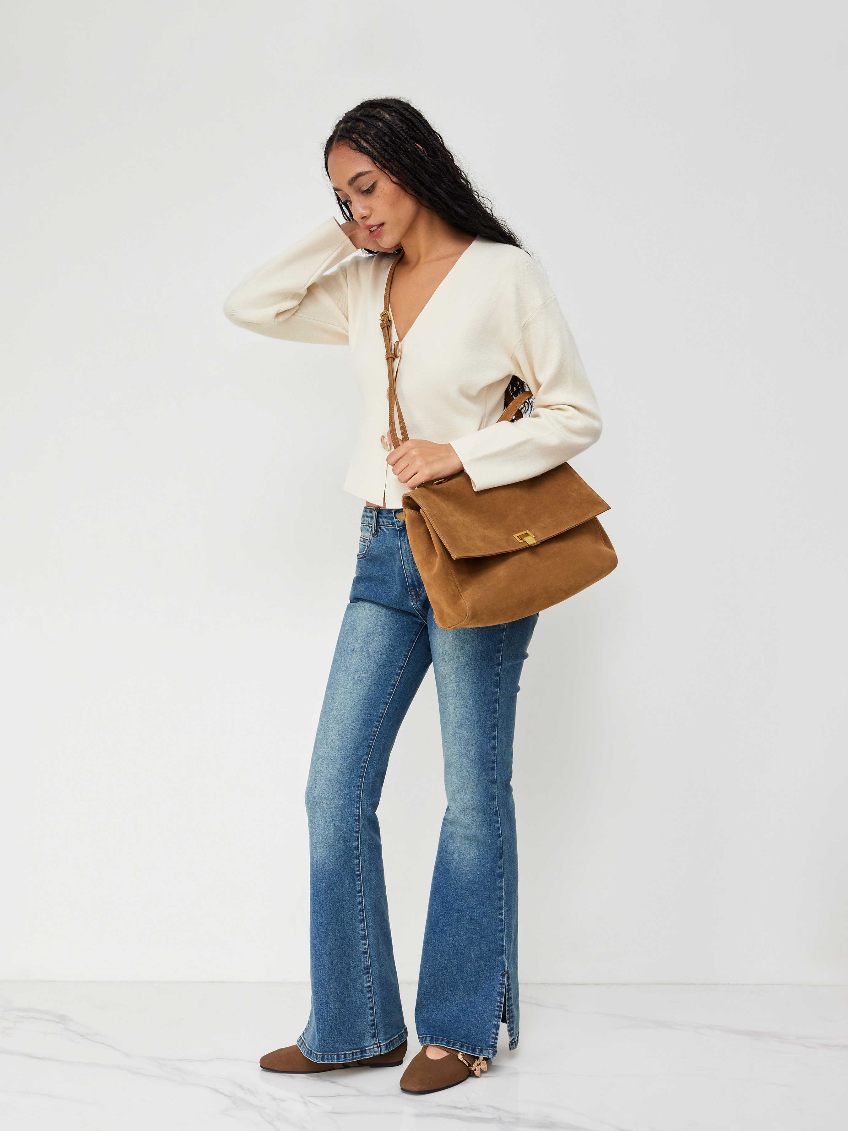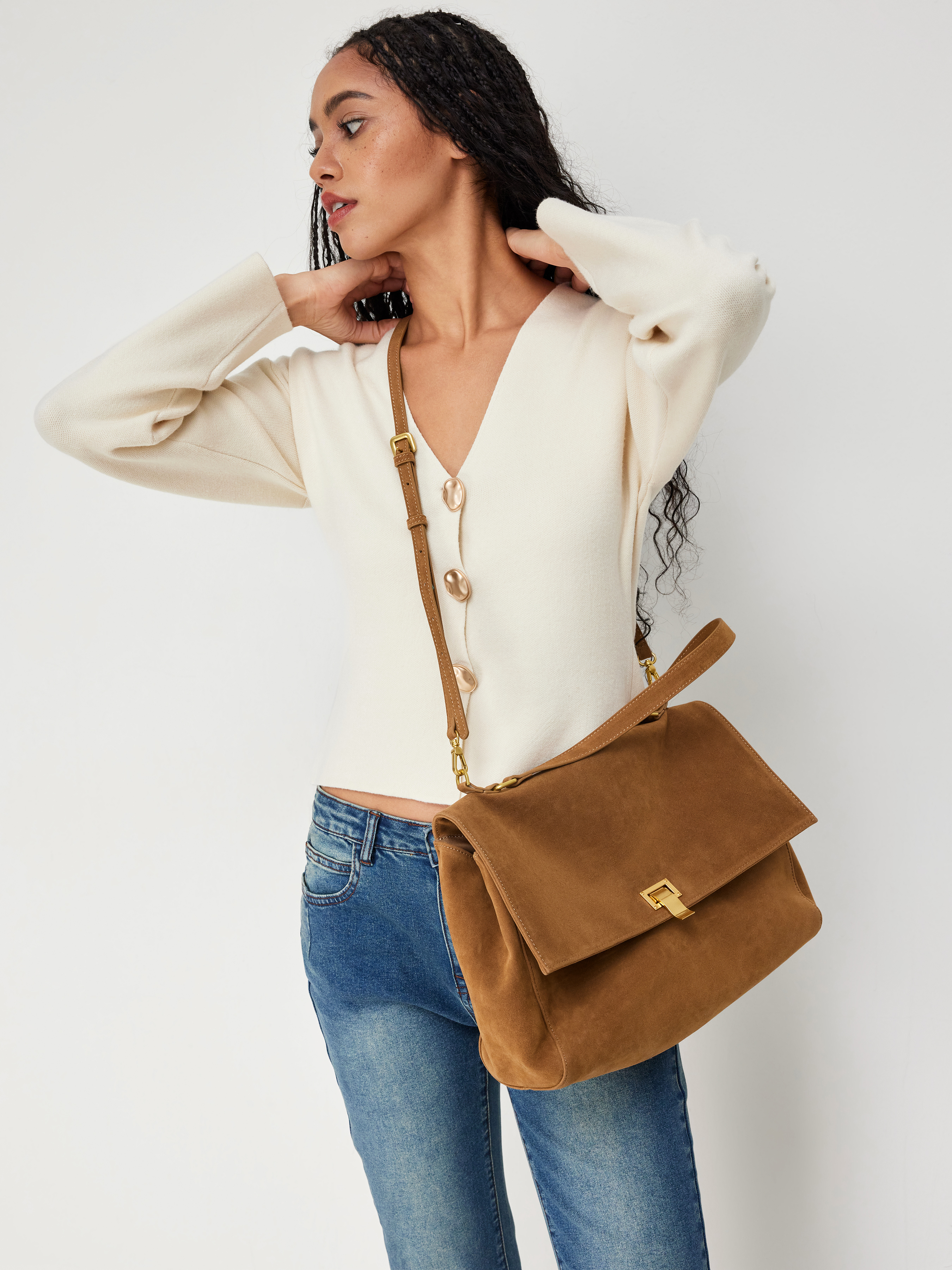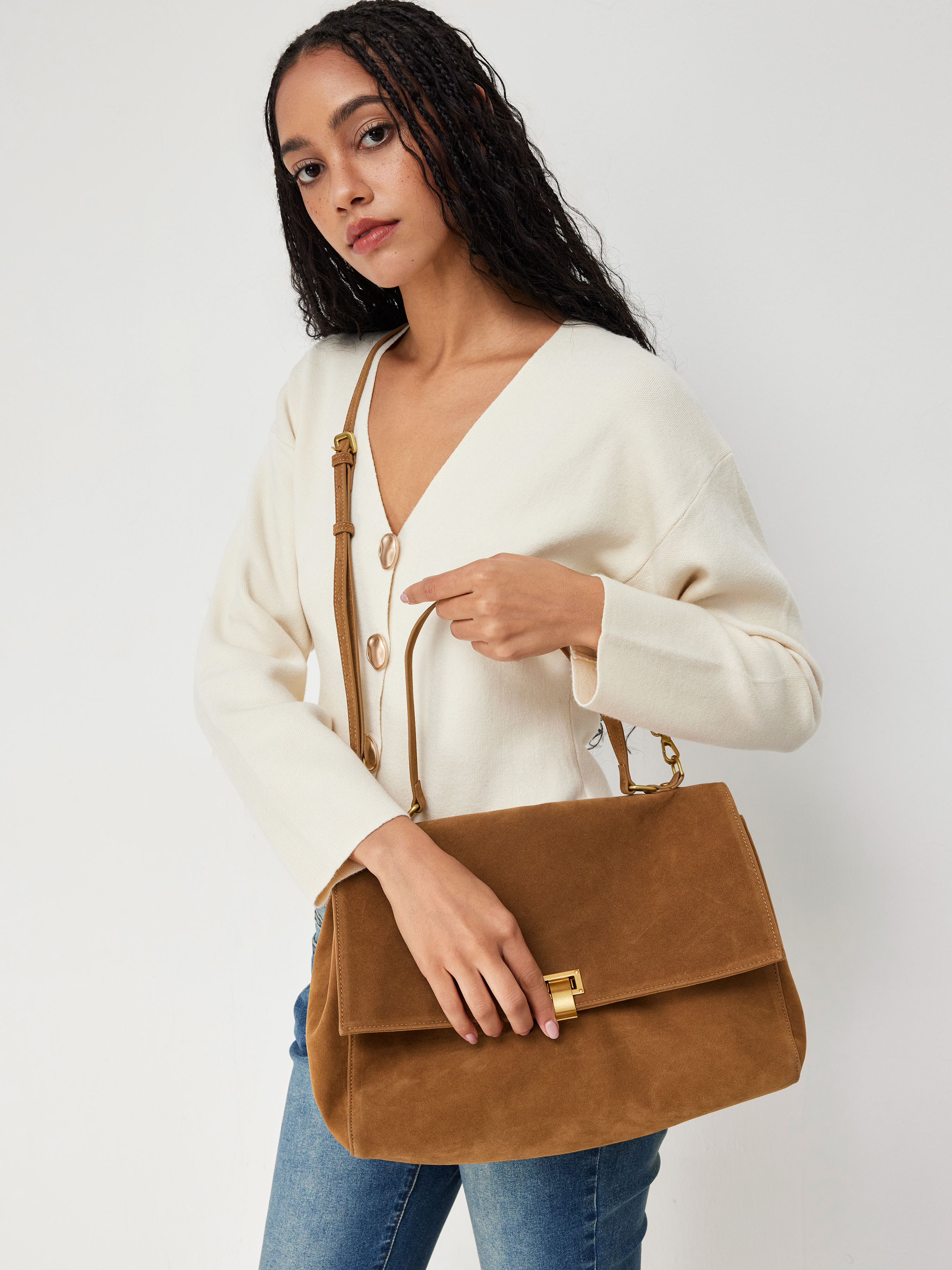 Quadratische Weiche Wildleder Umhängetasche