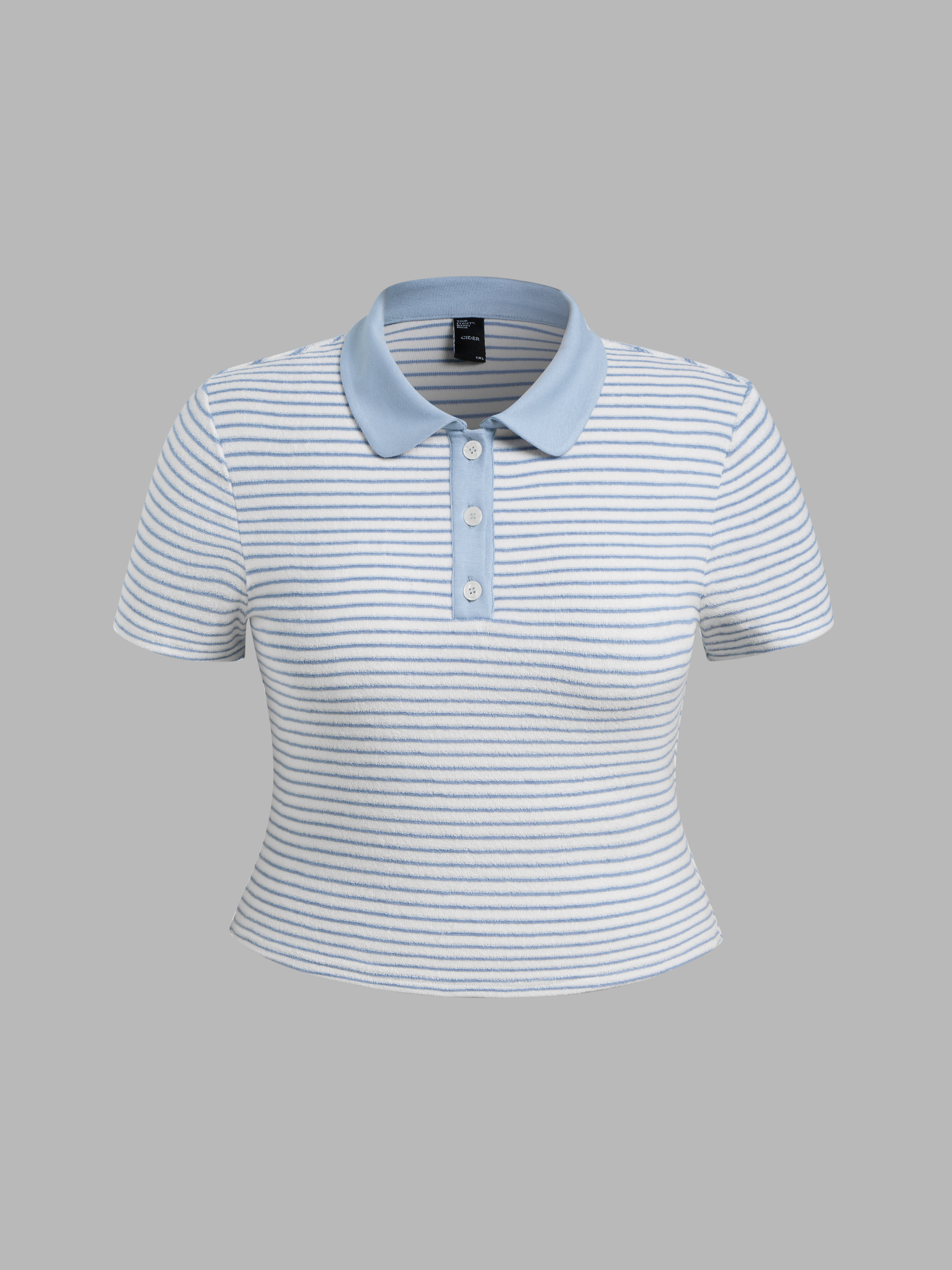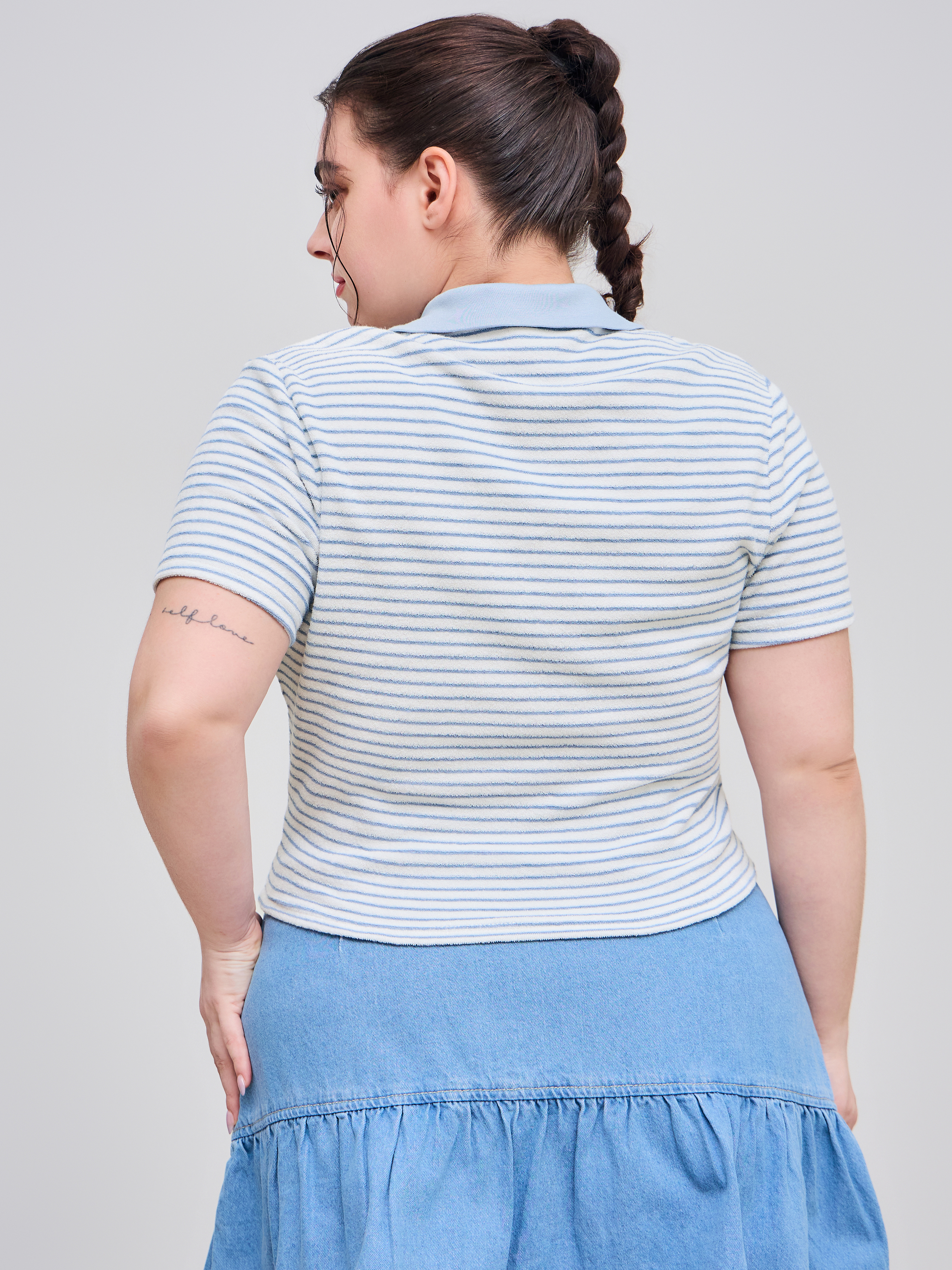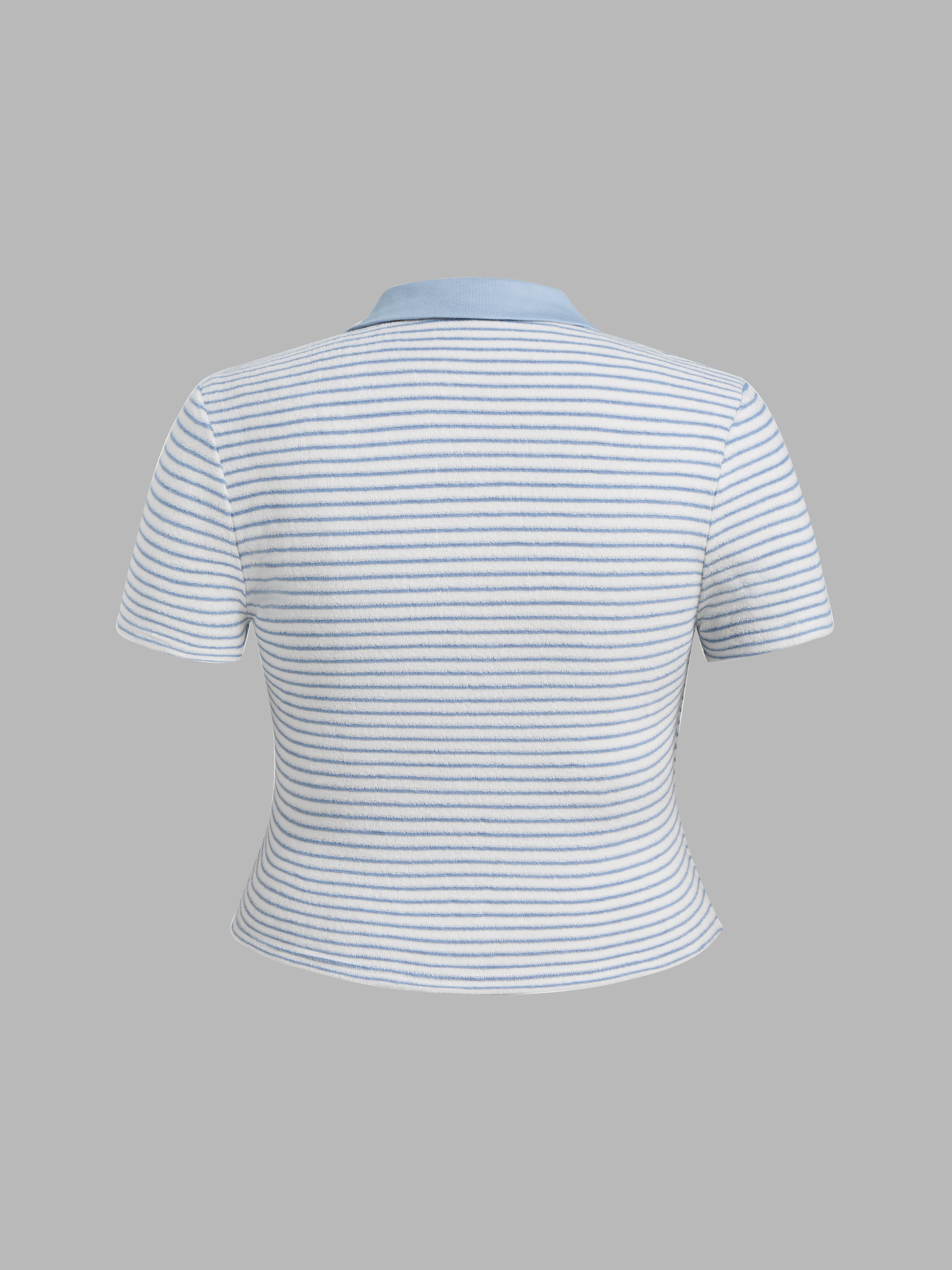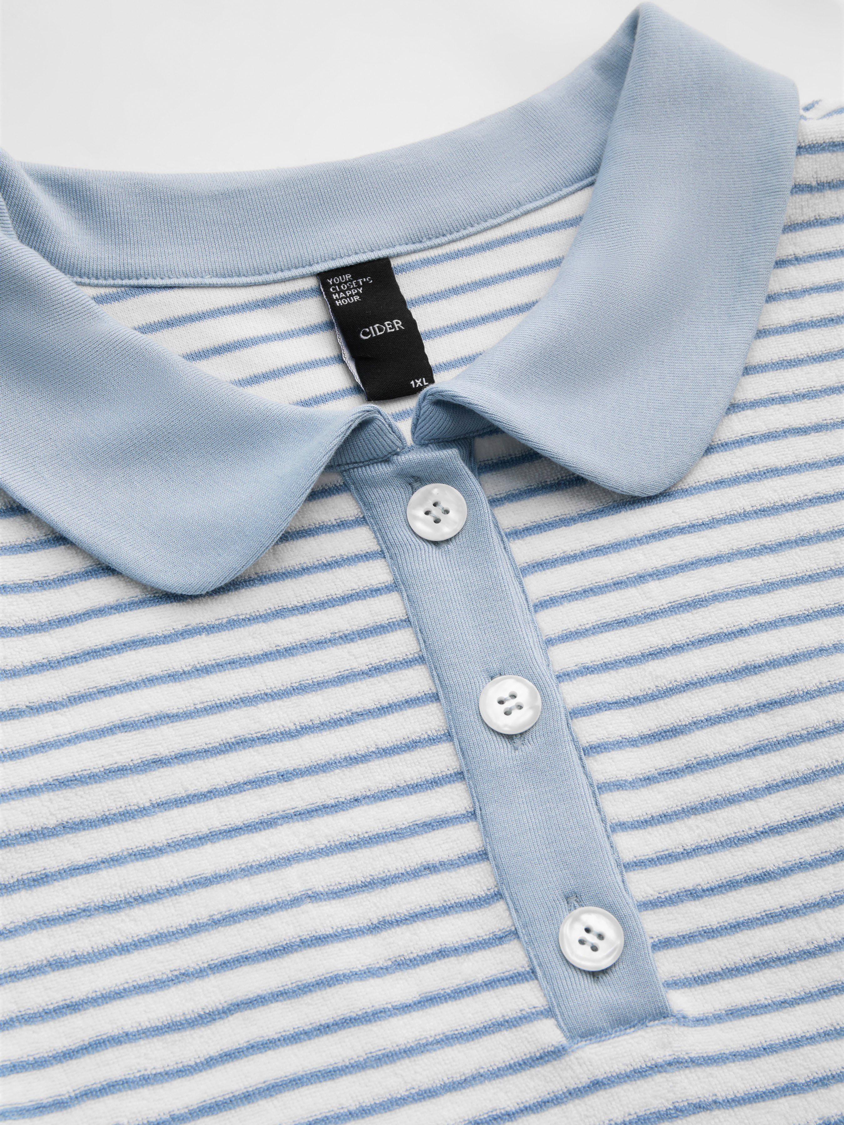 Terry-Kragen Gestreiftes Kurzarmshirt Kurve & Plus