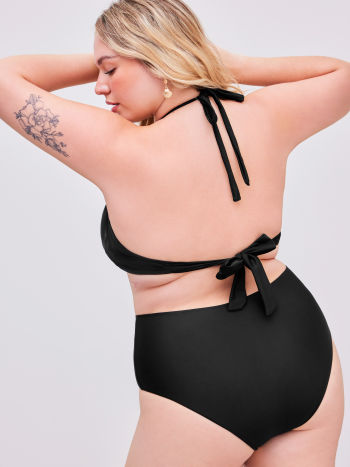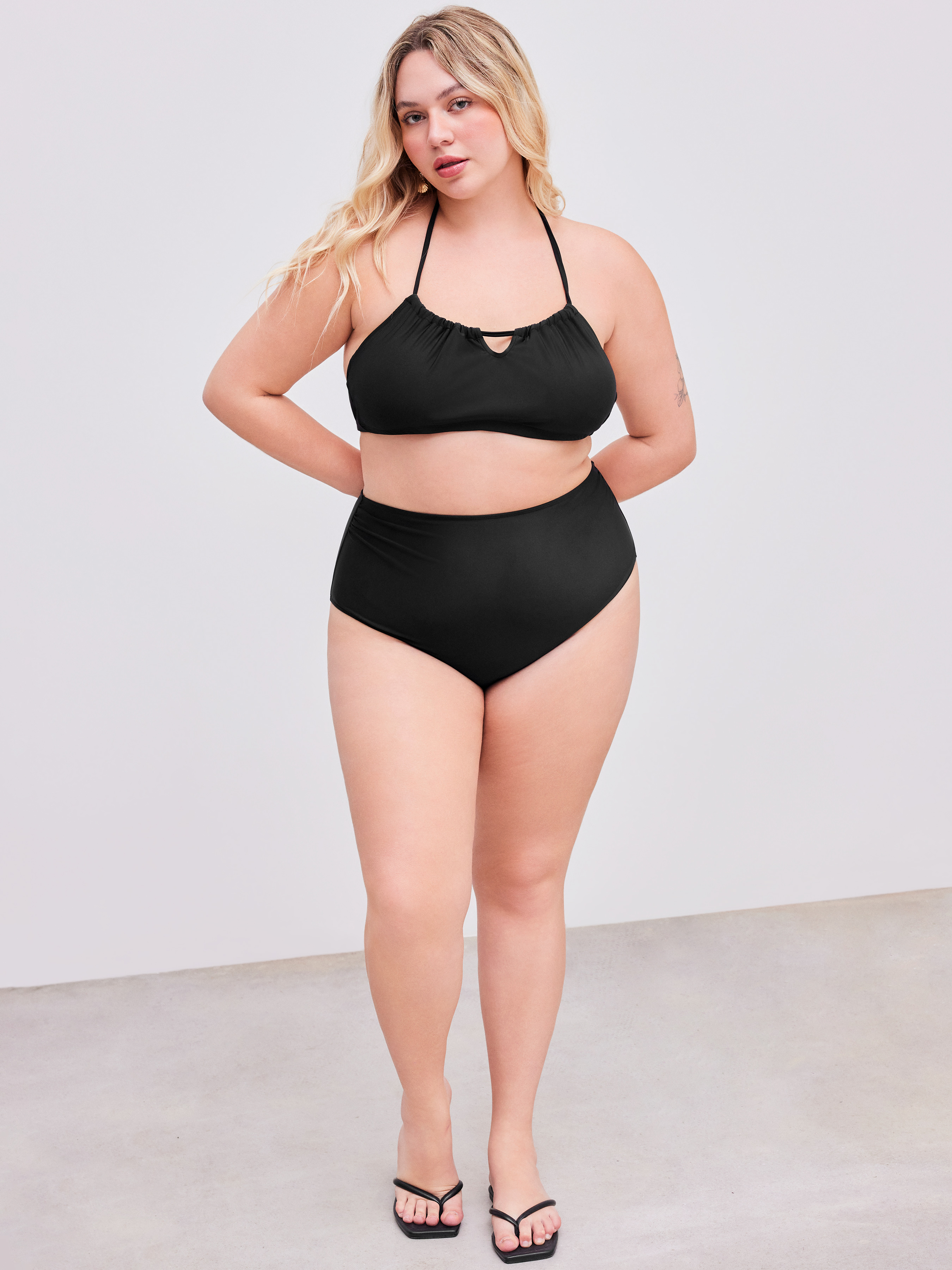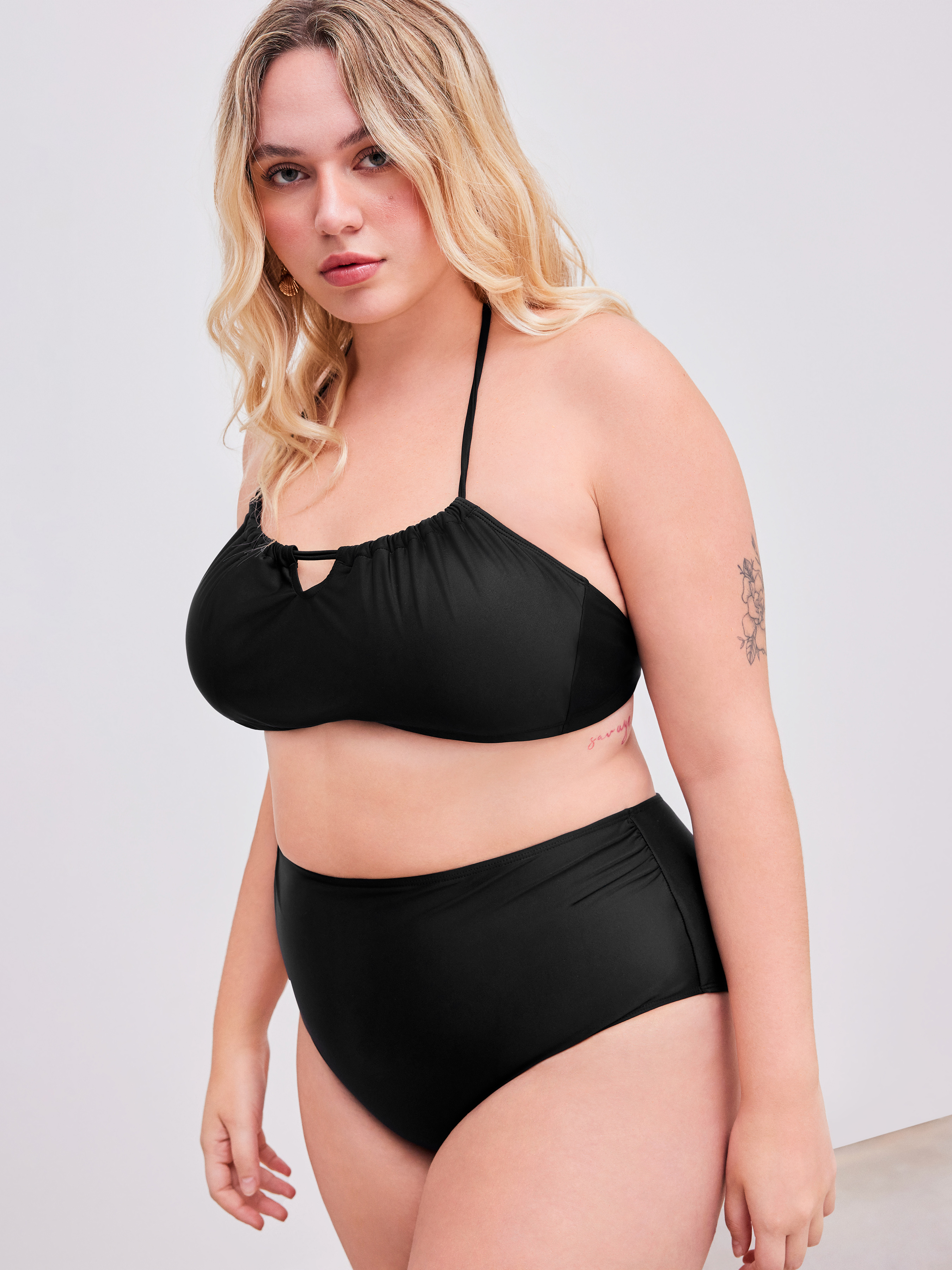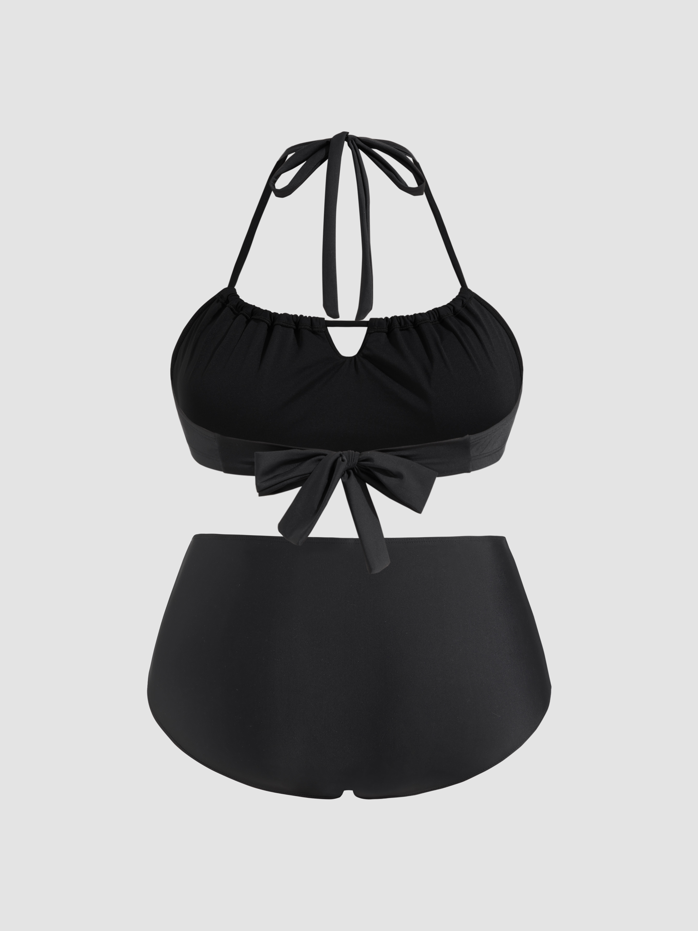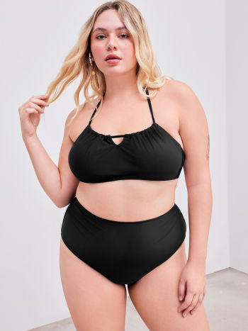 Shaping Halter Einfarbiger Geraffter Armband Bikini Badeanzug mit Vollabdeckung Kurve & Plus