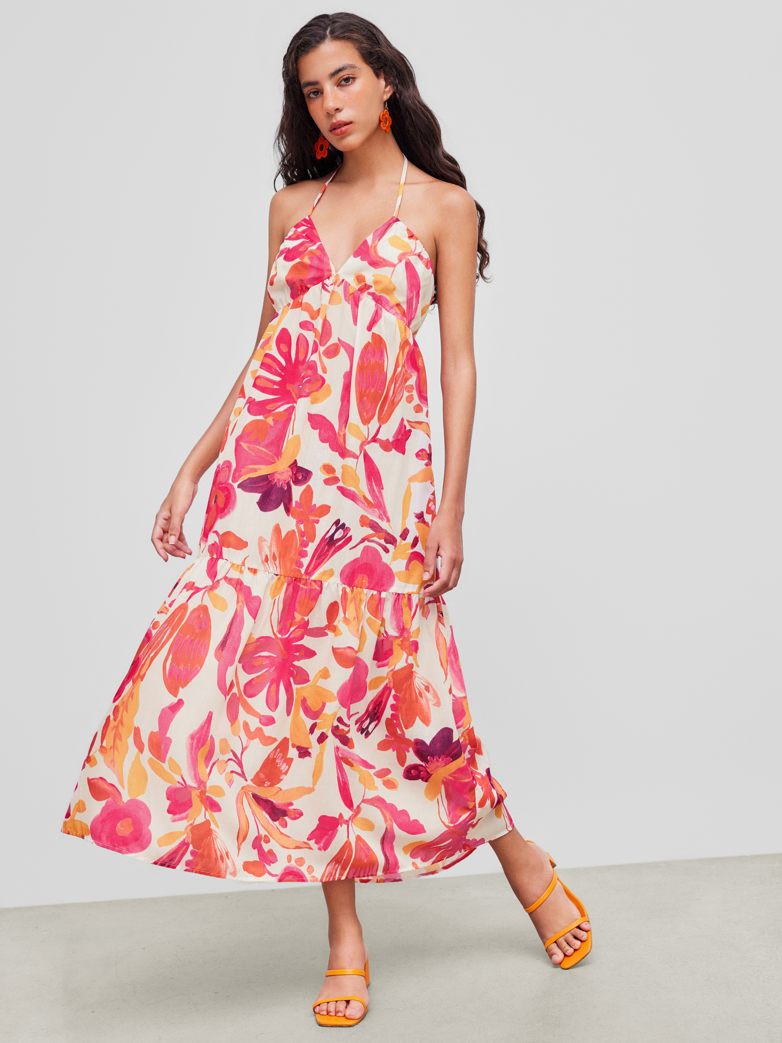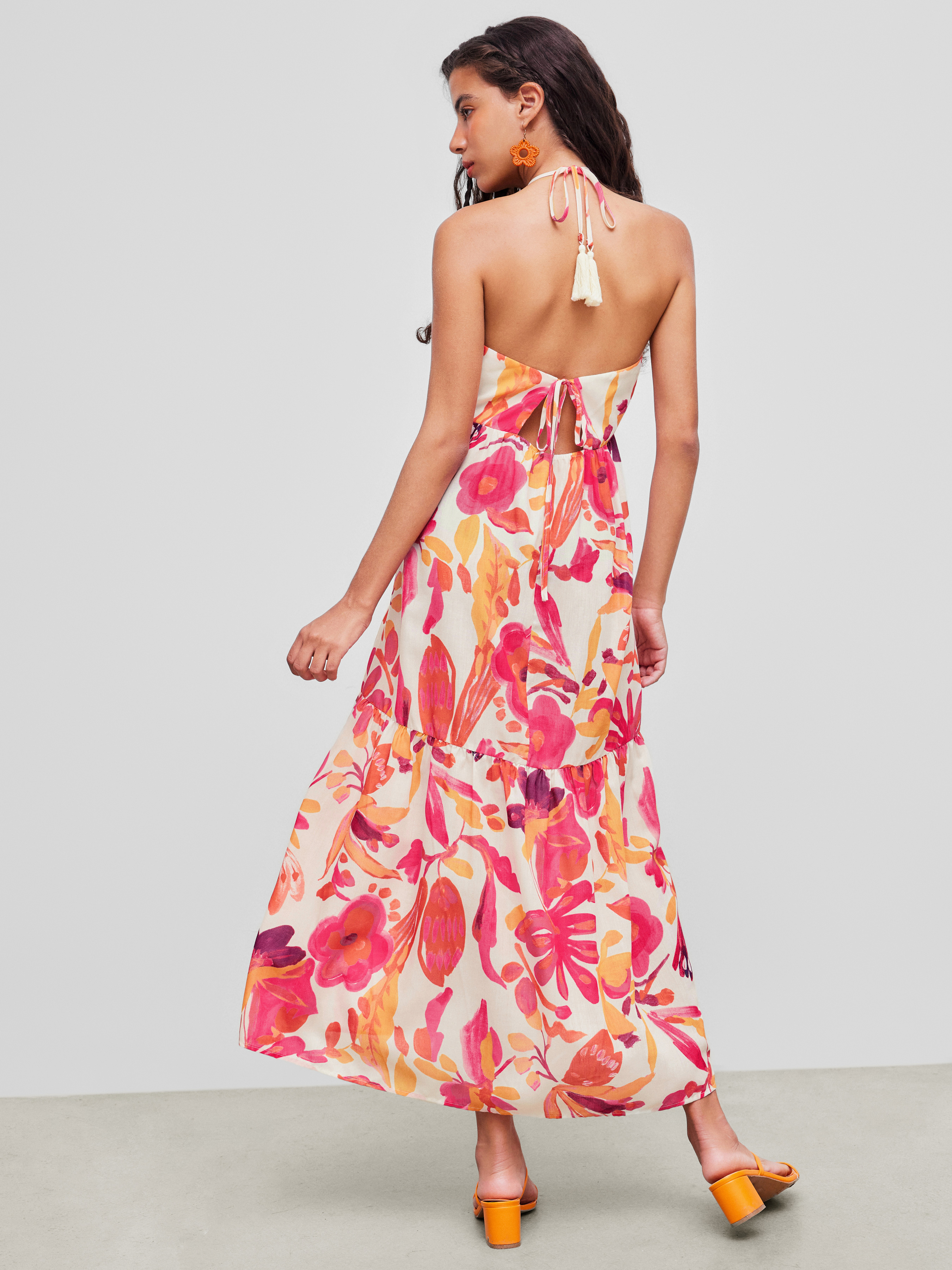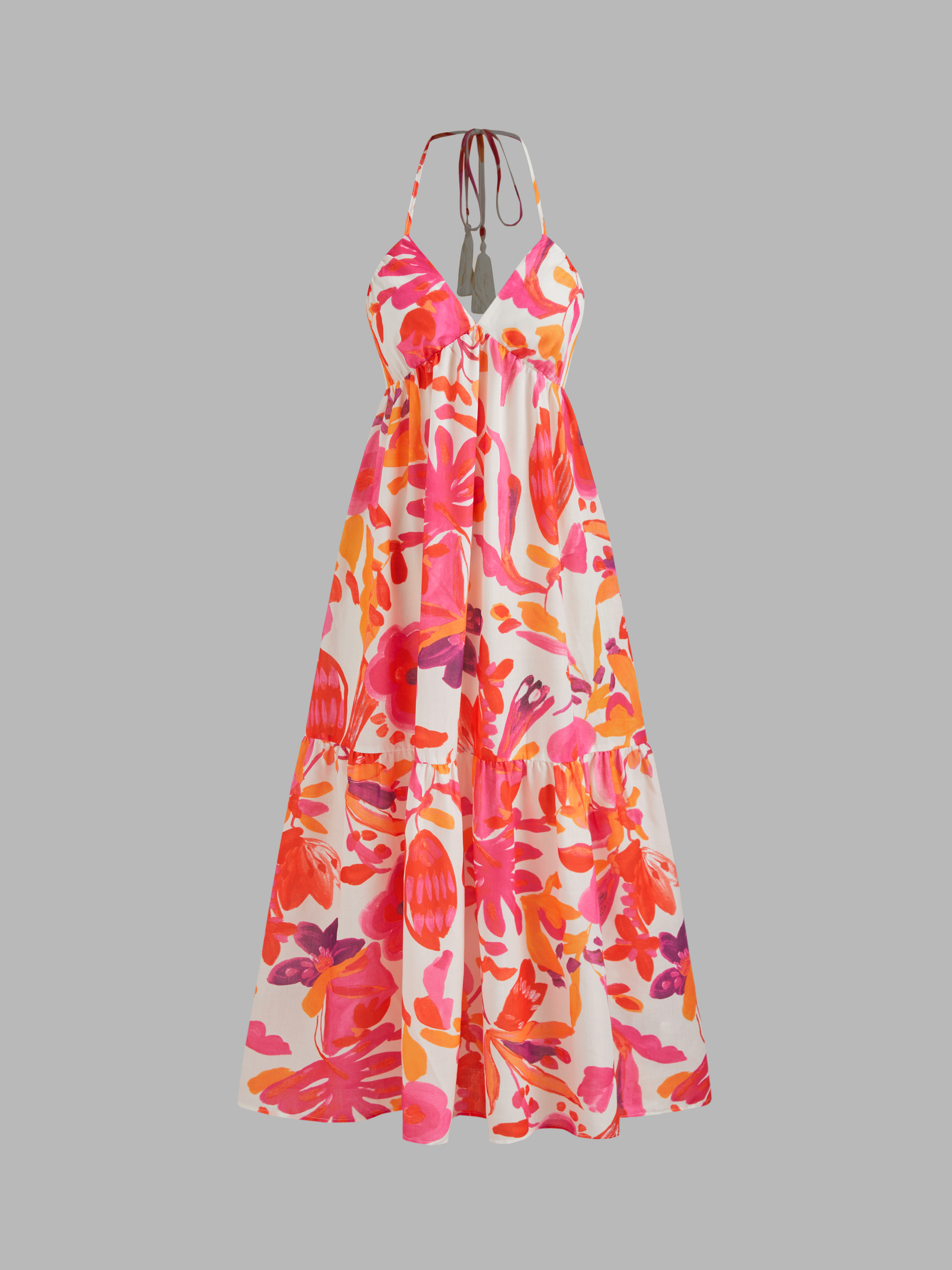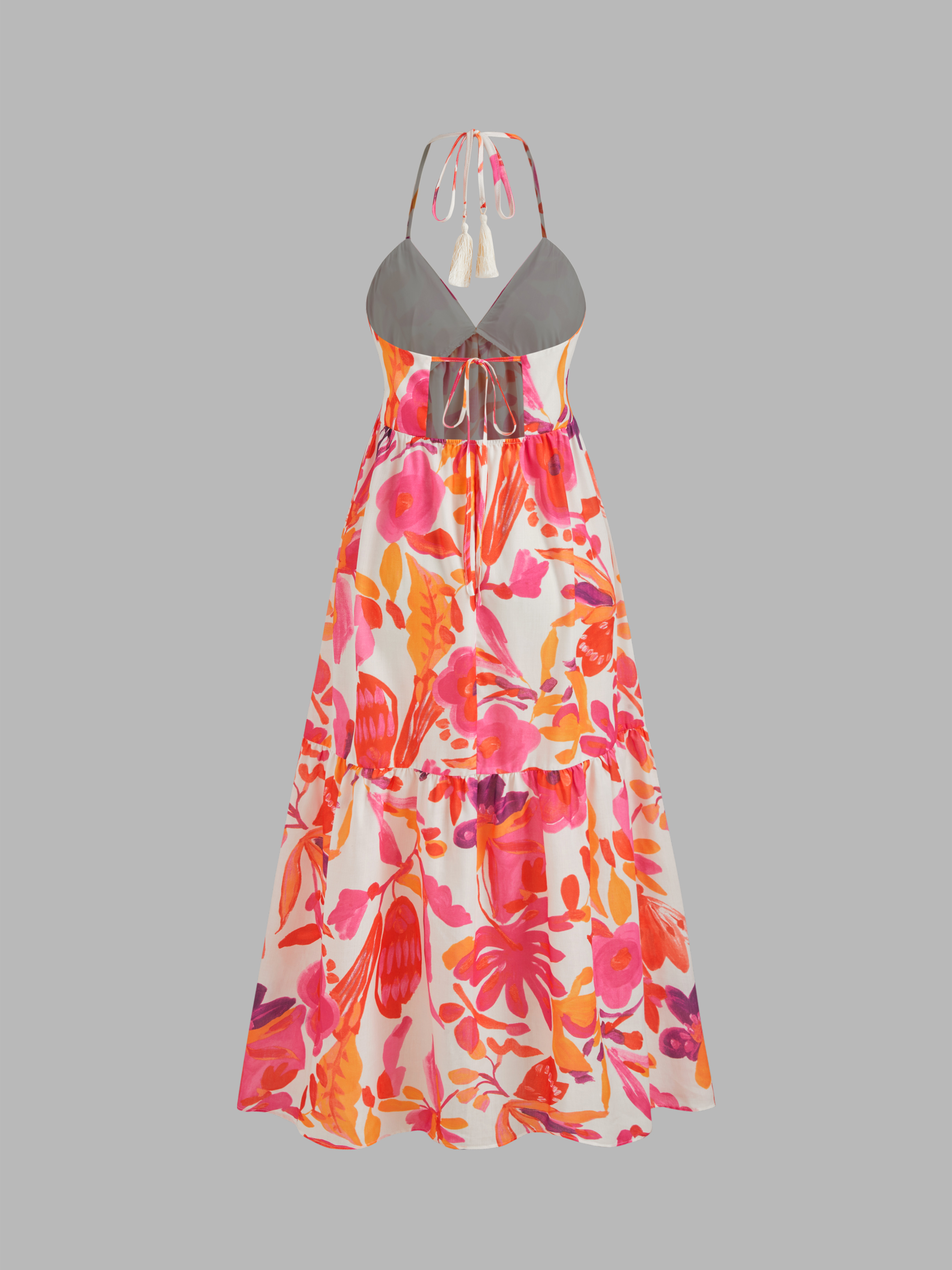 V-Ausschnitt Abstraktes Tassel Geknotetes Halter Maxikleid