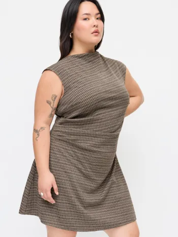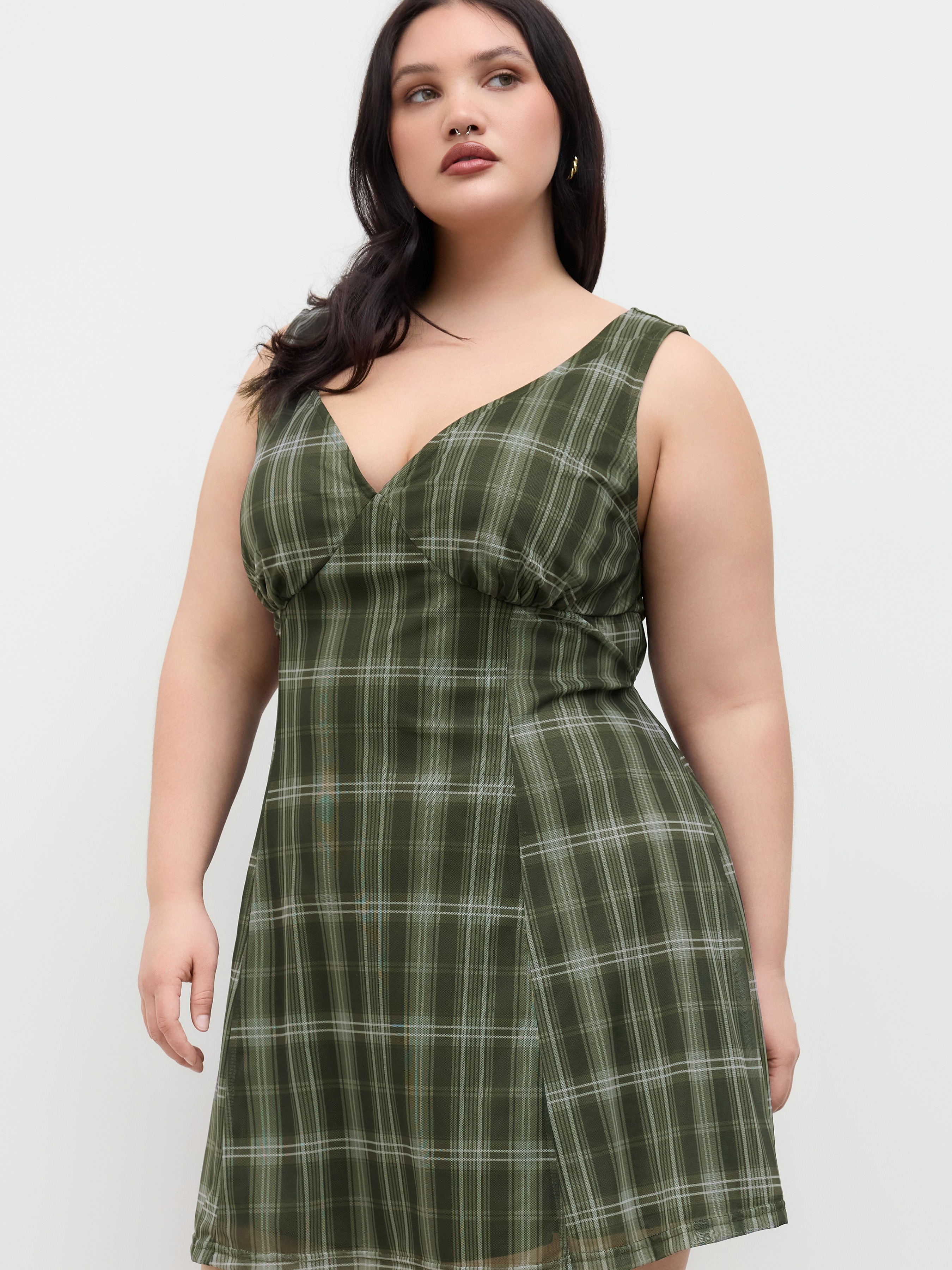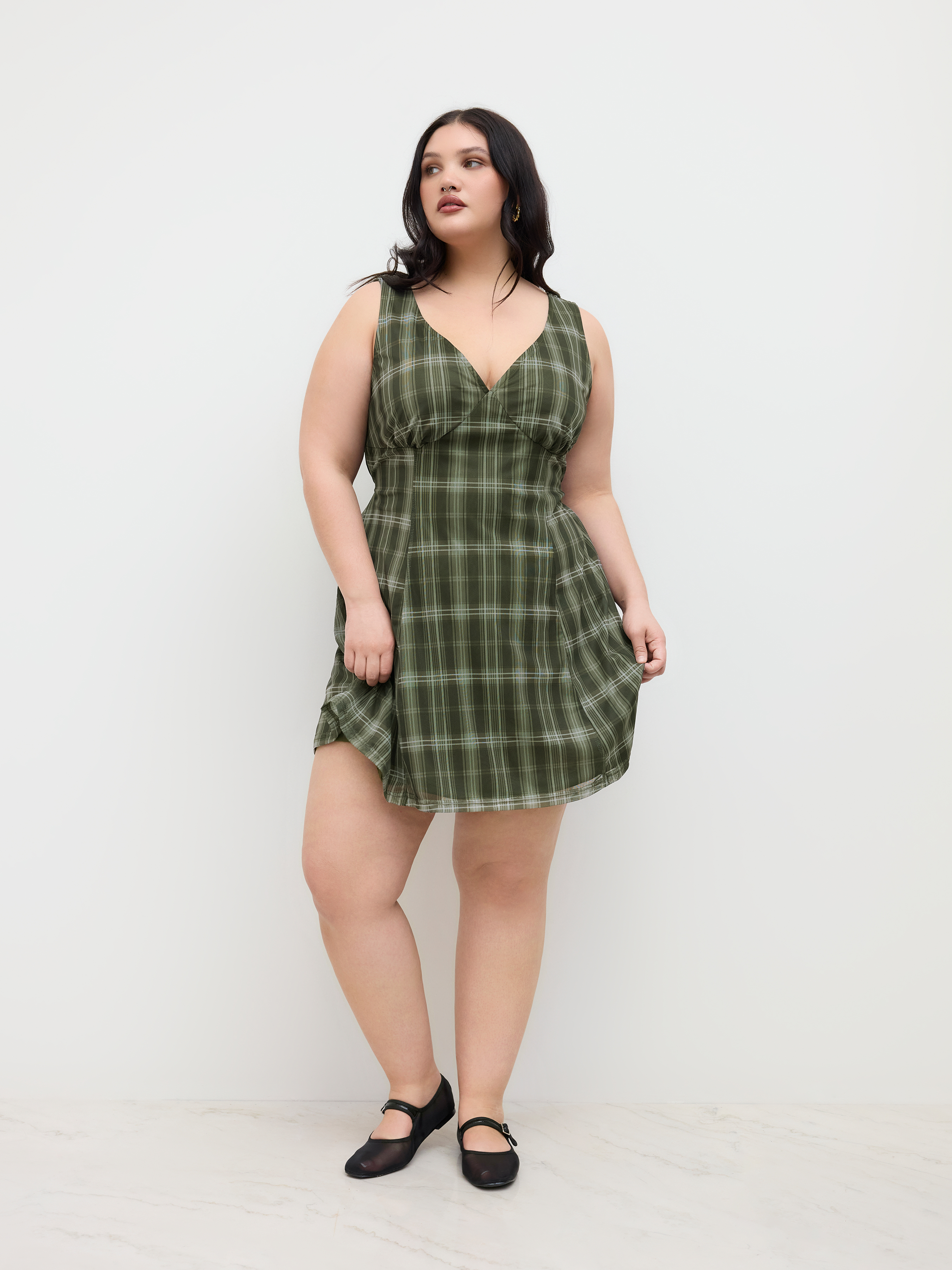 V-Ausschnitt Karo Mini Kleid Kurve & Plus