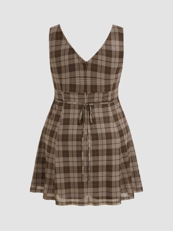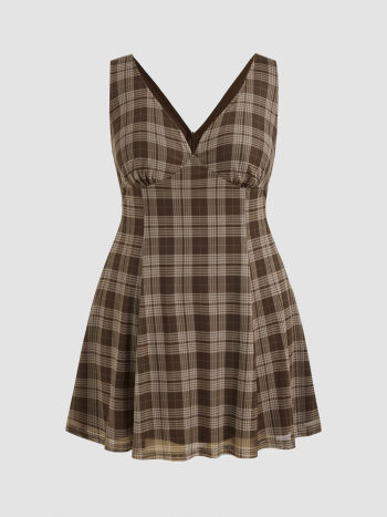 V-Ausschnitt Karo Mini Kleid Kurve & Plus