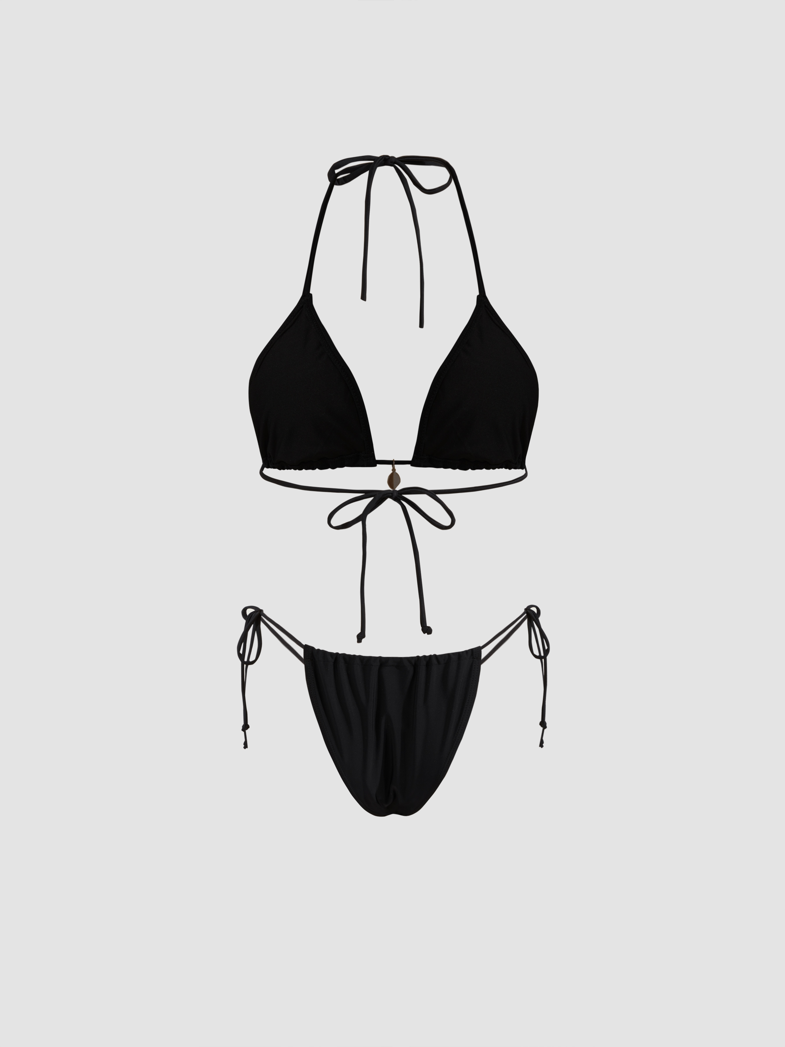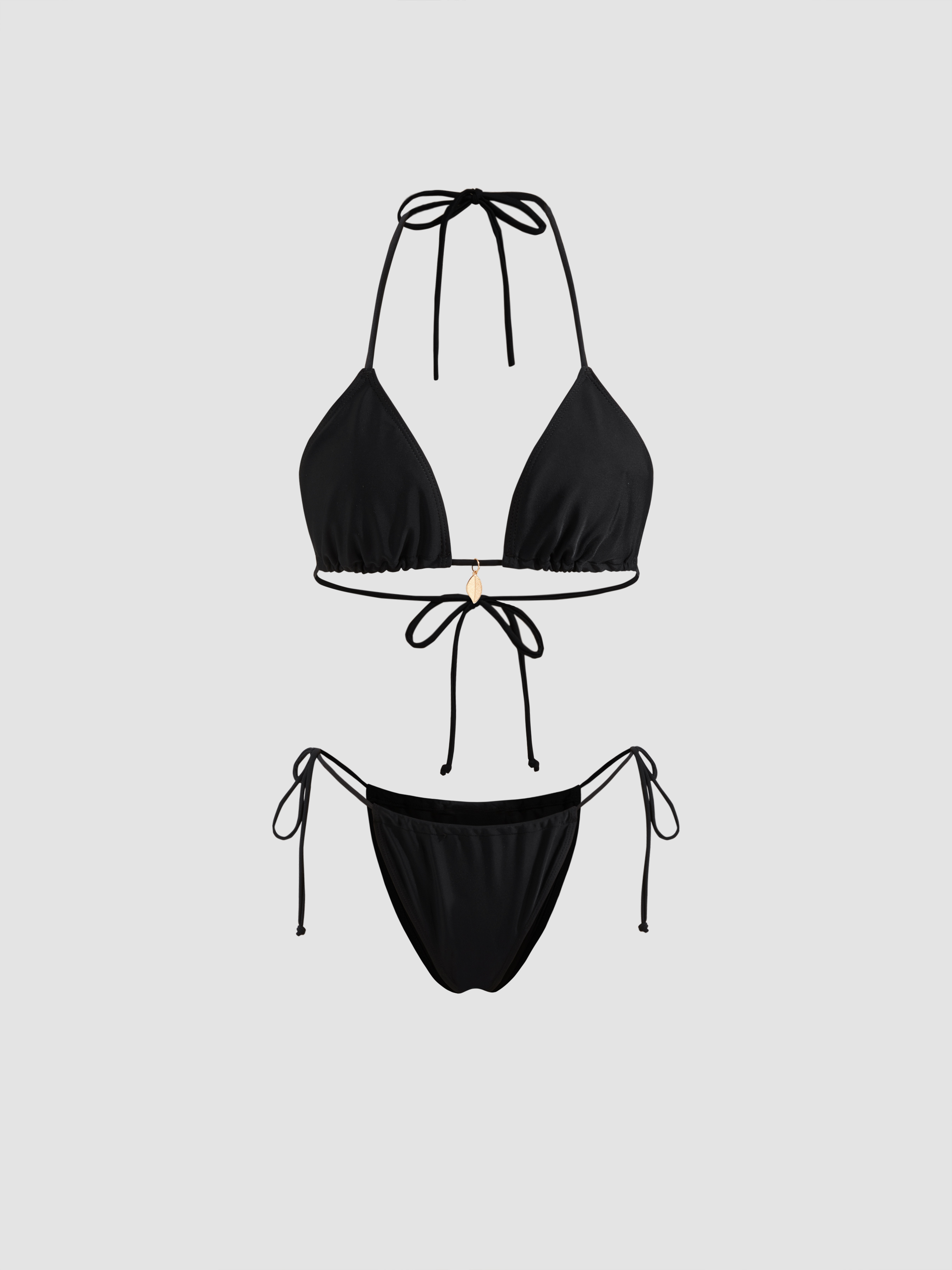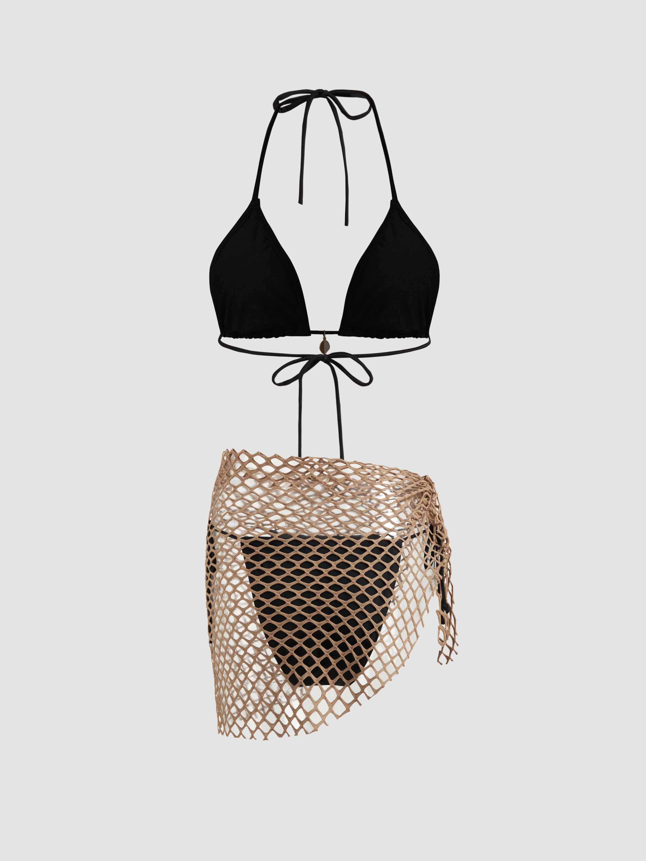 V-Ausschnitt Neckholder Bikini Badeanzug mit seitlicher Bindung und durchbrochenem Sarong