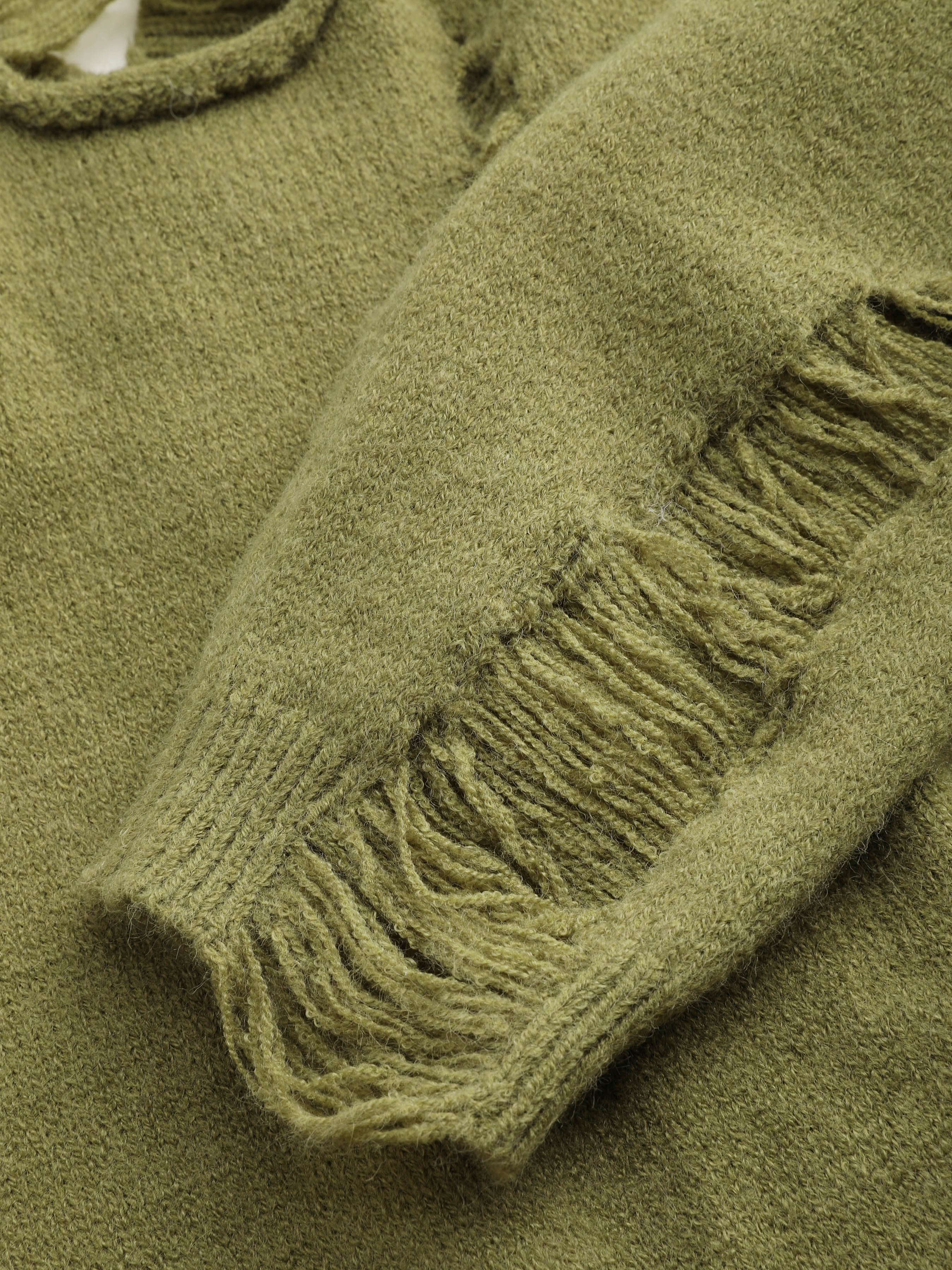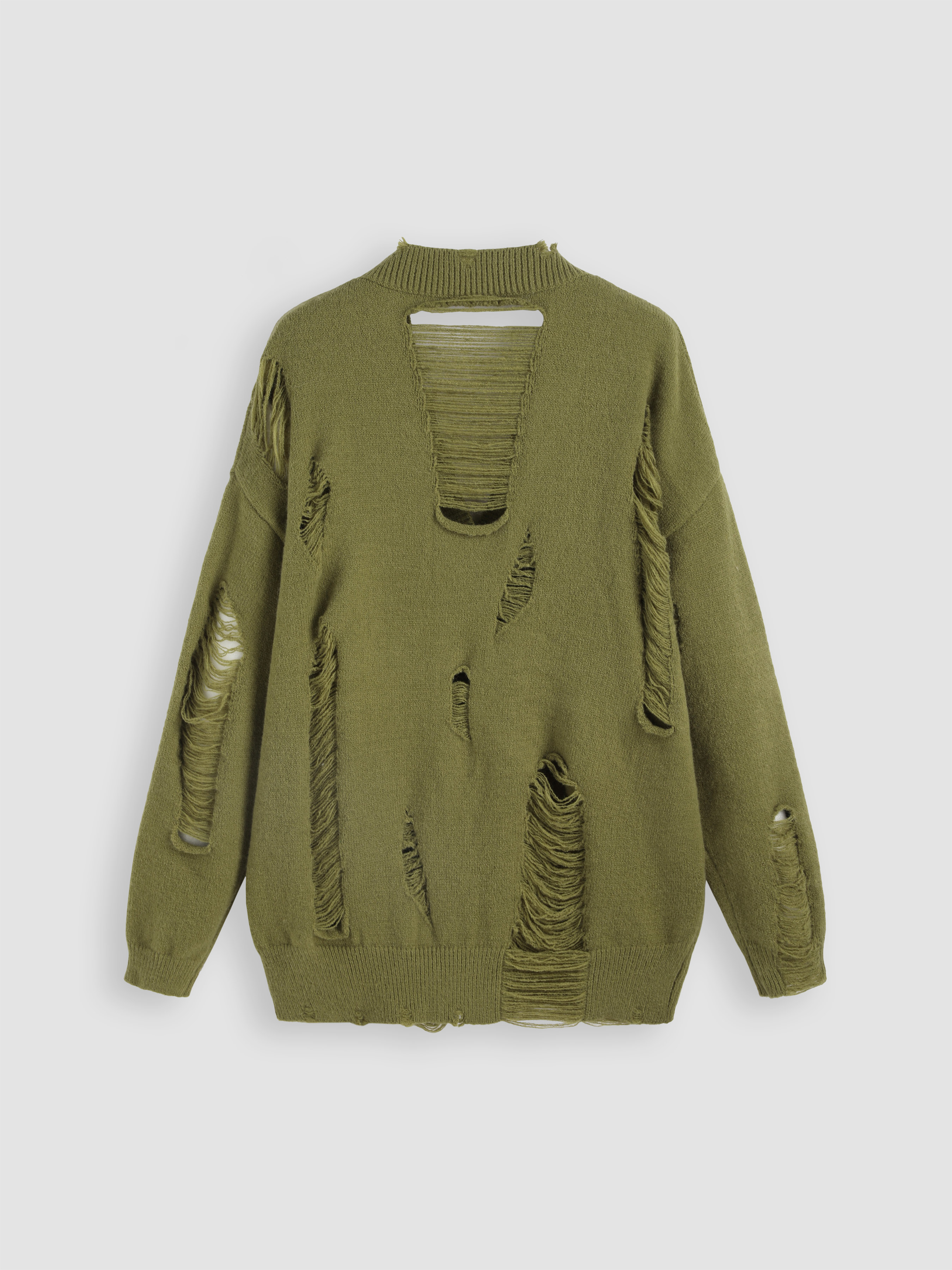 V-Ausschnitt Solid Knopf Zerrissene Strickjacke