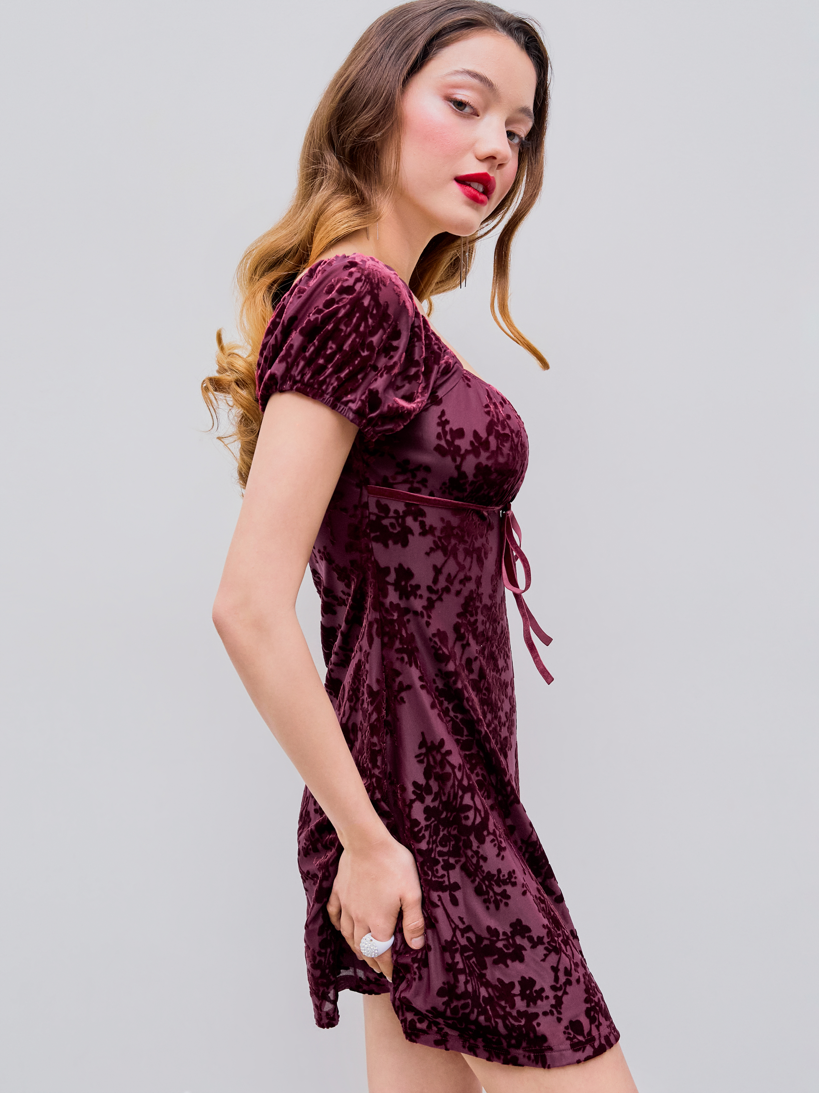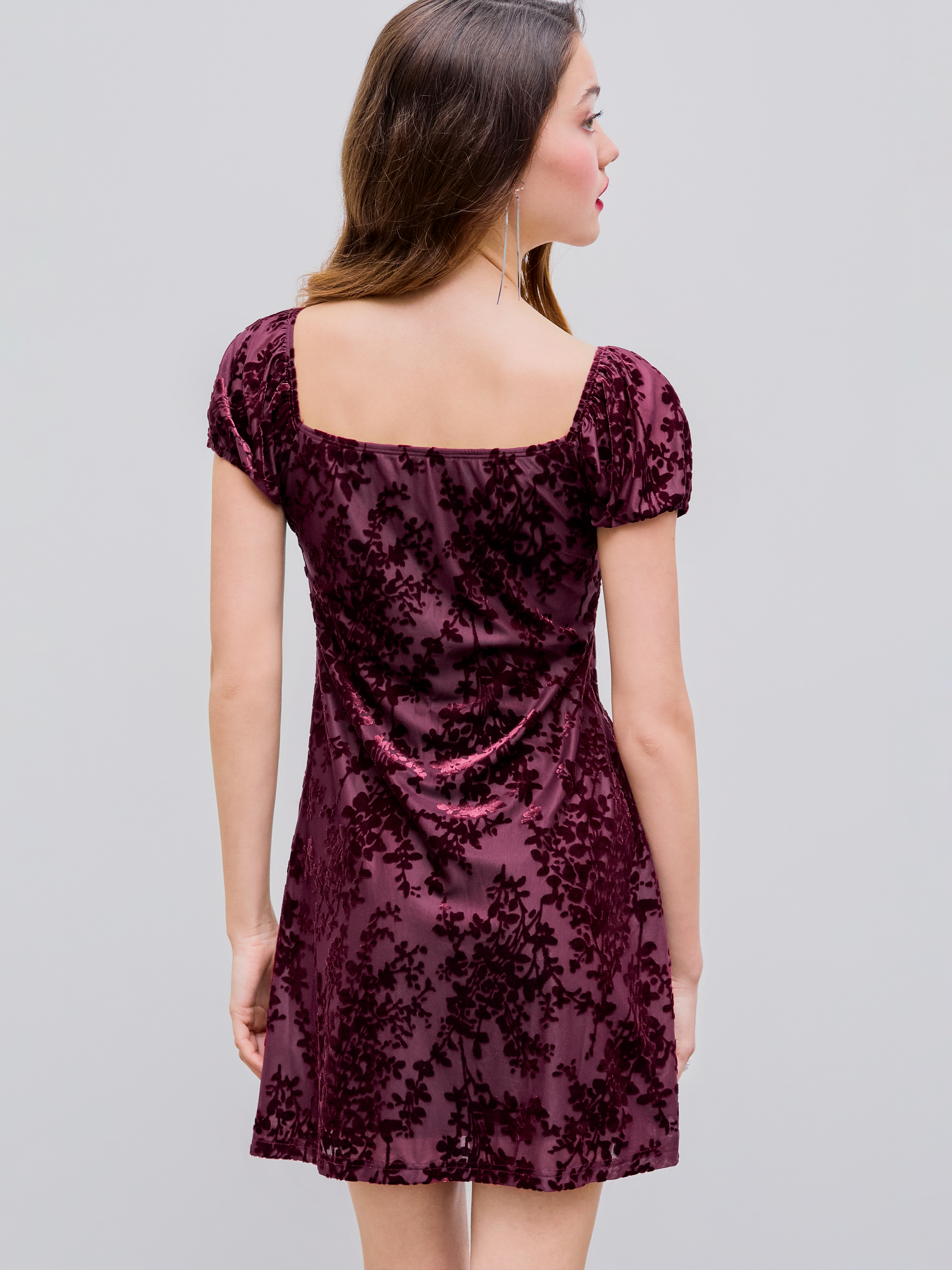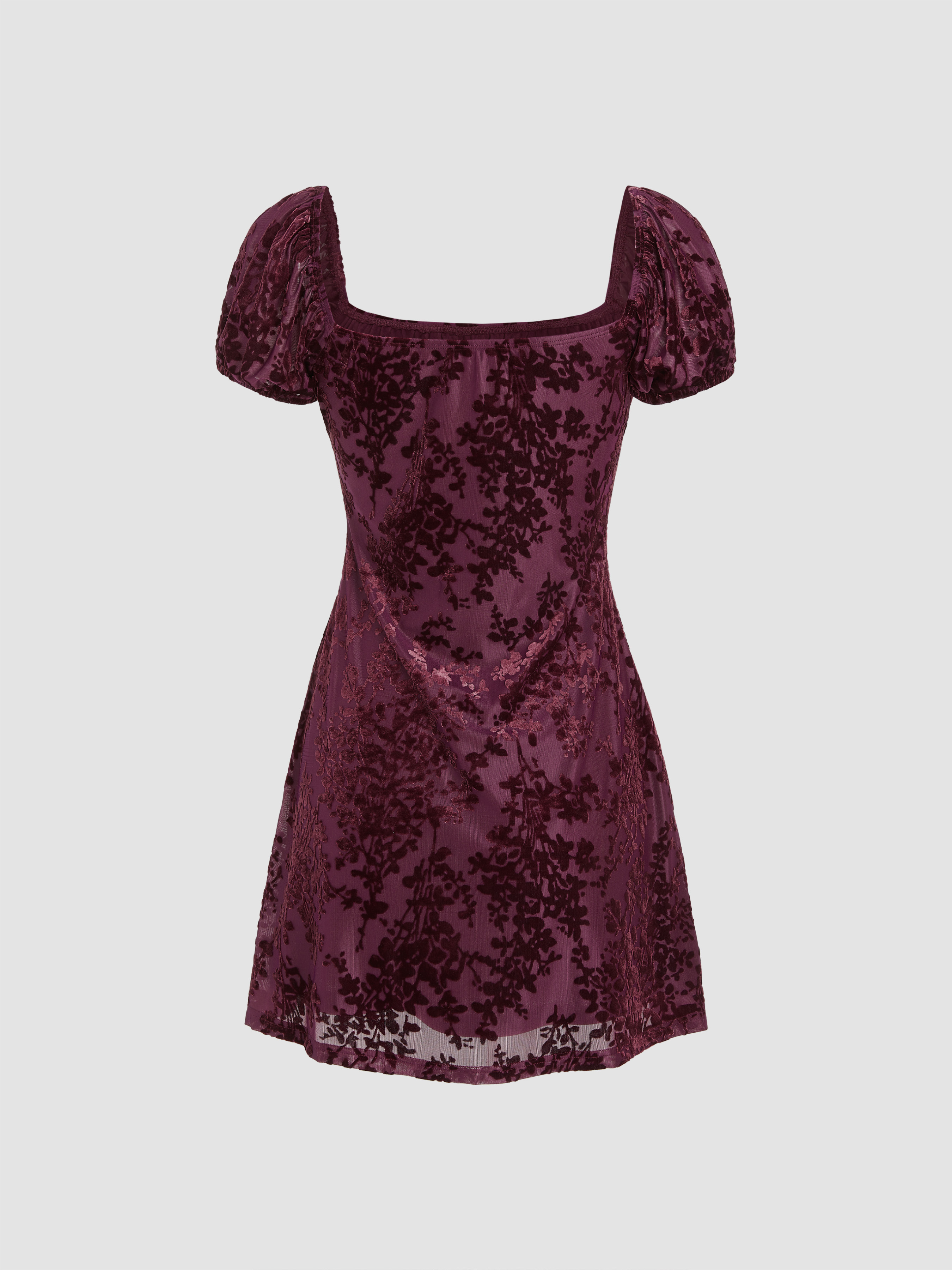 Samt Quadratischer Ausschnitt Blumen Schleife Minikleid