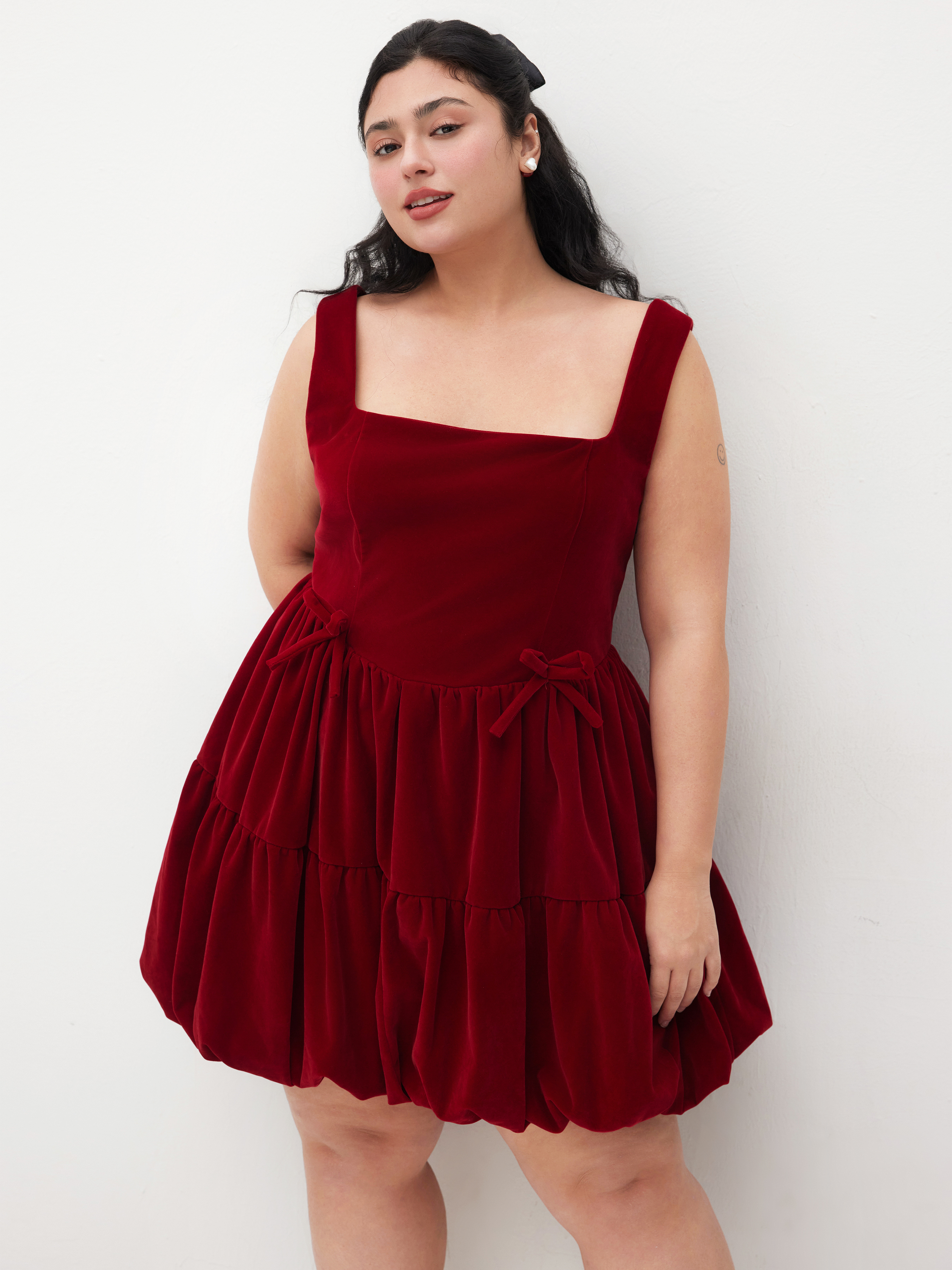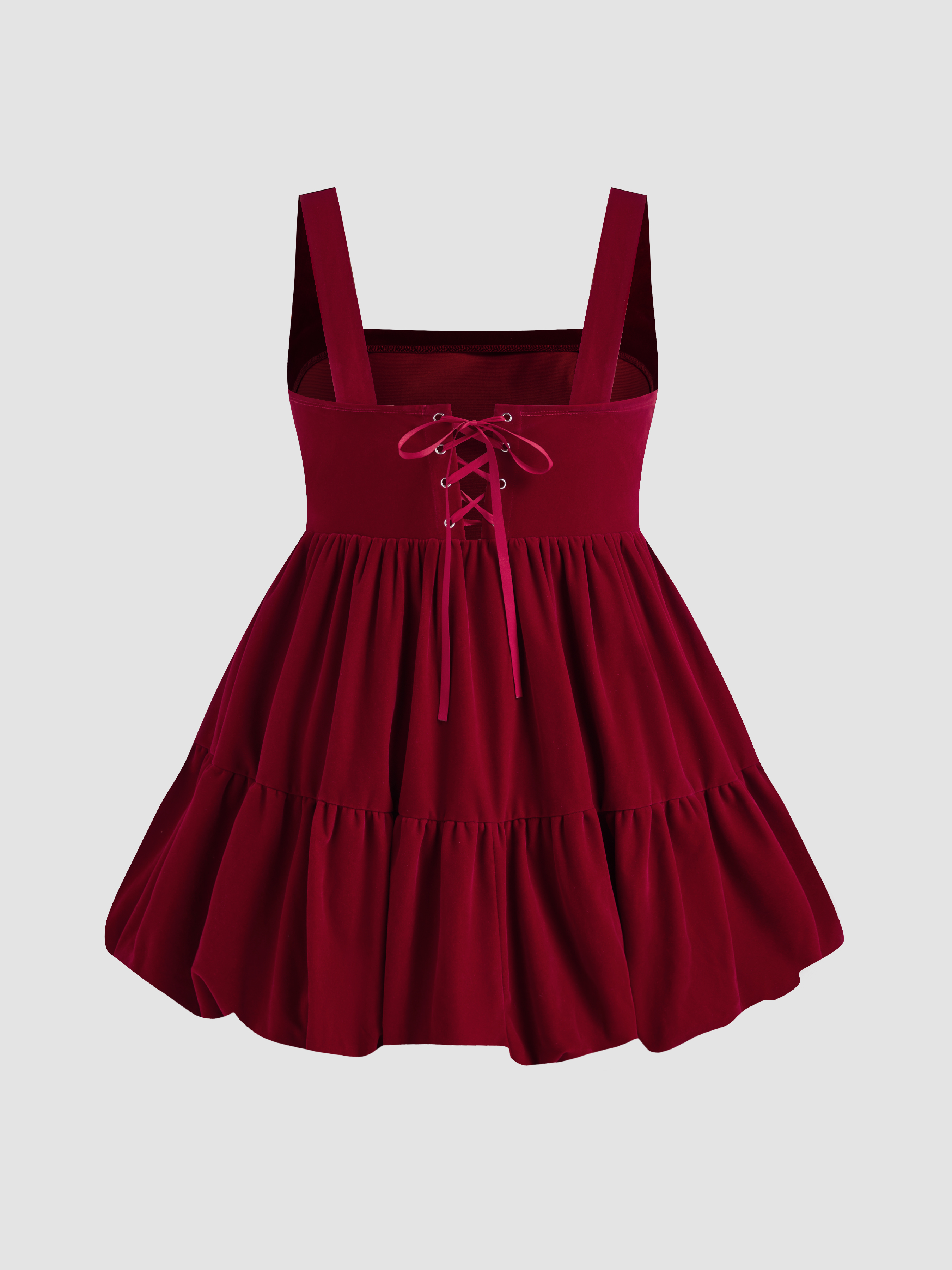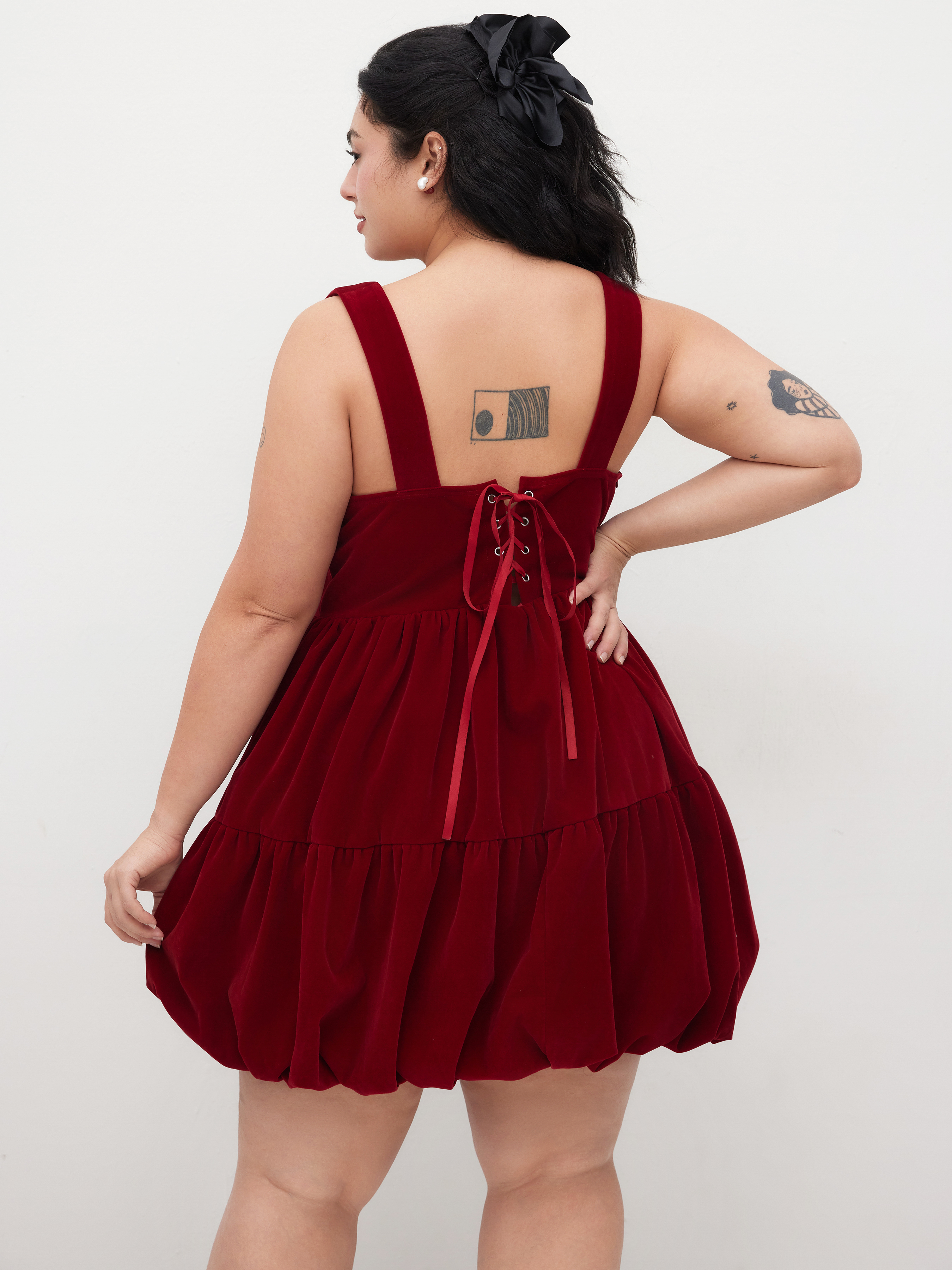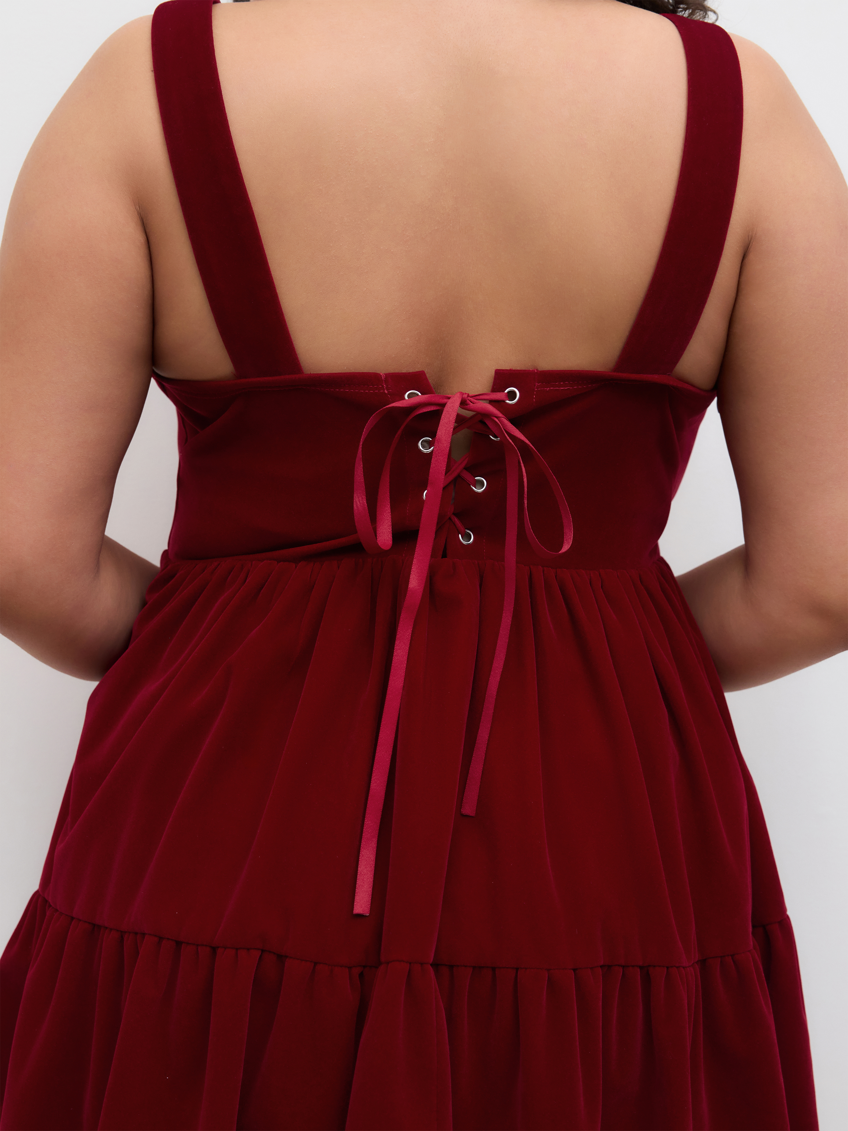 Samtiges Schnürkleid mit Schleife und Blasenausschnitt Kurve & Plus