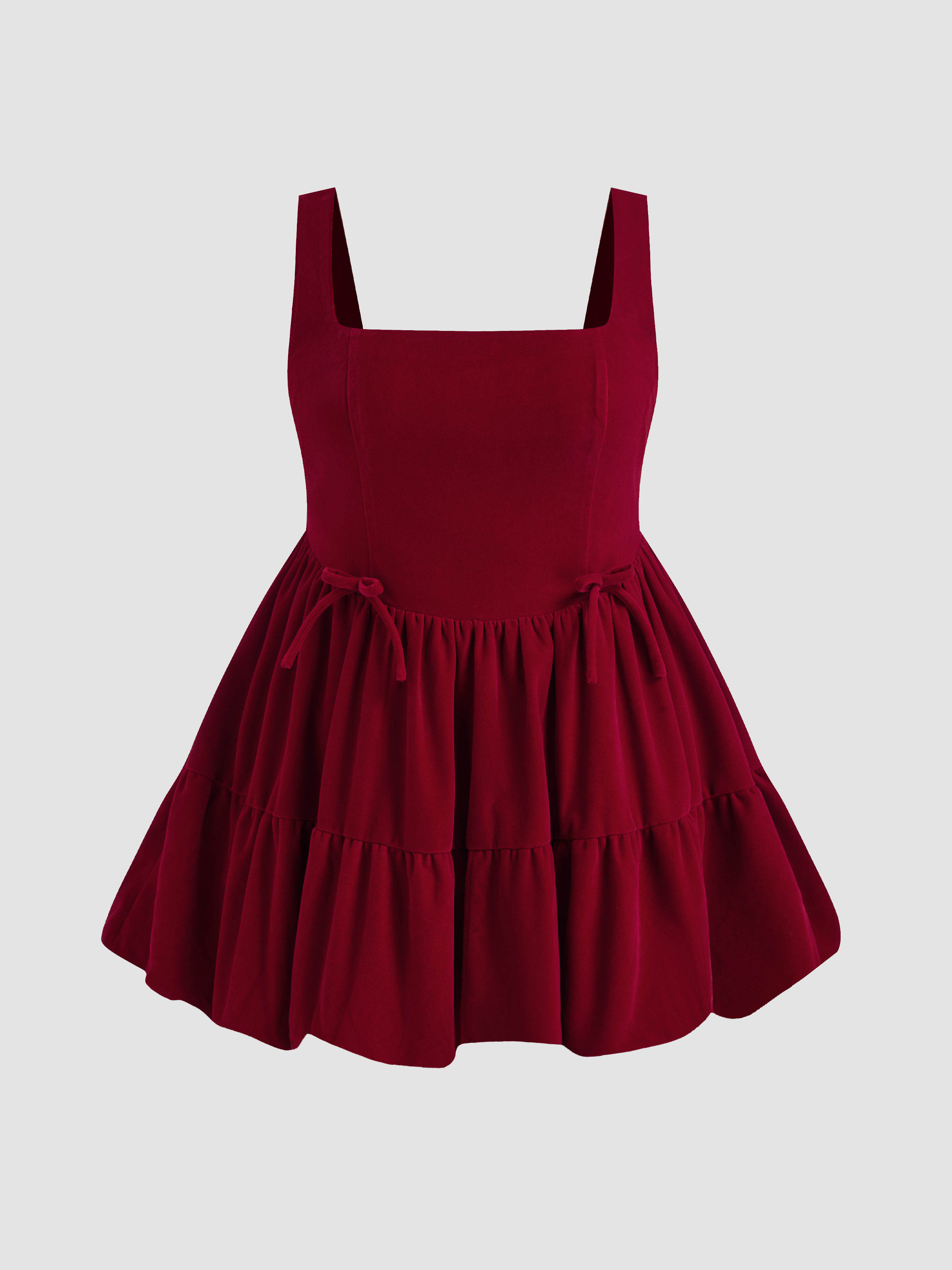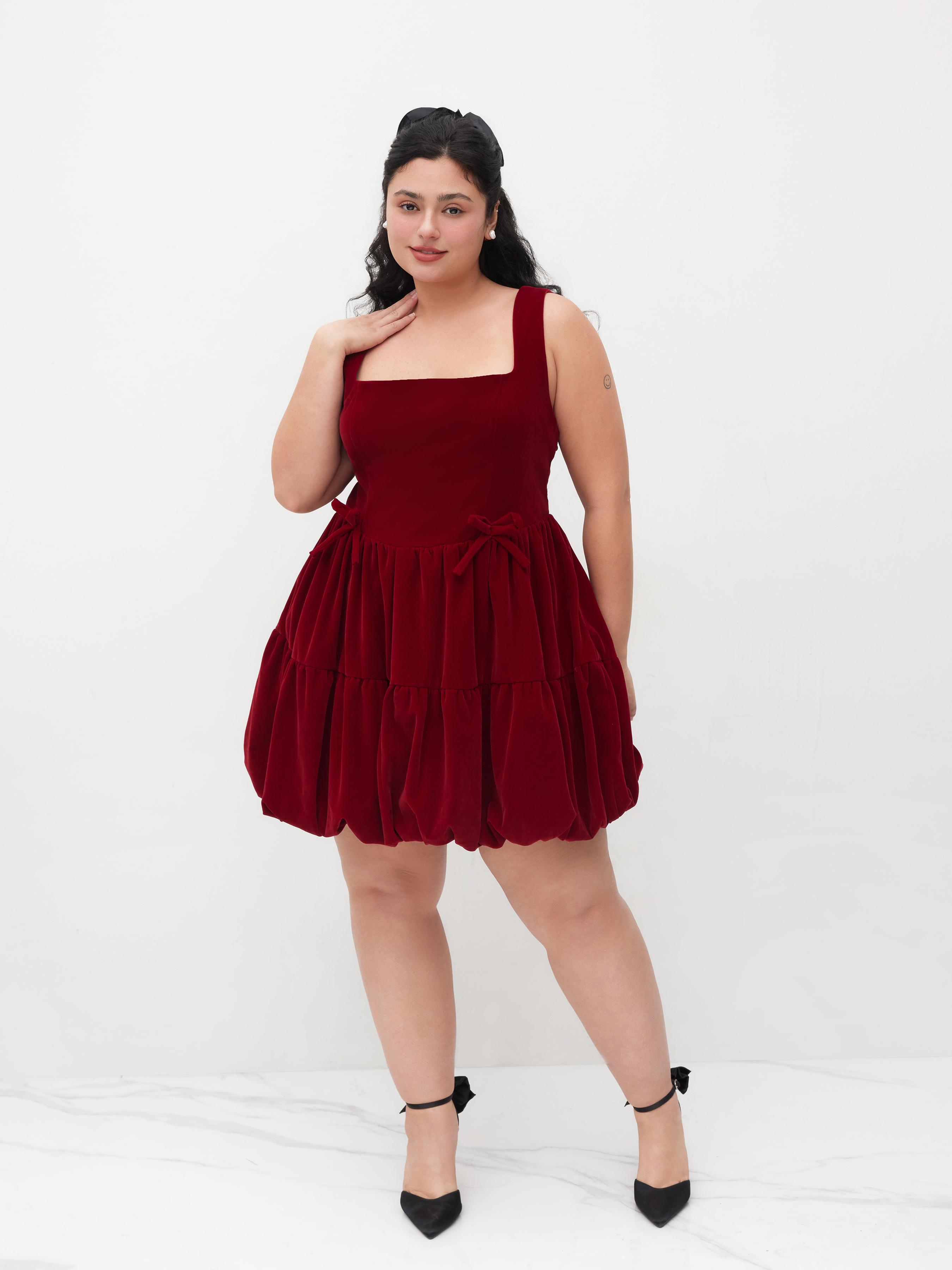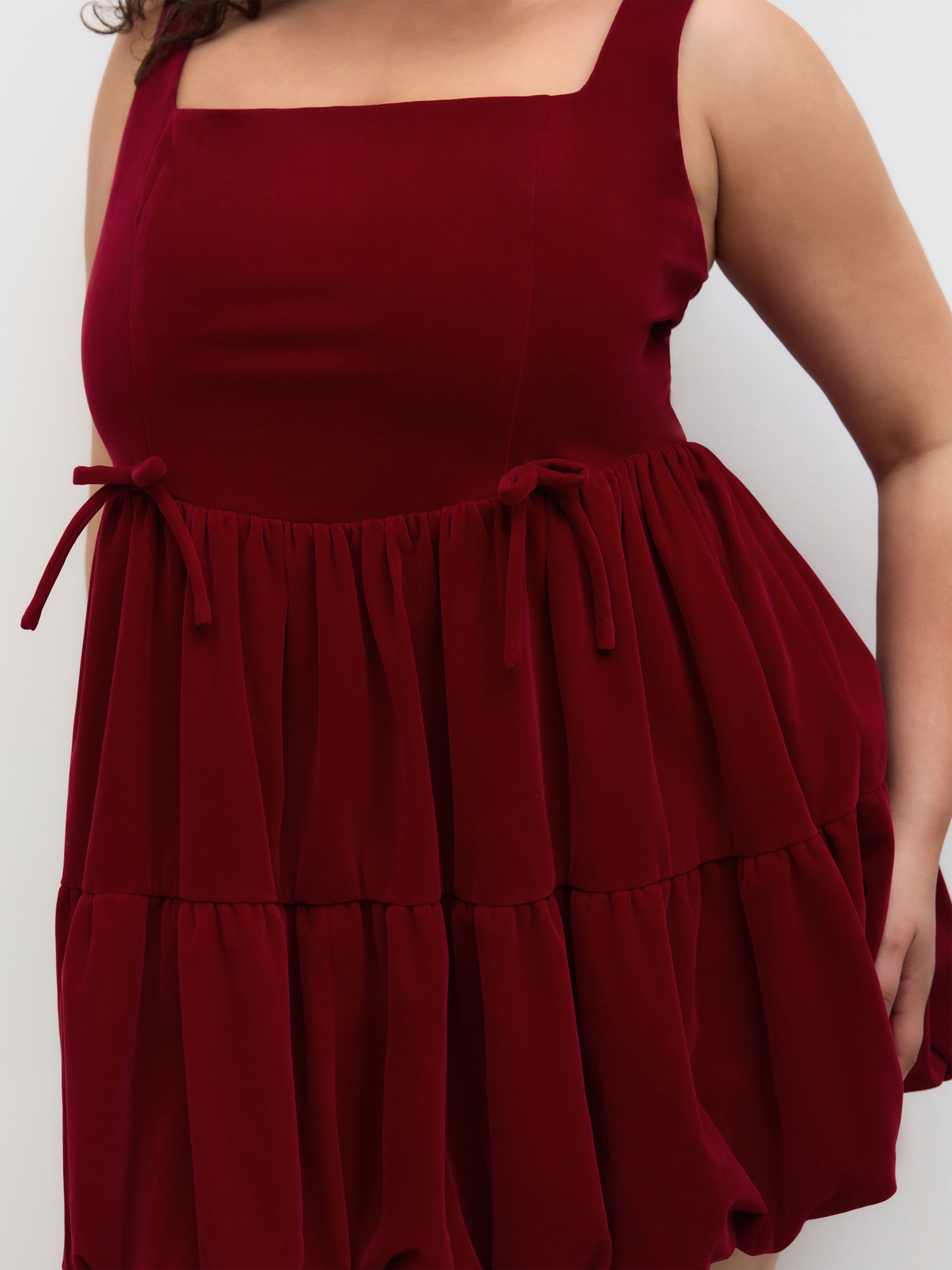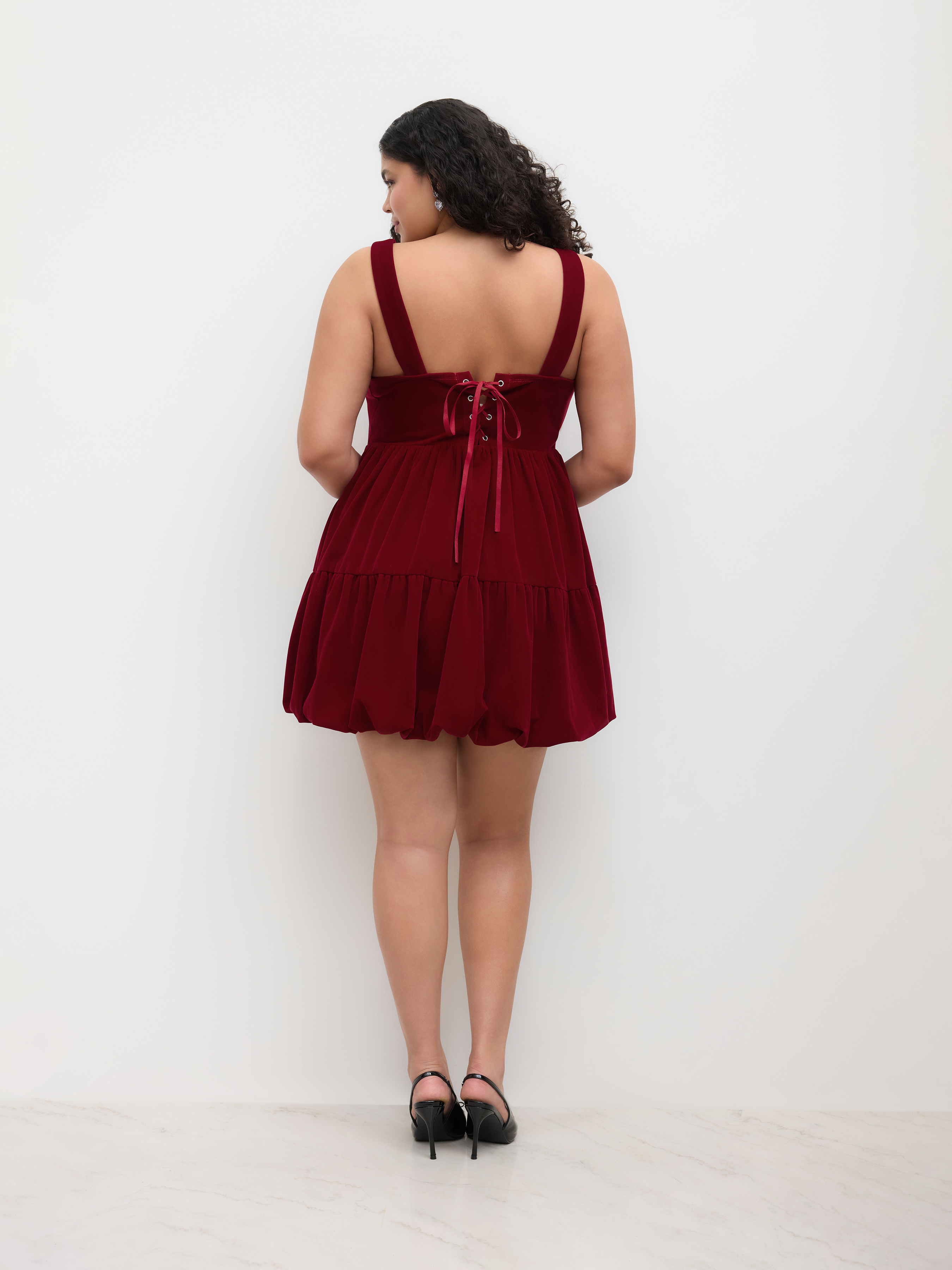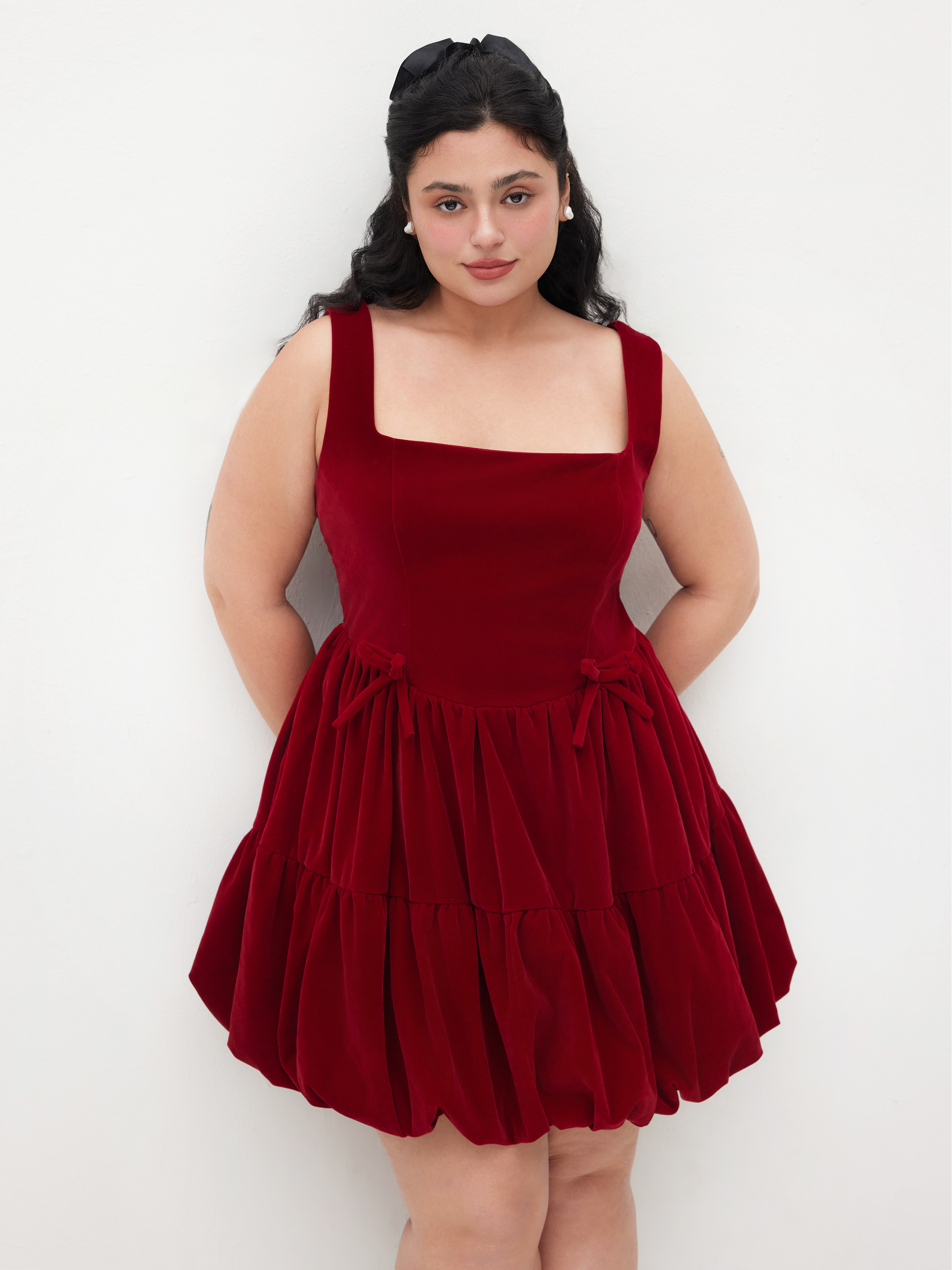 Samtiges Schnürkleid mit Schleife und Blasenausschnitt Kurve & Plus