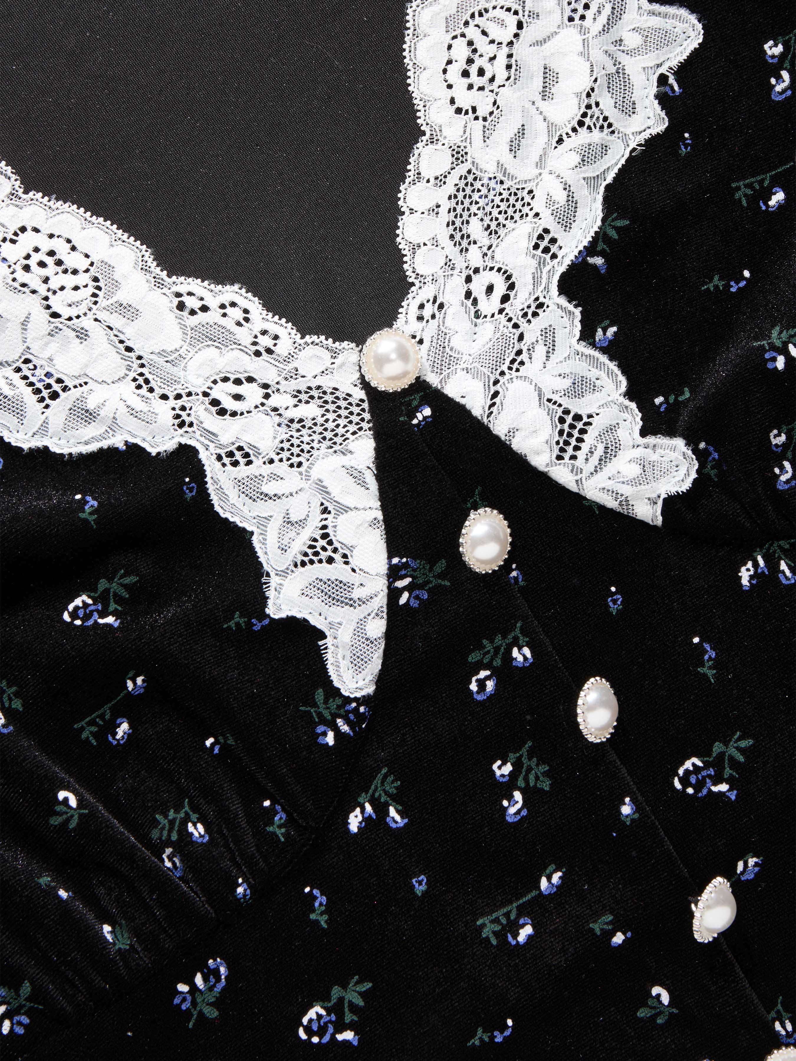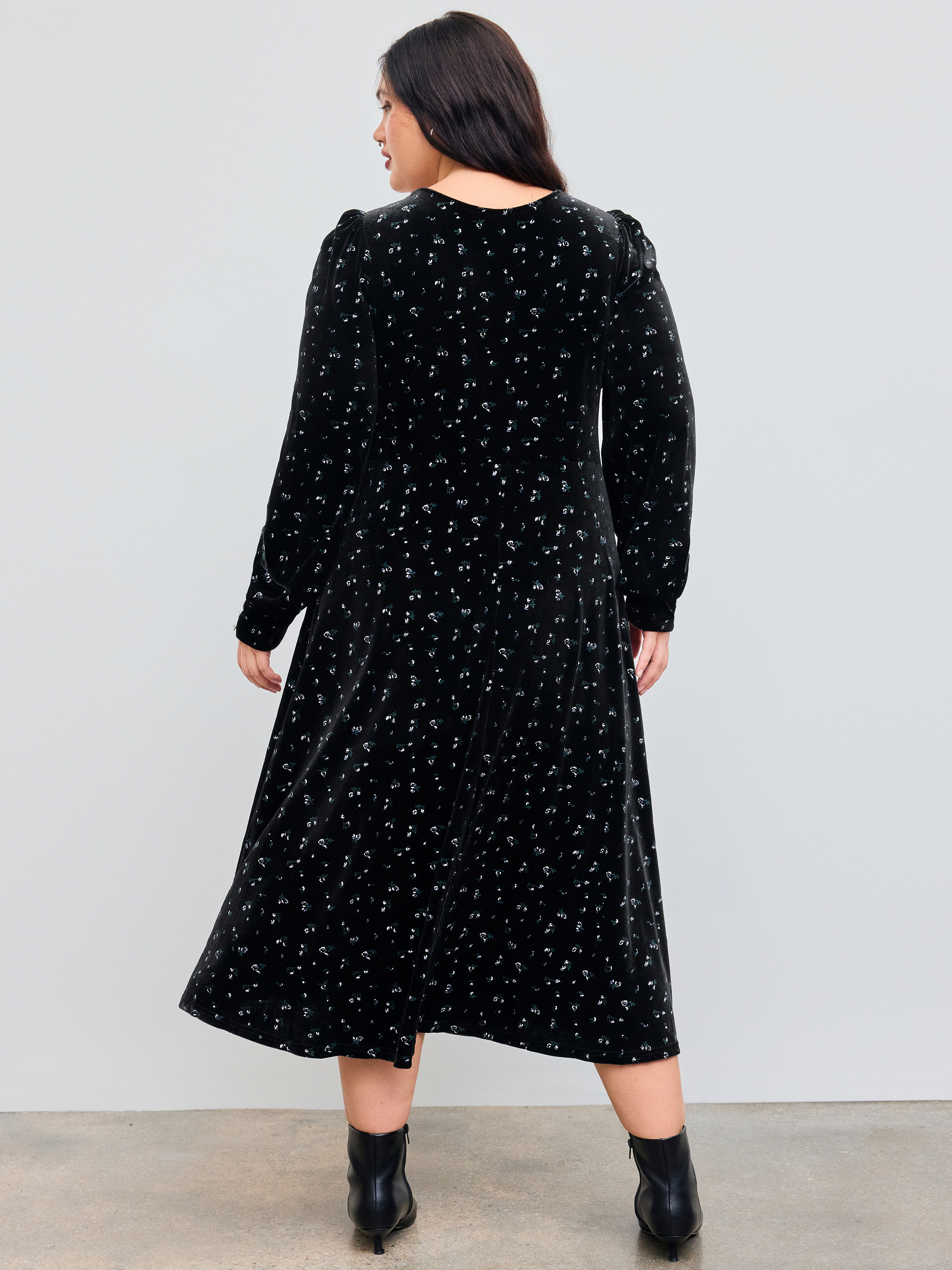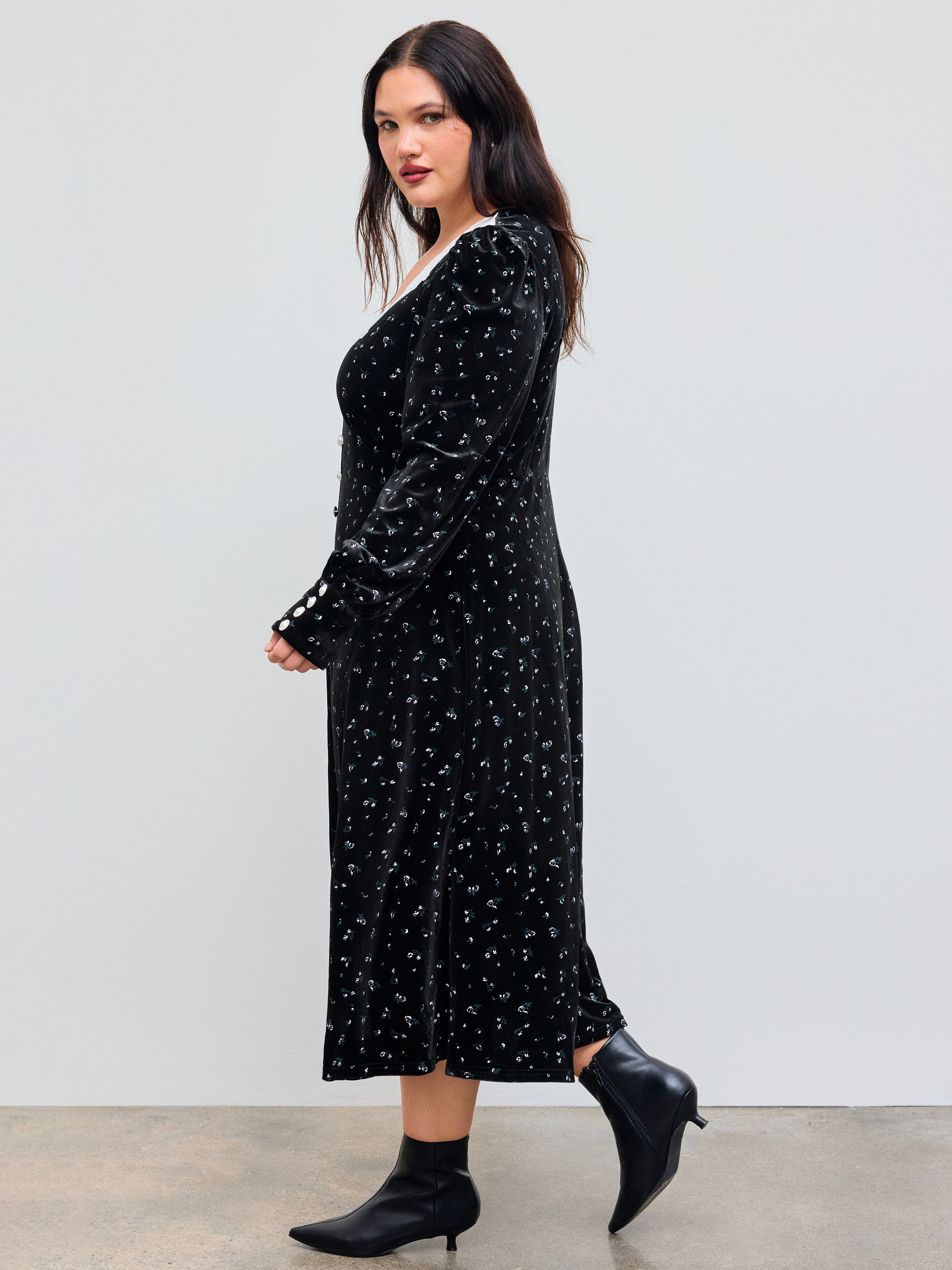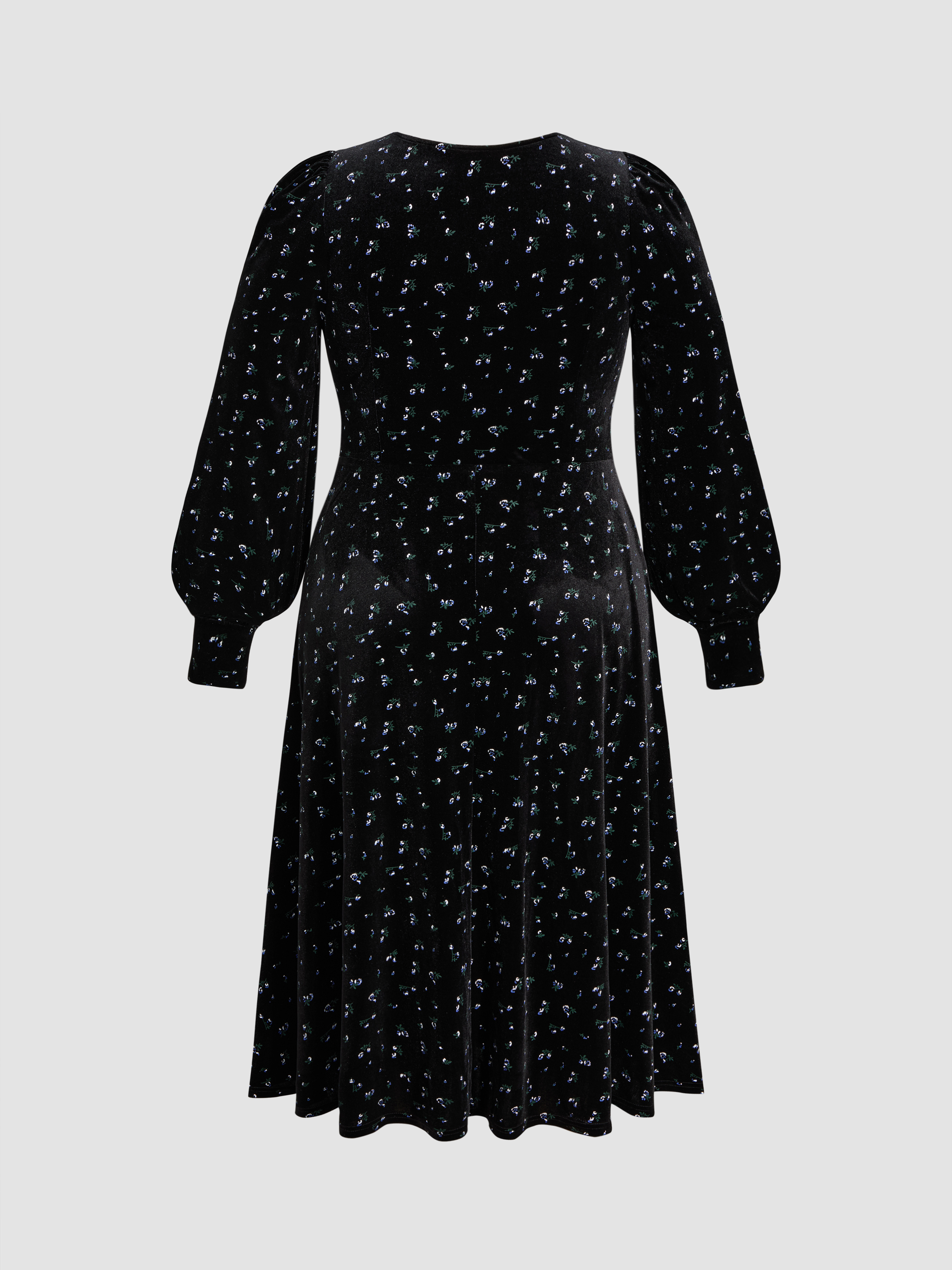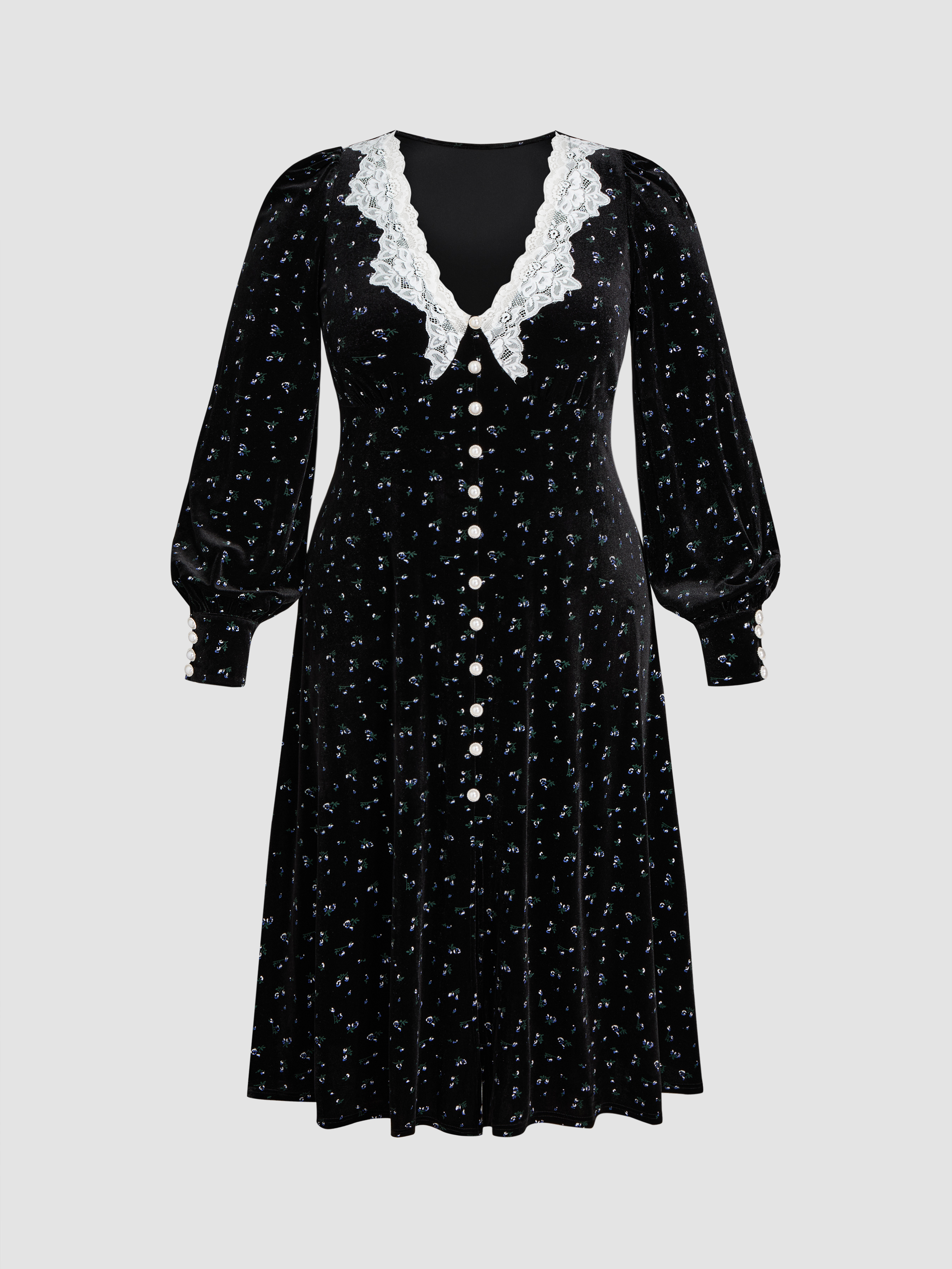Samt V-Ausschnitt Spitzen Rüschen Midikleid Kurve & Plus