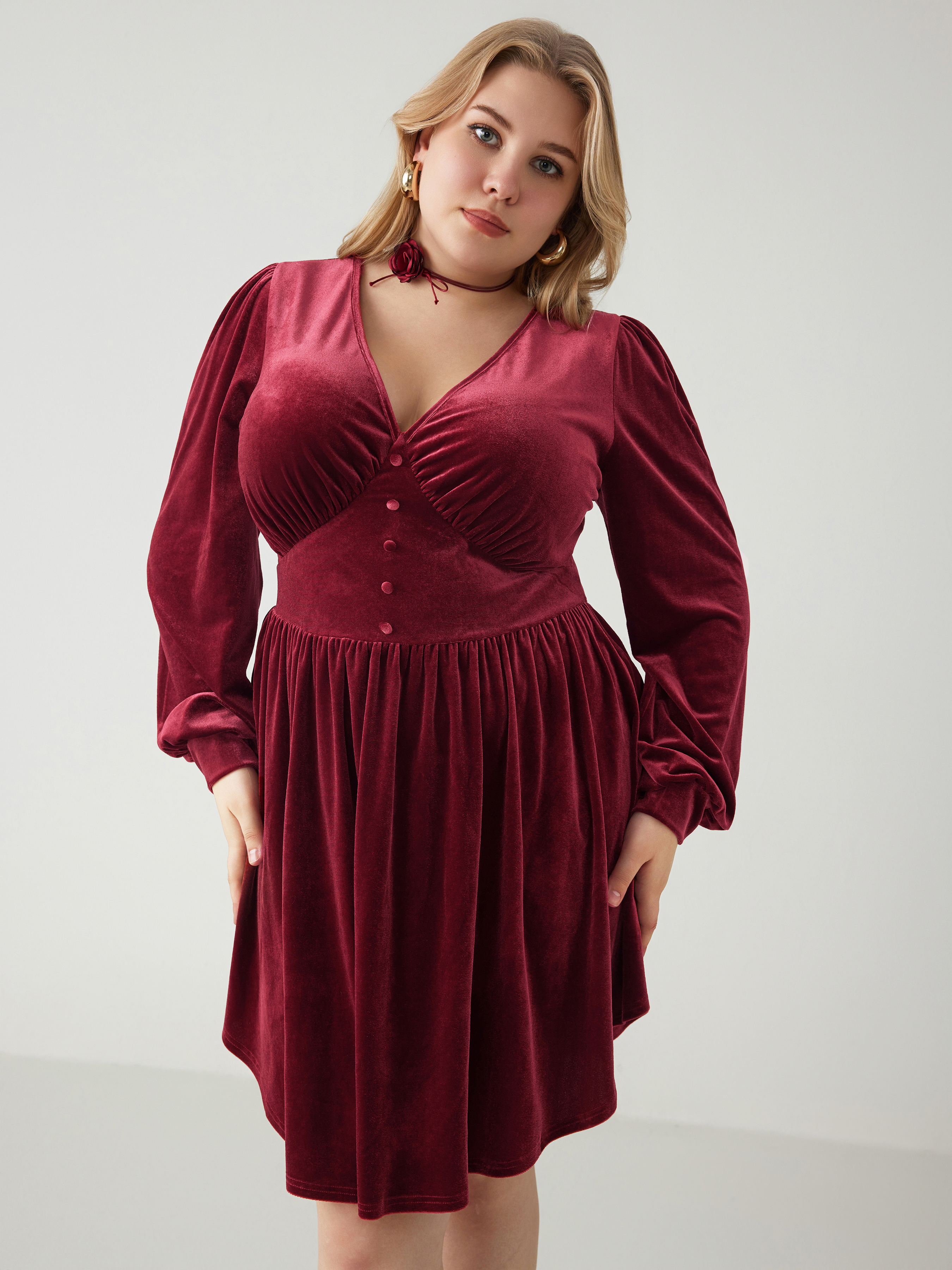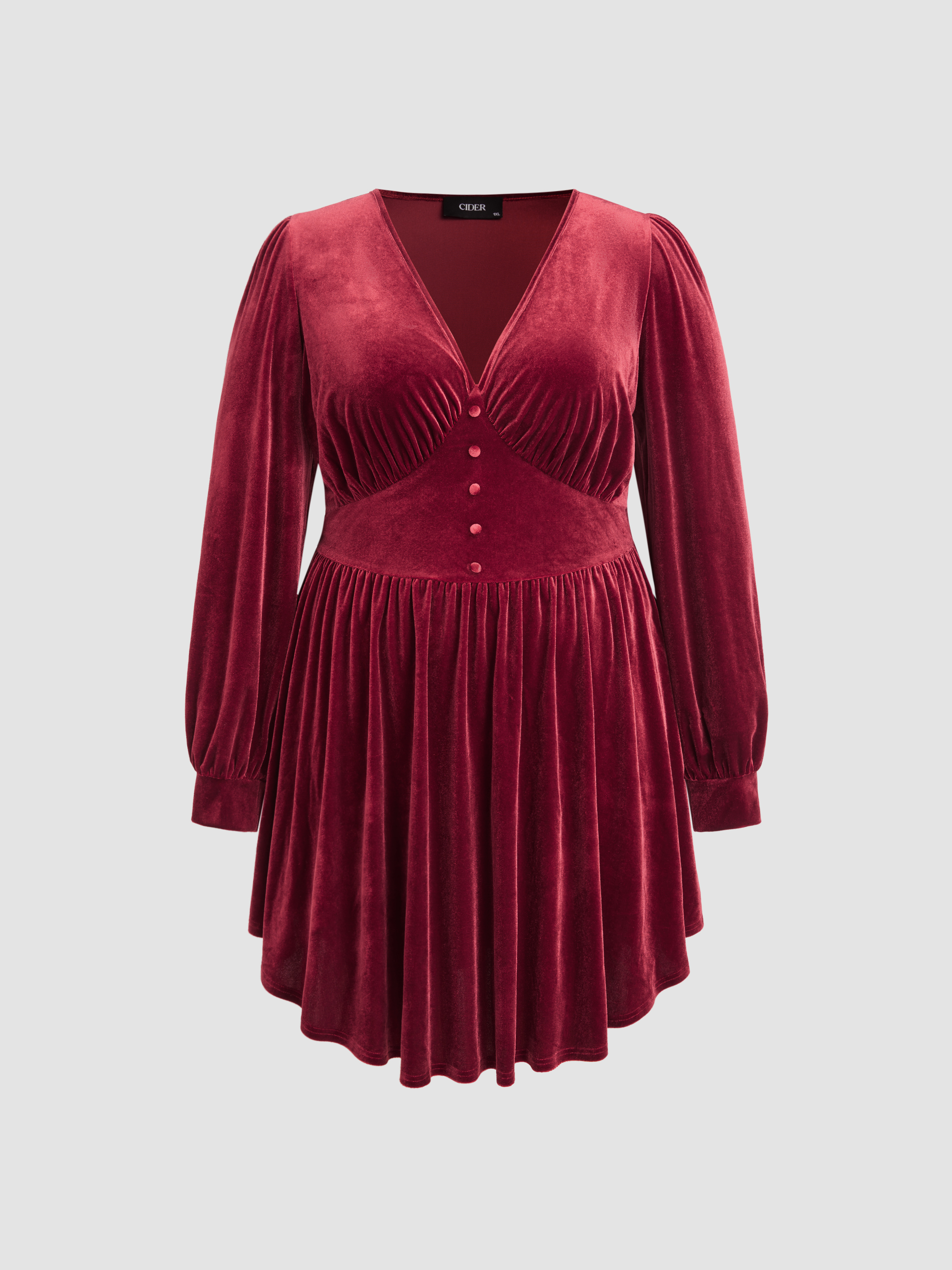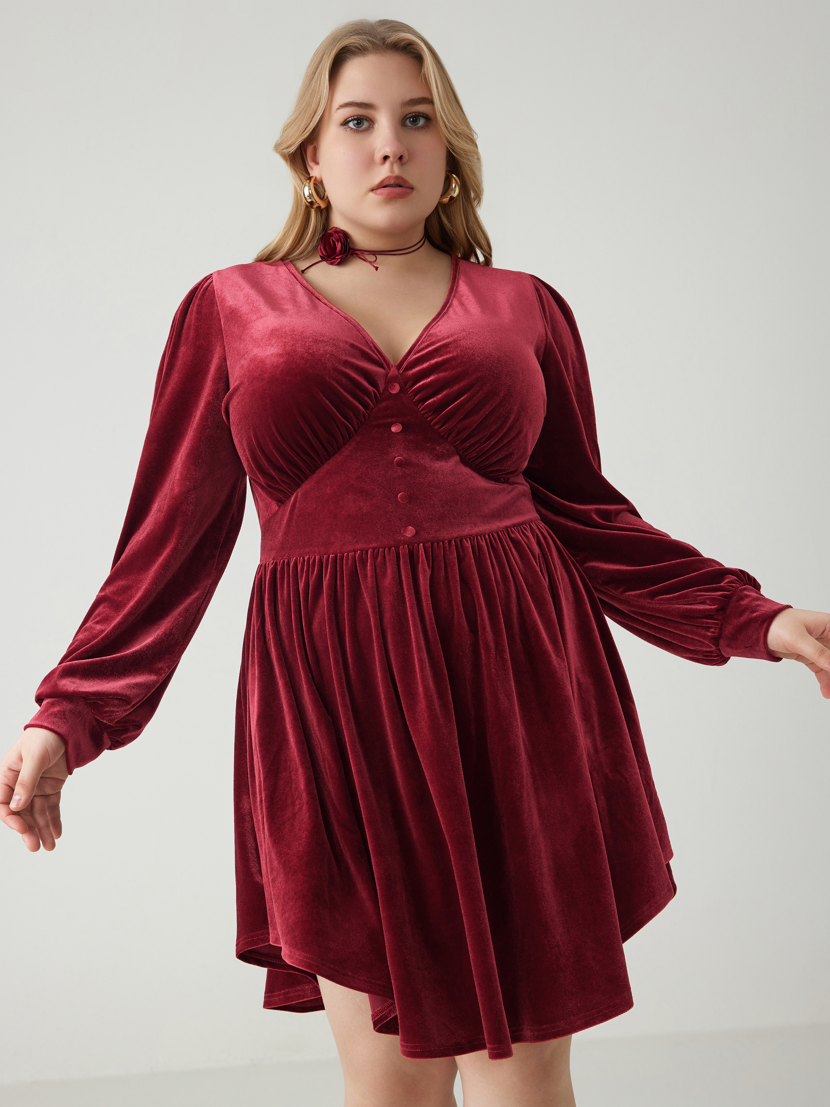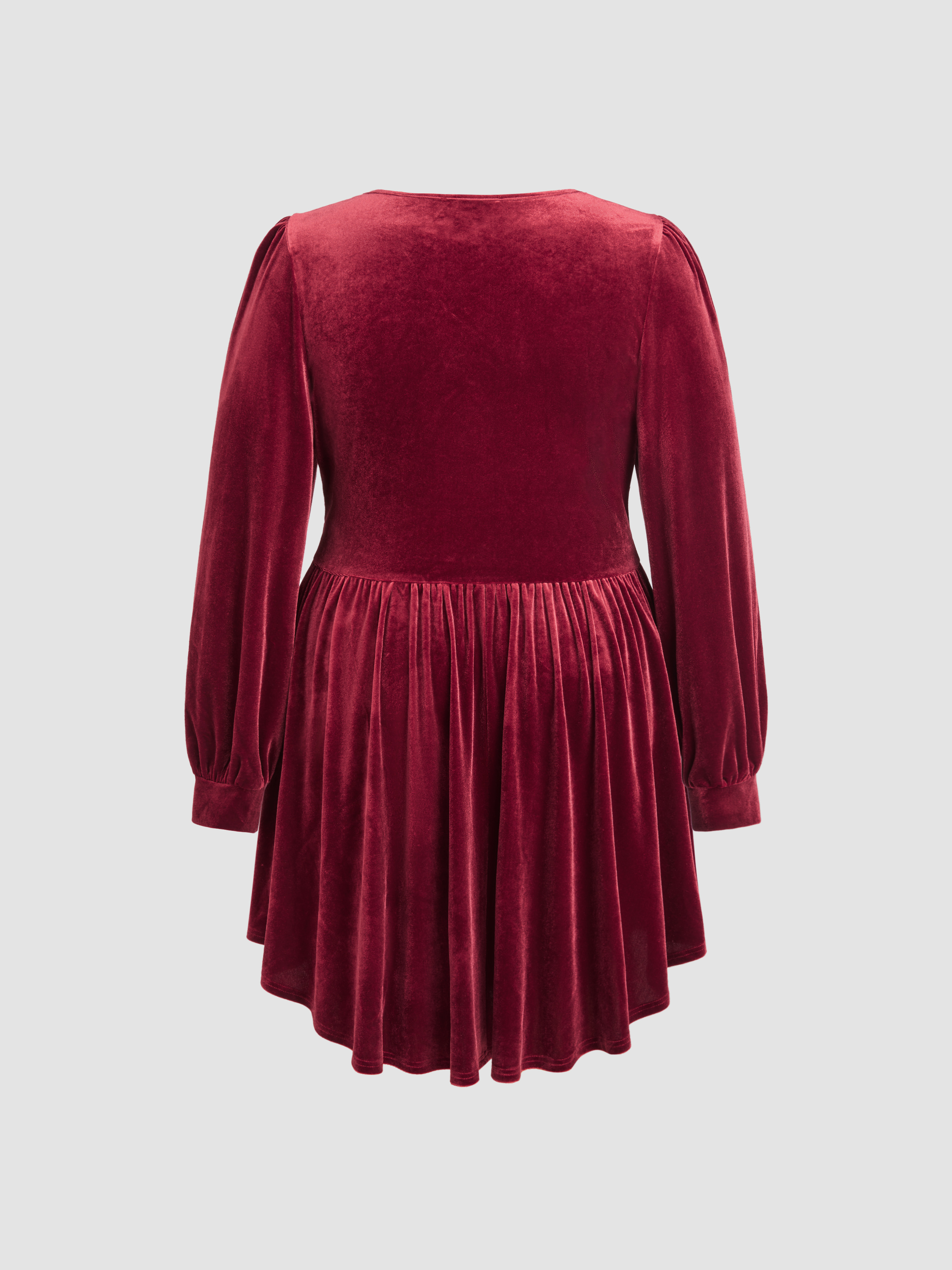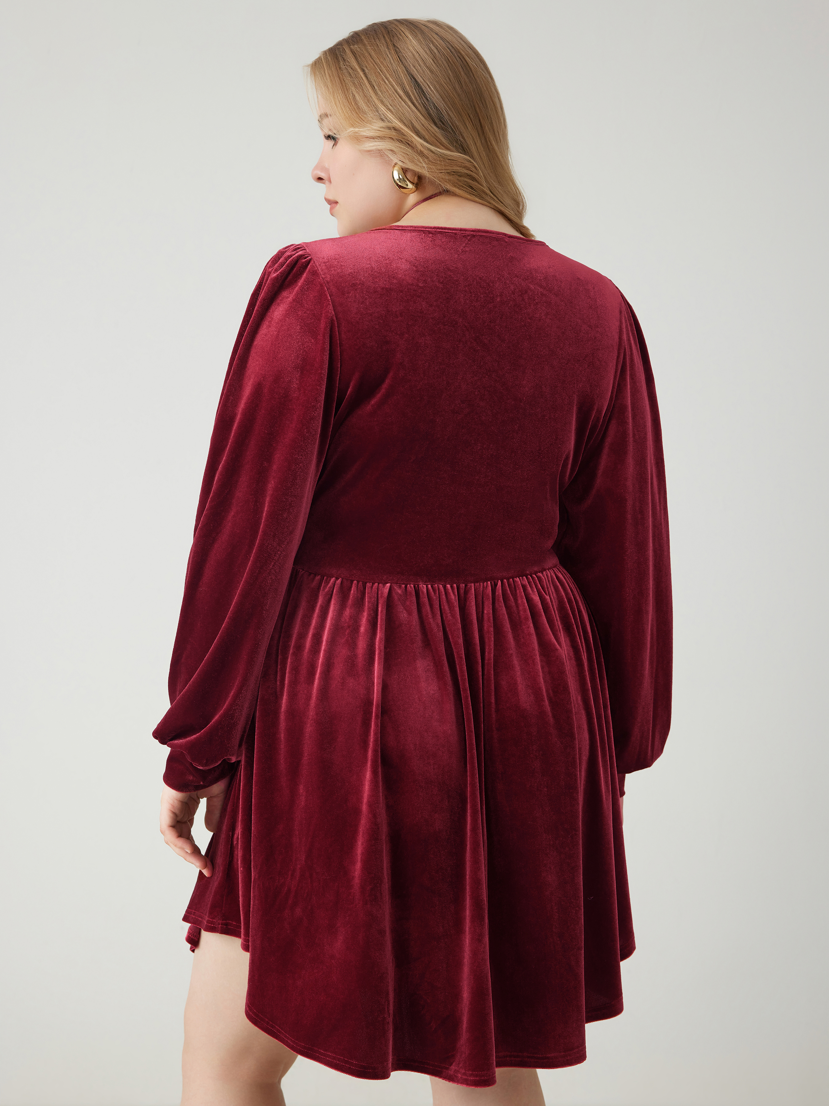 Samt V-Ausschnitt Solids Minikleid Kurve & Plus