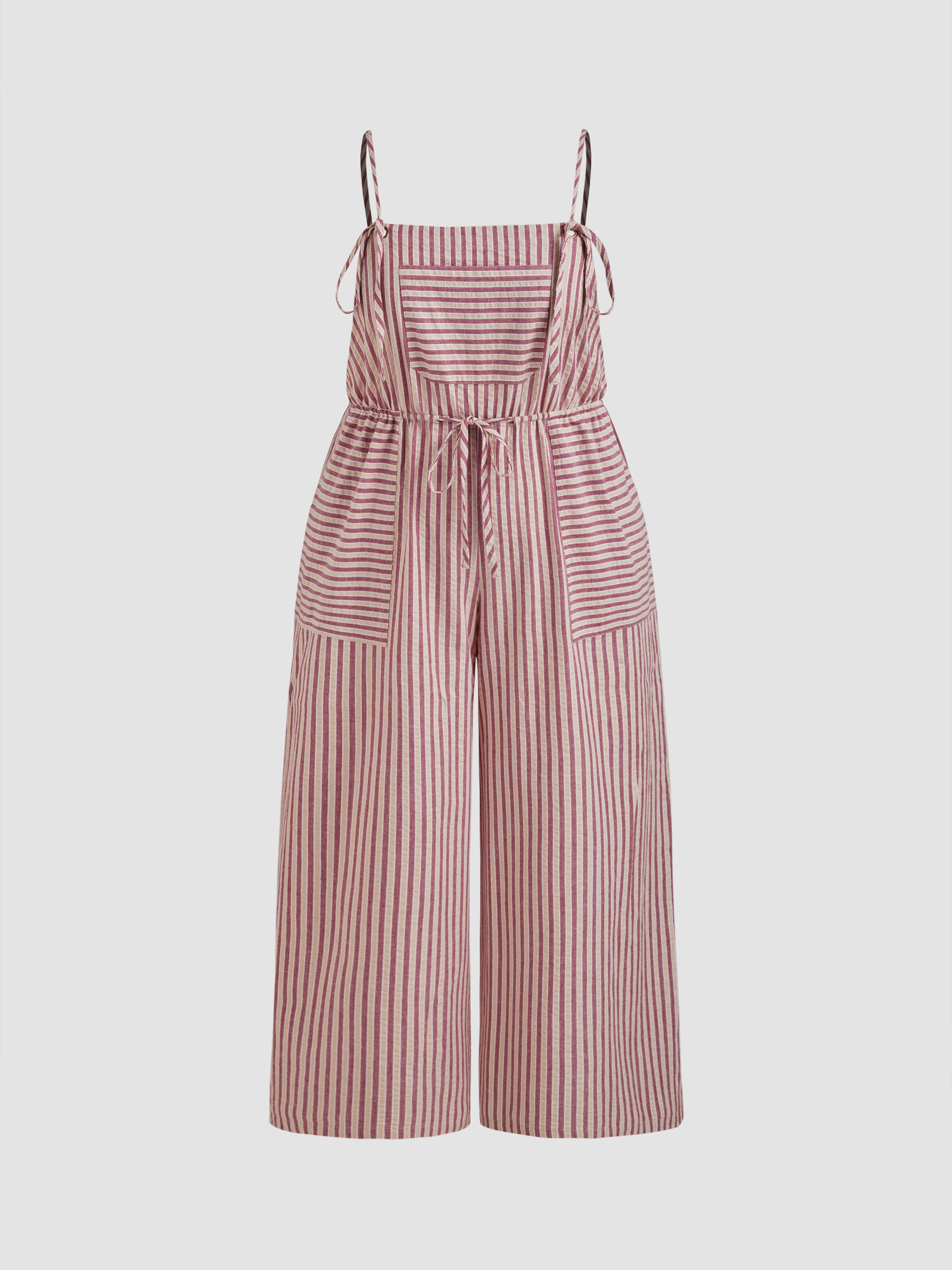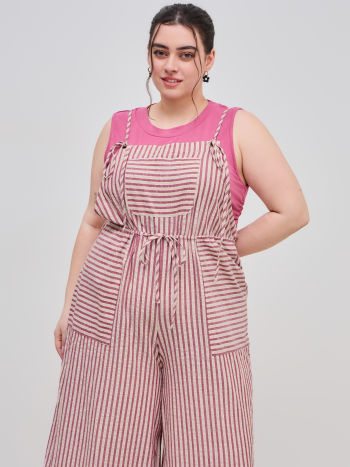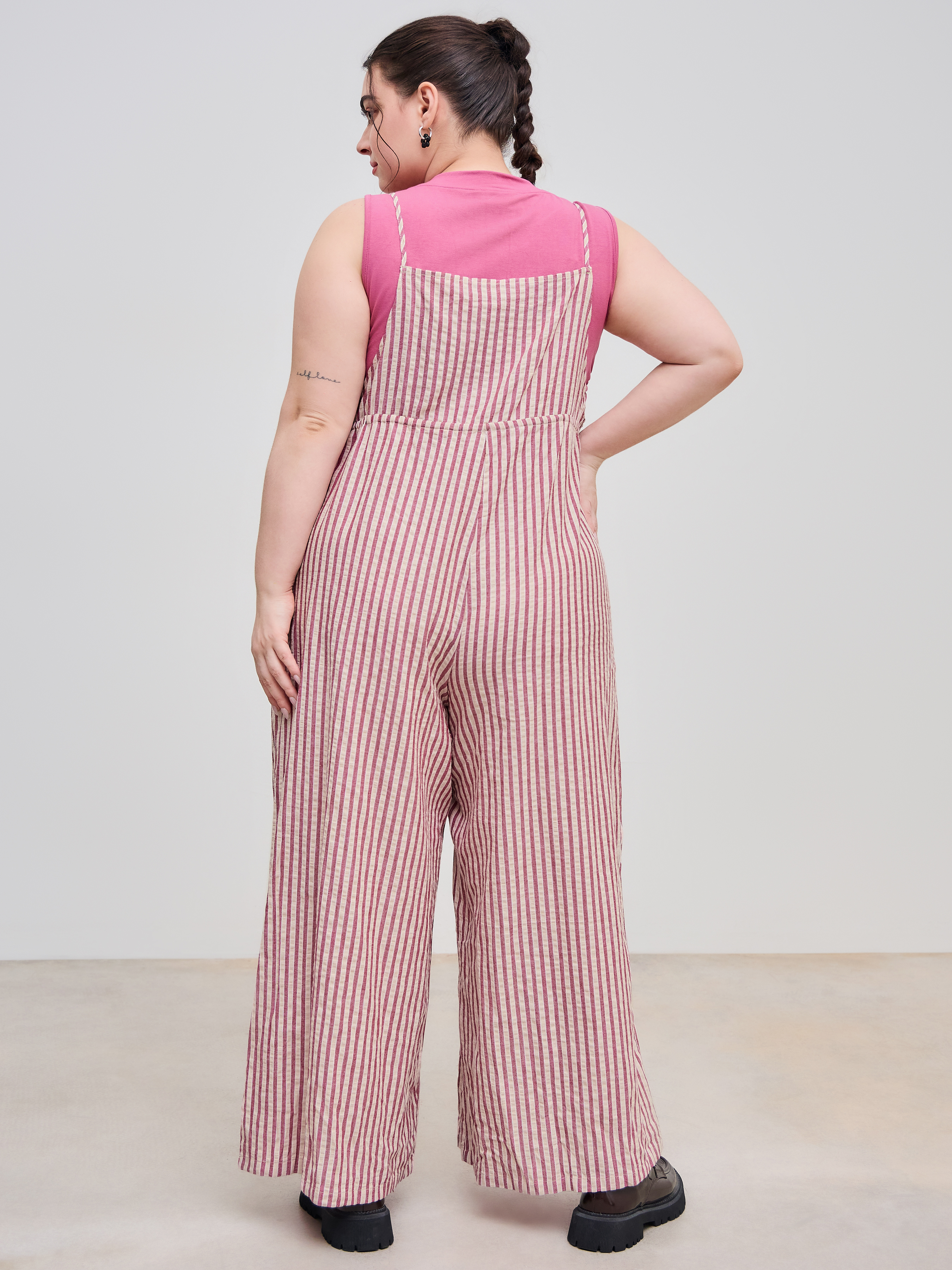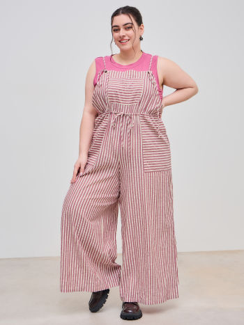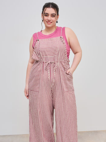 100% Baumwolle Quadrathals Gestreifter Geknoteter Taschen Overall Kurve & Plus