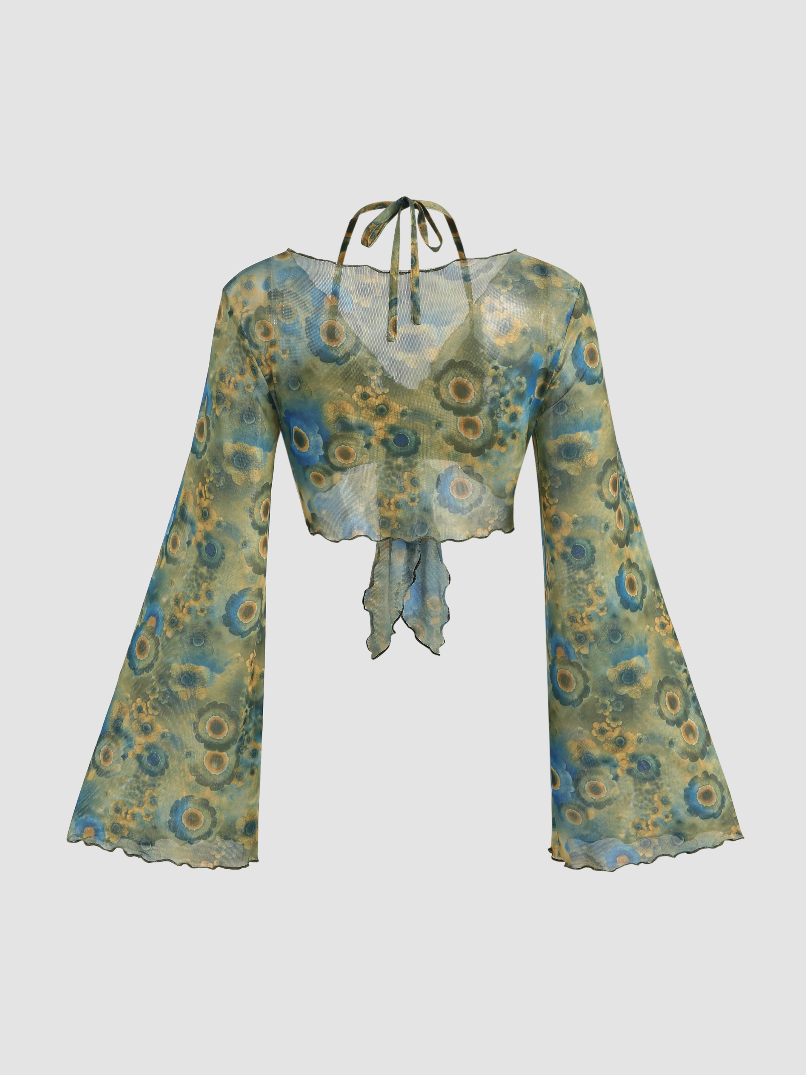 Unser Boho Babe Kurzes Langarm-Oberteil zeichnet sich durch eine kurze Passform mit einem vorderen Binde-Detail und langen Glockenärmeln aus. Mit einem von Boho inspirierten Design und integriertem Bikini-Stil Crop Top ist diese durchsichtige Langarmbluse retro und spaßig. Kombiniere es mit deinen Lieblings-Flared-Hosen oder einem Minirock, um den Look zu vervollständigen.